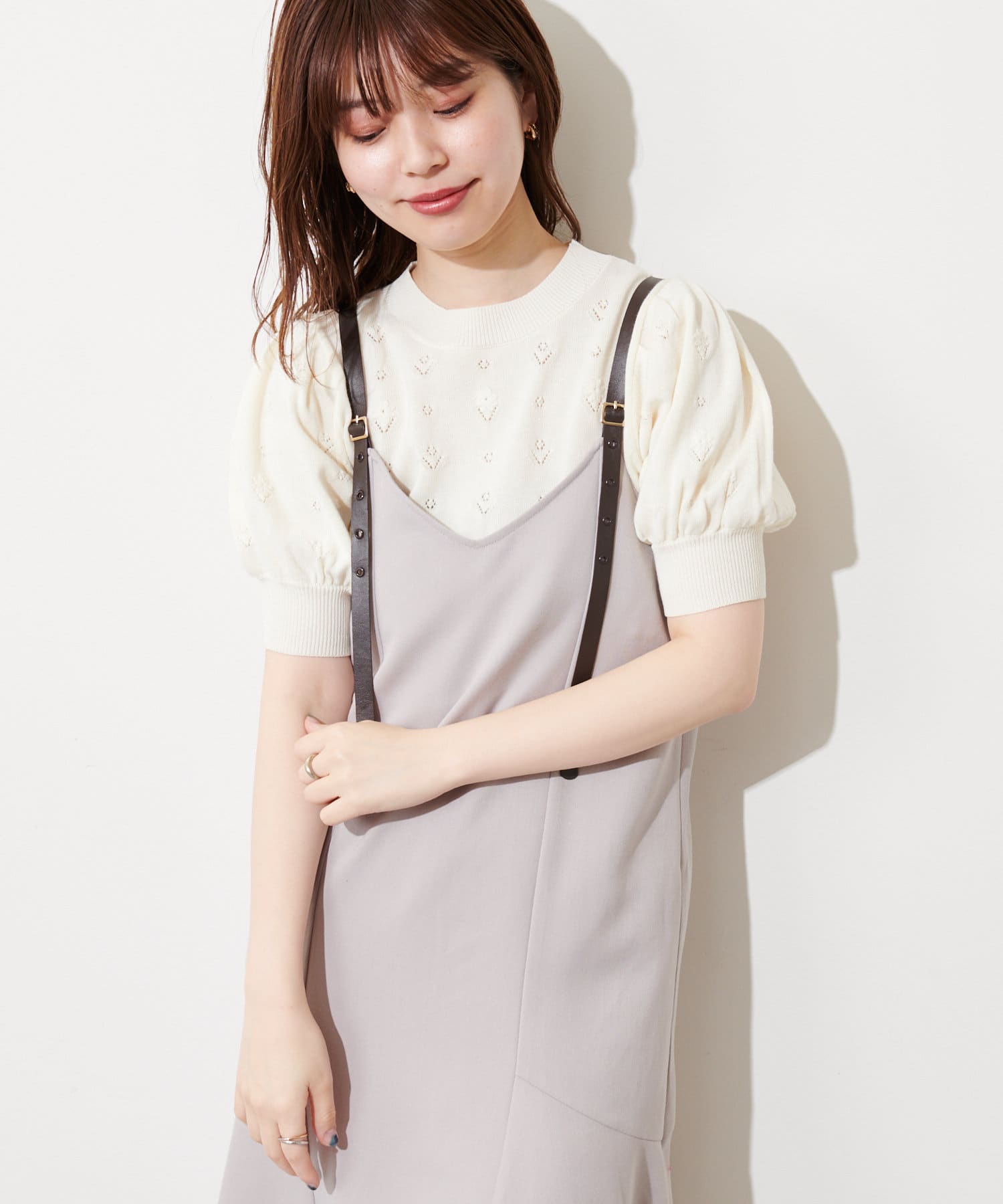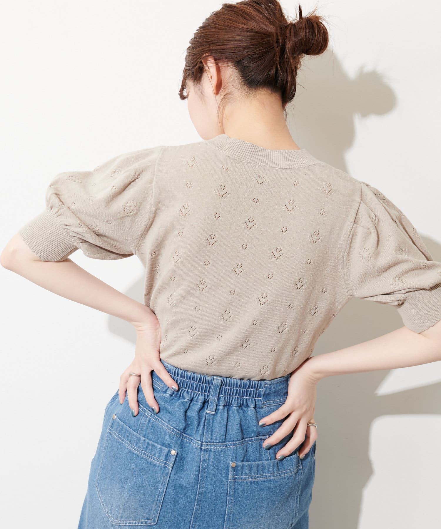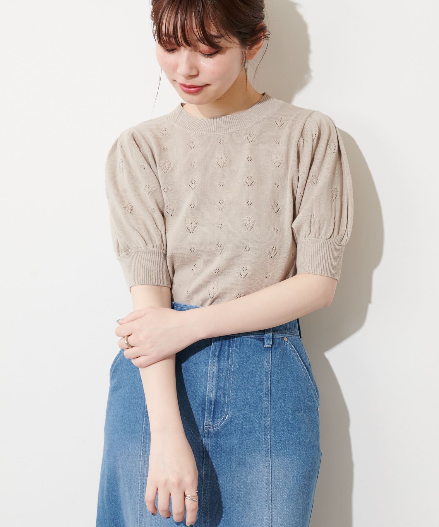 ぽわん袖の今年らしいシルエットのニットトップスが登場。