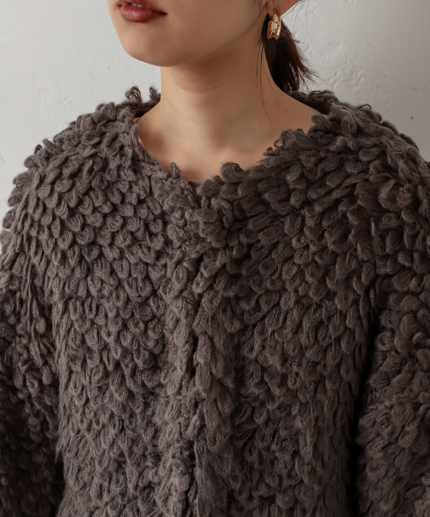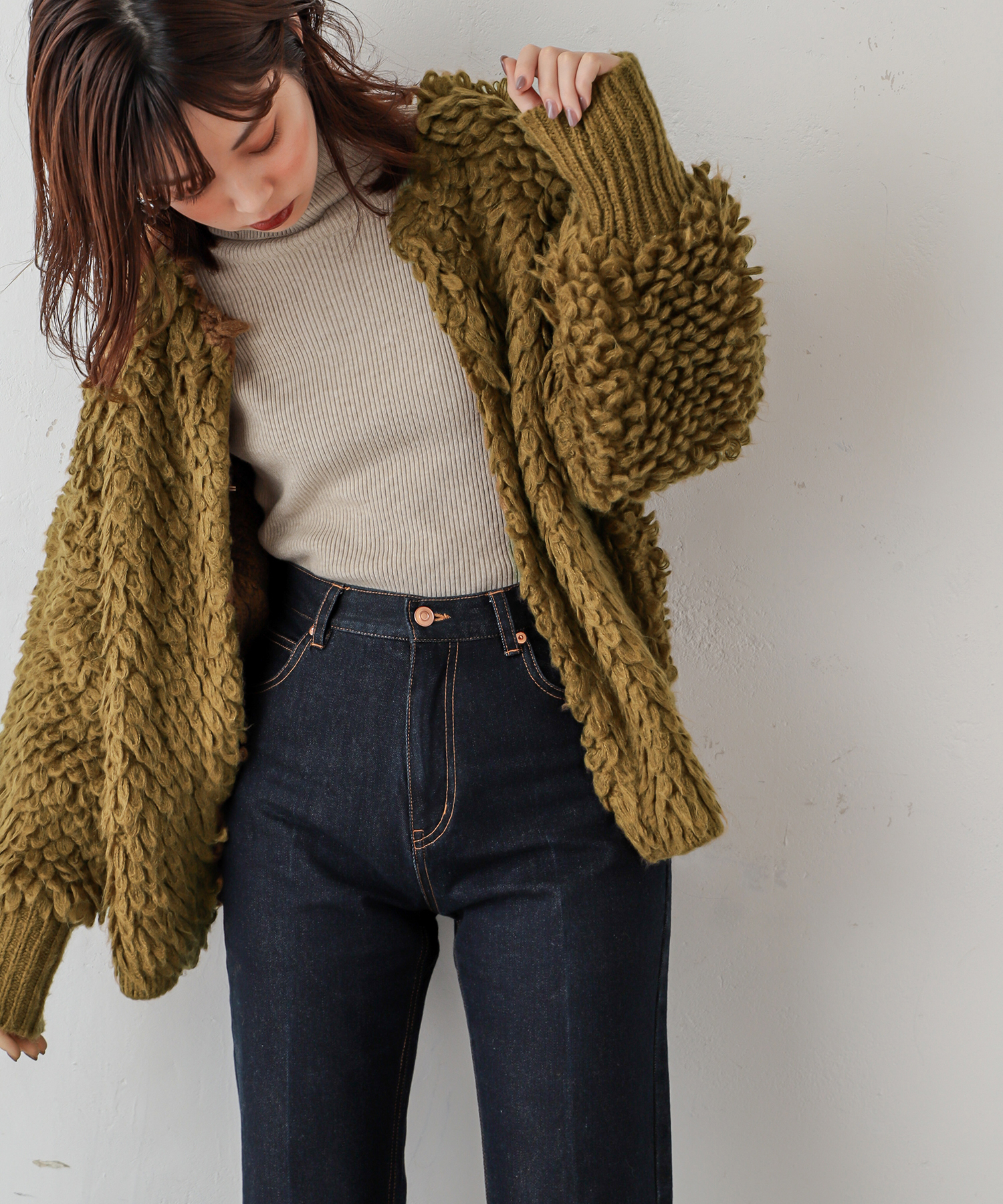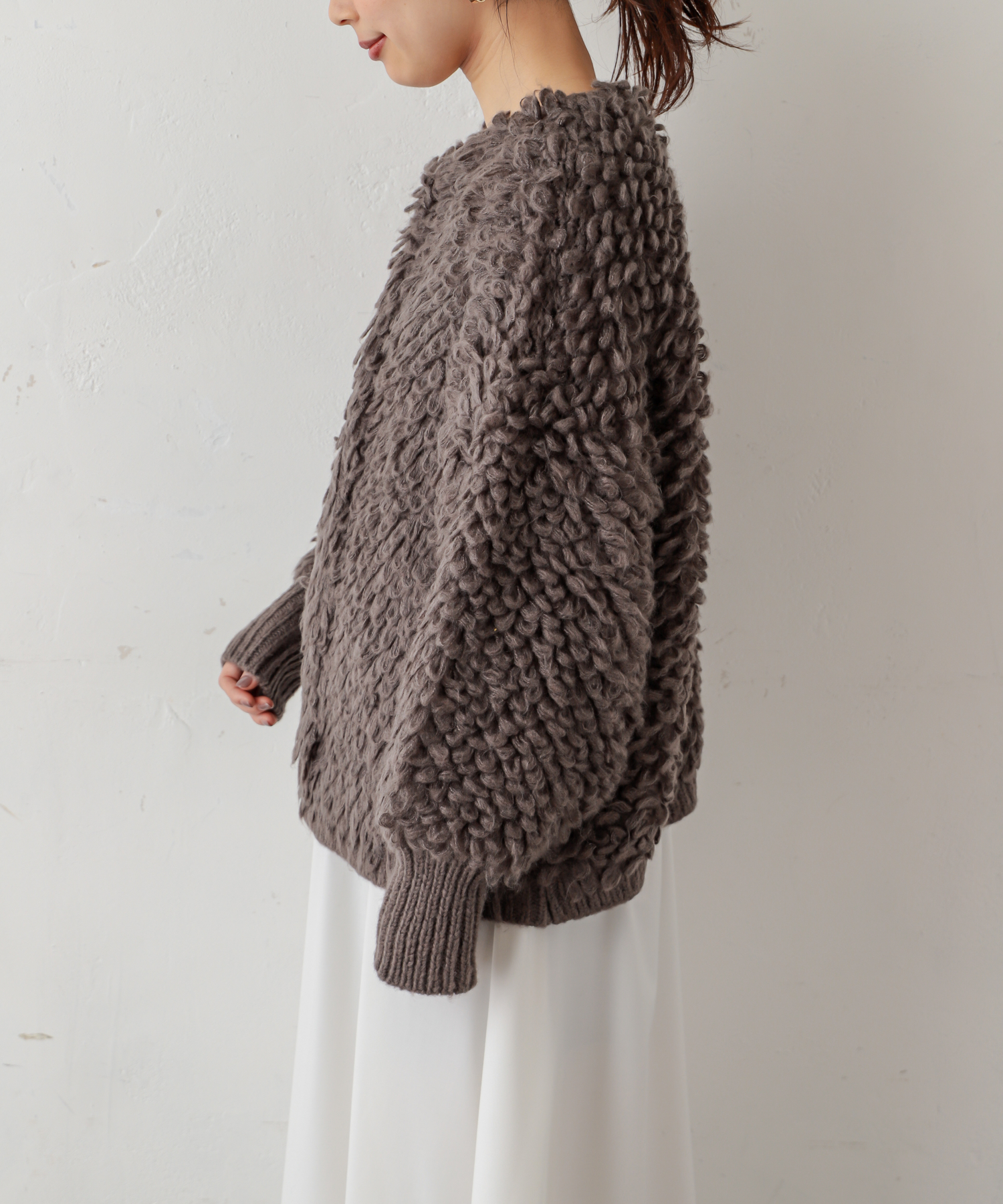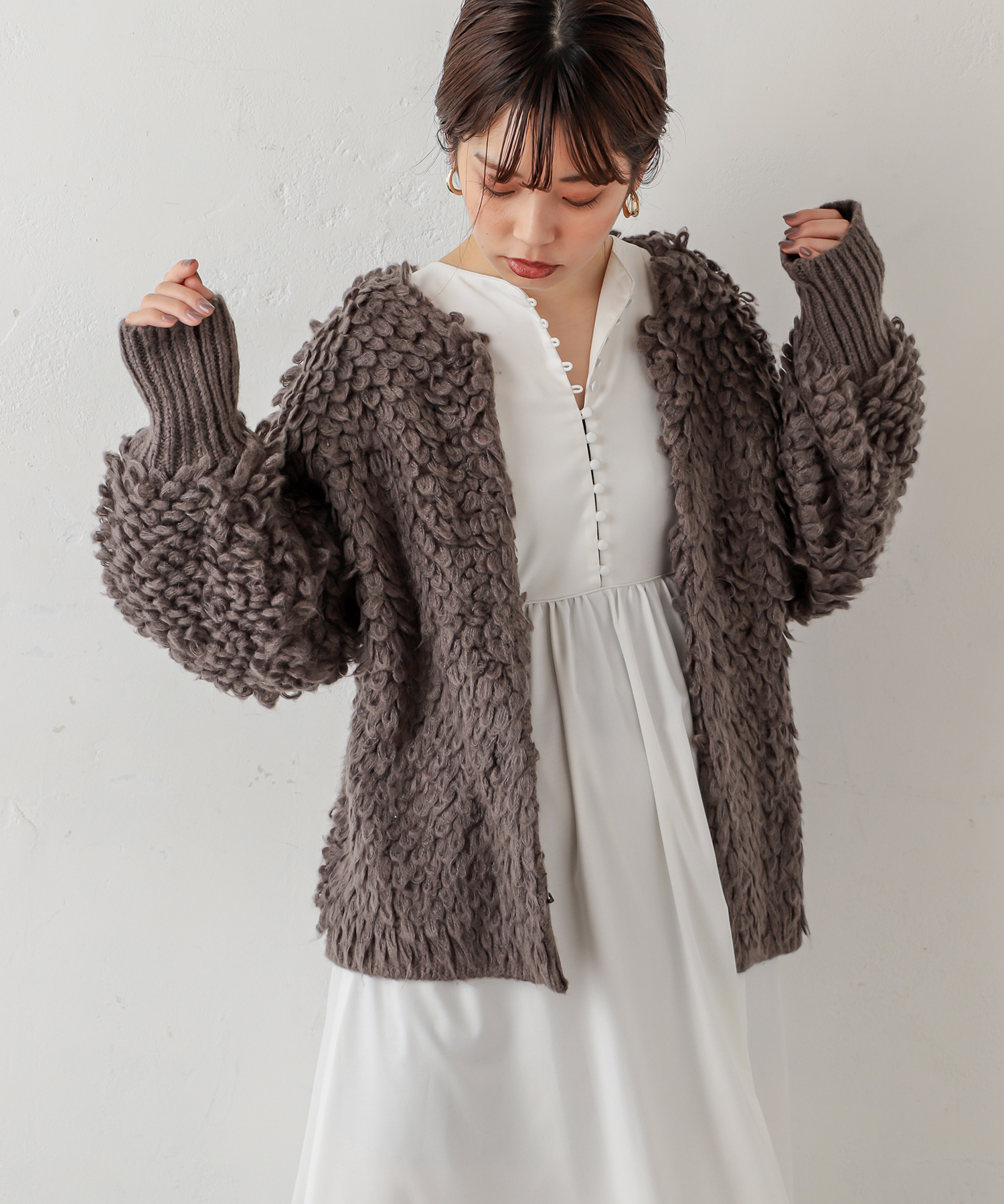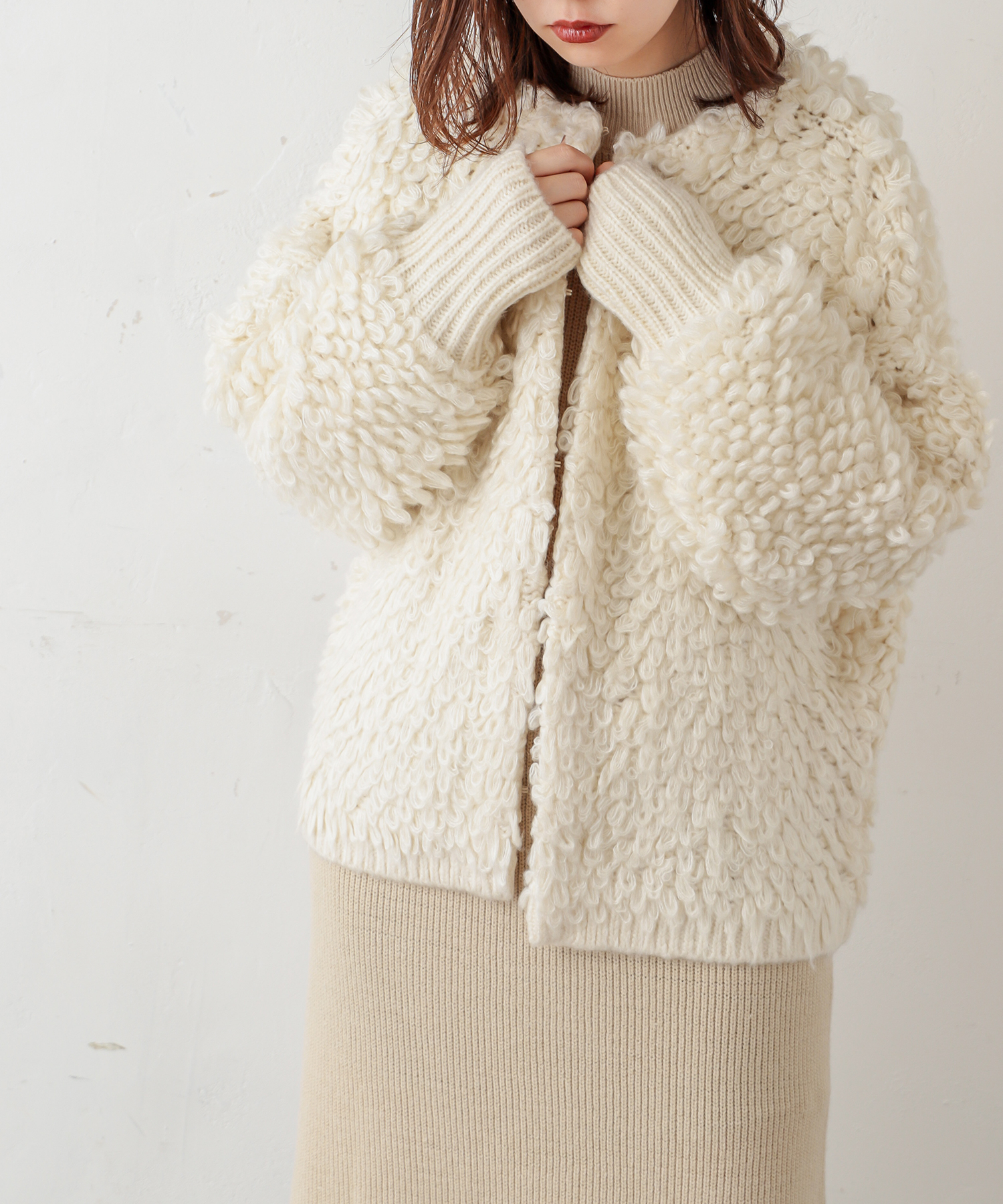 ループヤーンのモコモコ具合が目を引く、おしゃれでキャッチーなカーデの登場です。