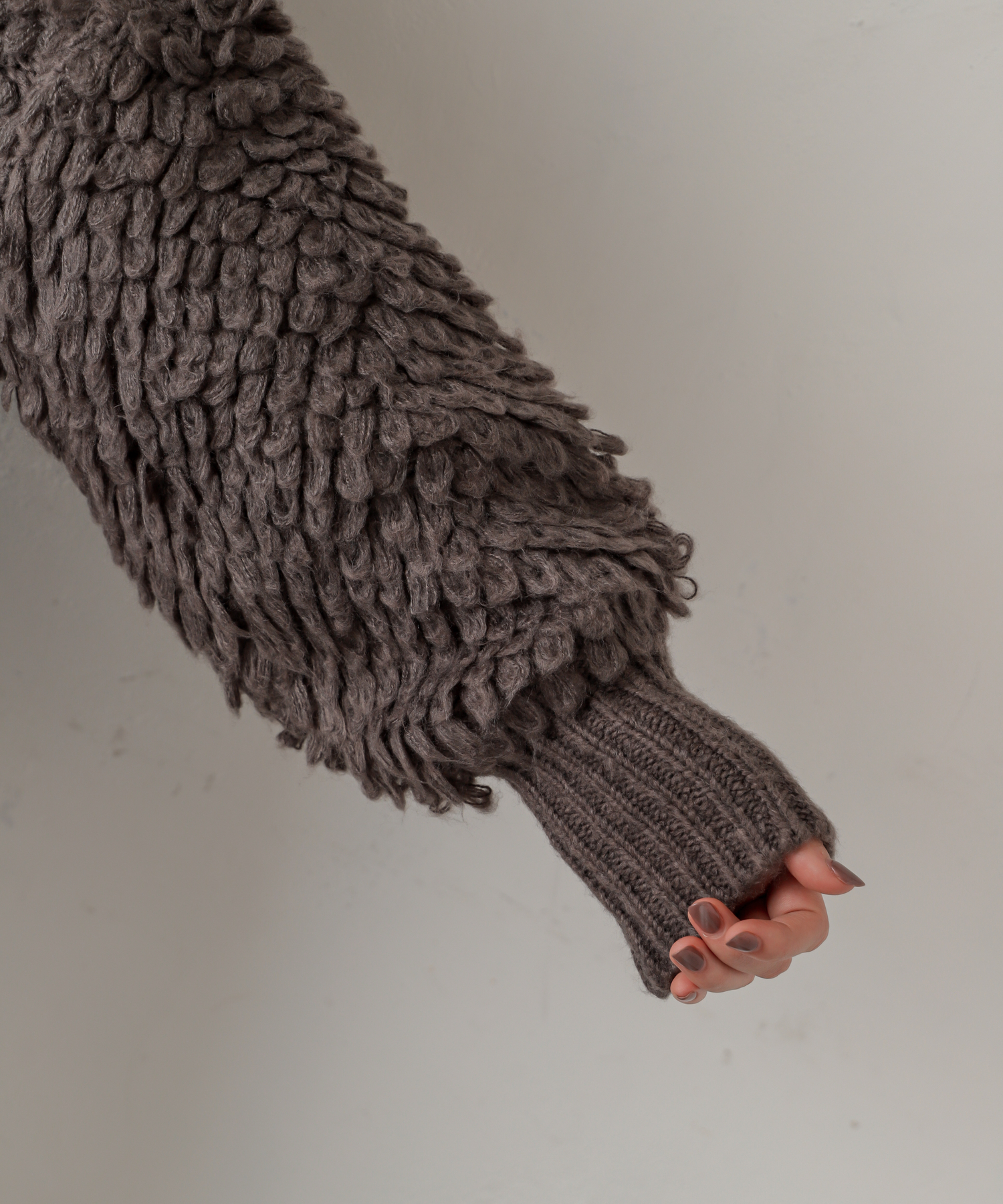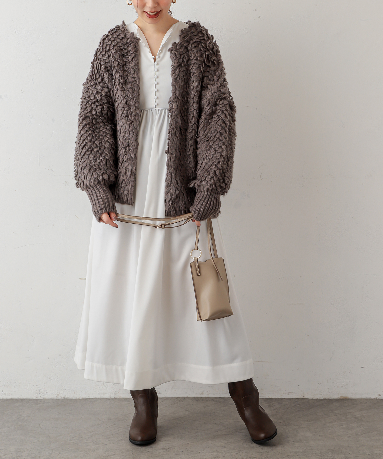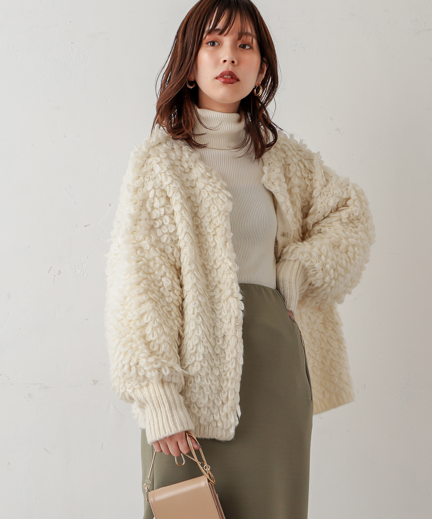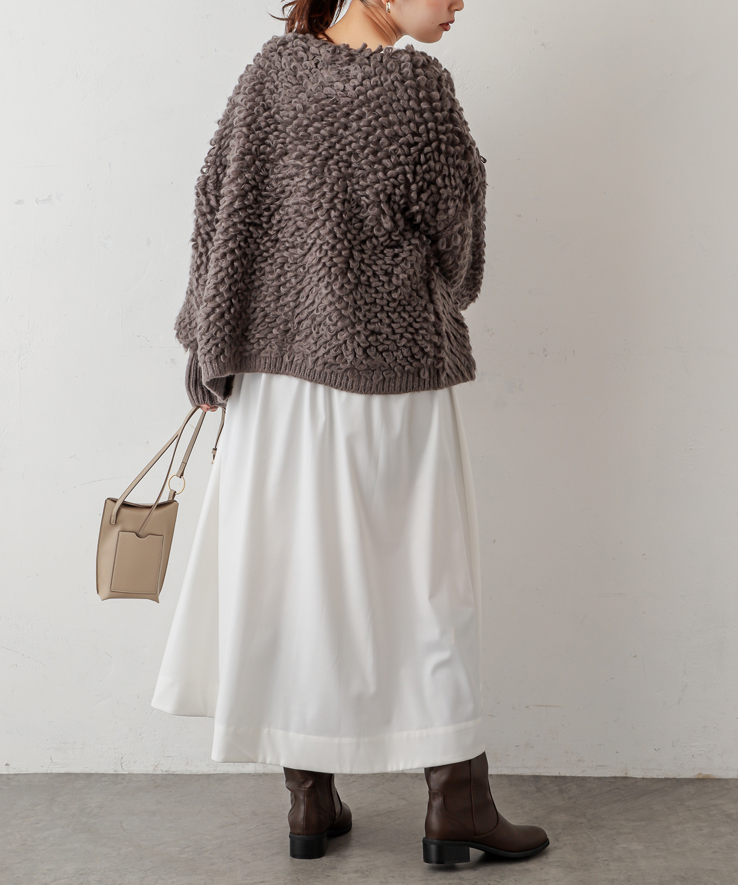 ループヤーンのモコモコ具合が目を引く、おしゃれでキャッチーなカーデの登場です。