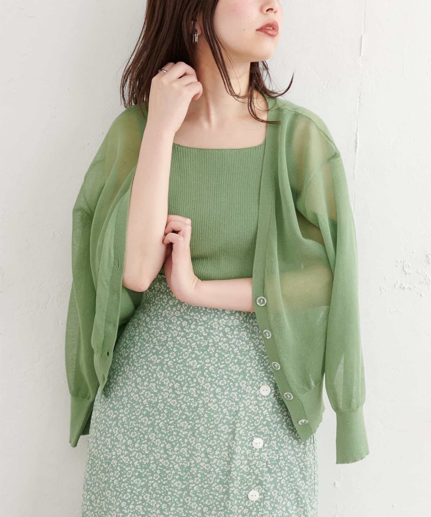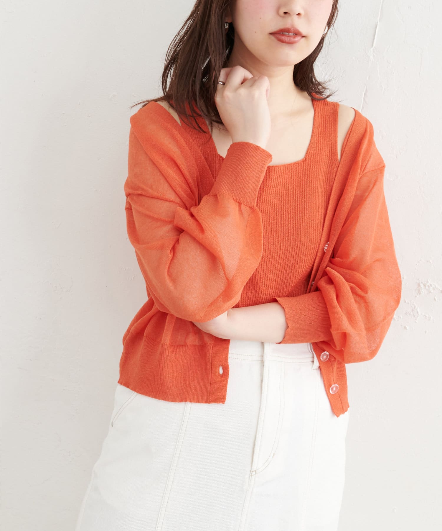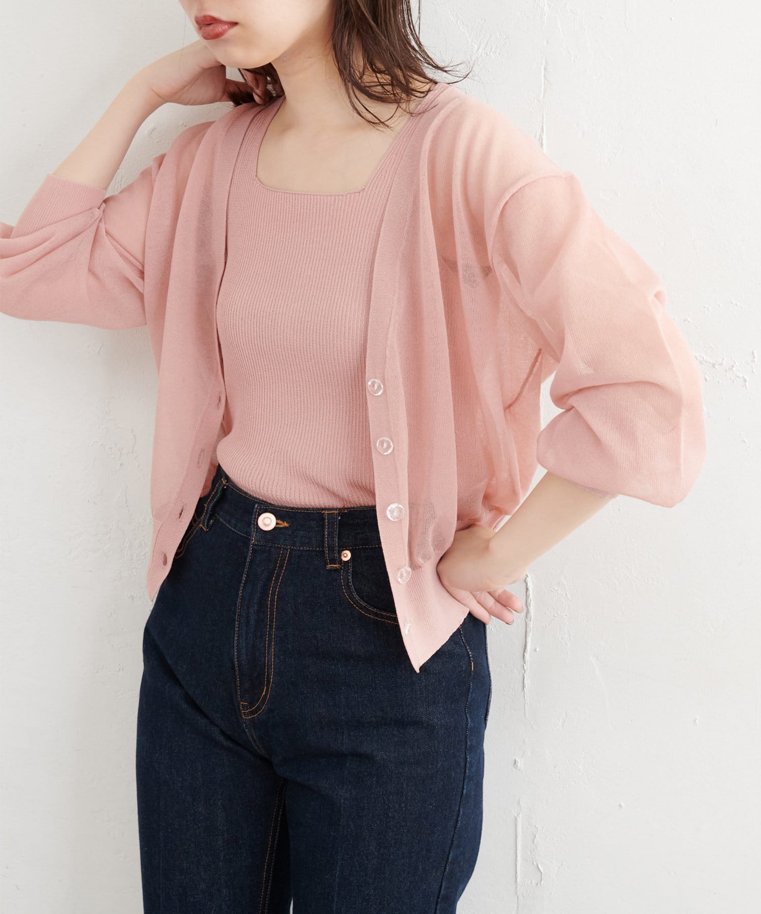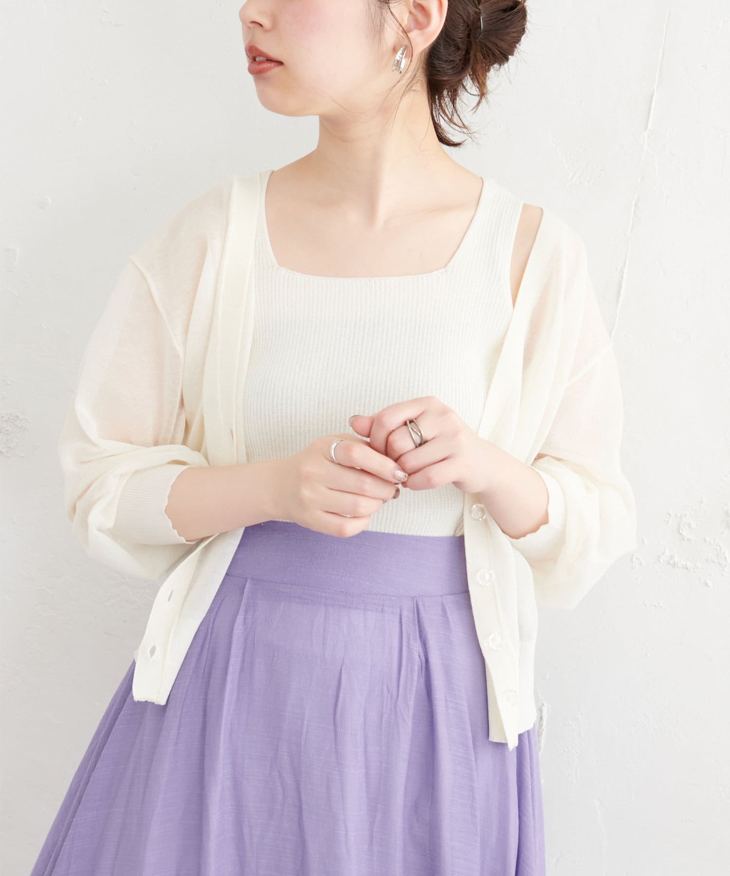 【WEB限定】ほんのりシアーカーデ+タンクセット