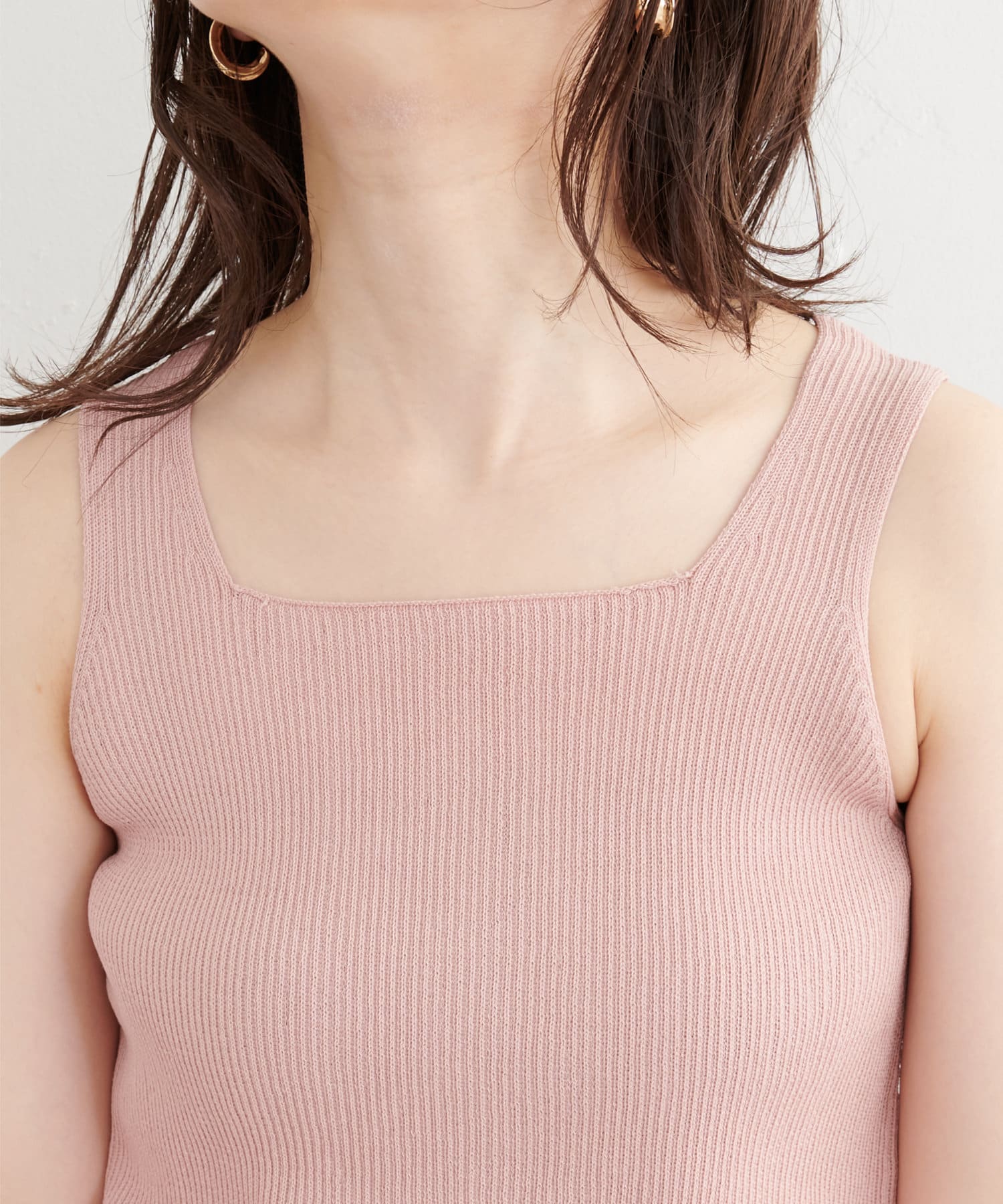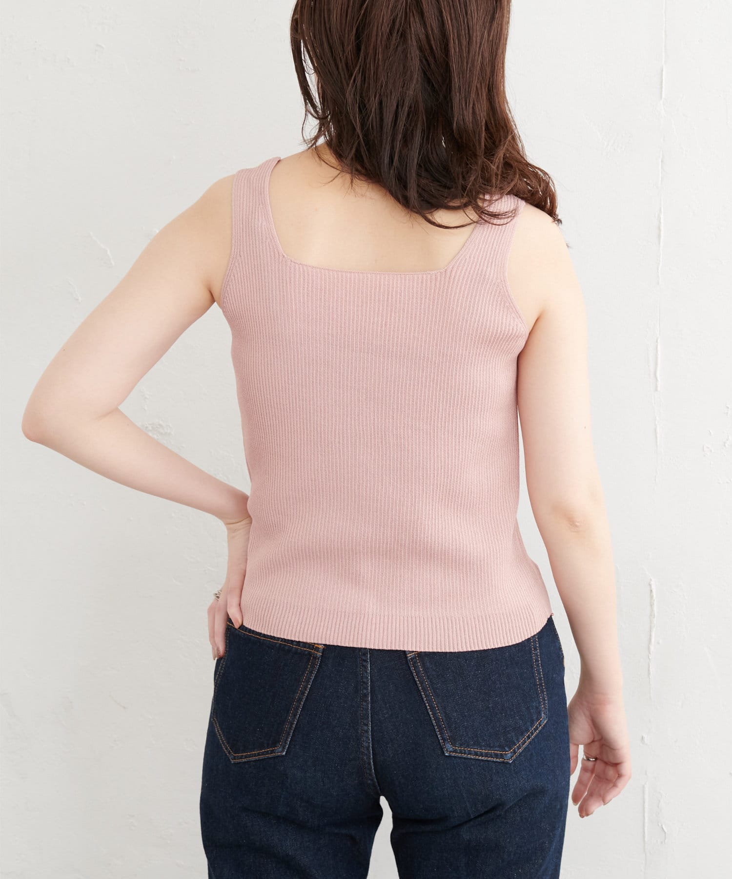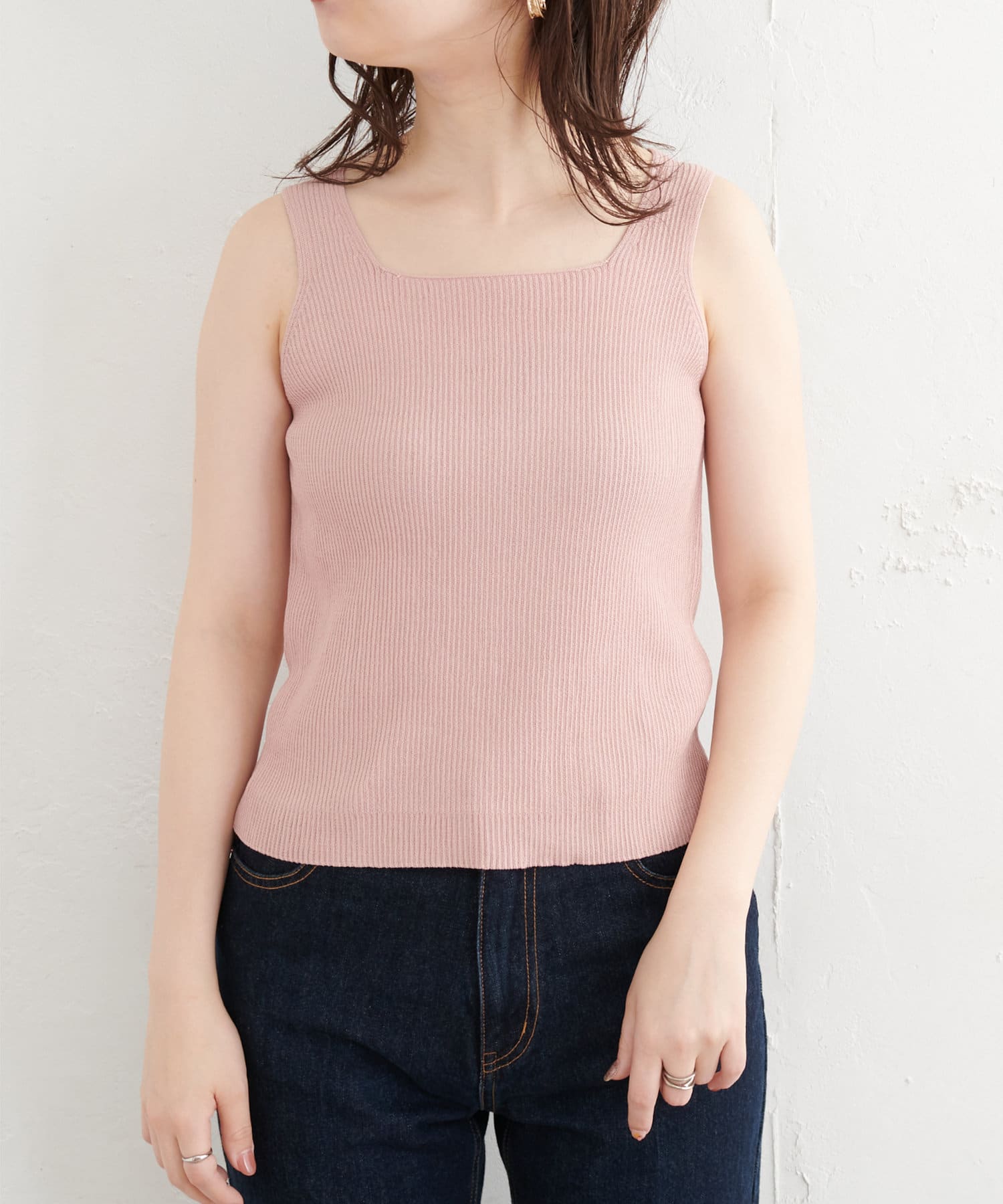 汎用性あるタンクトップは、単体でのニットトップスとしてボトムを選ばずに着まわせます。