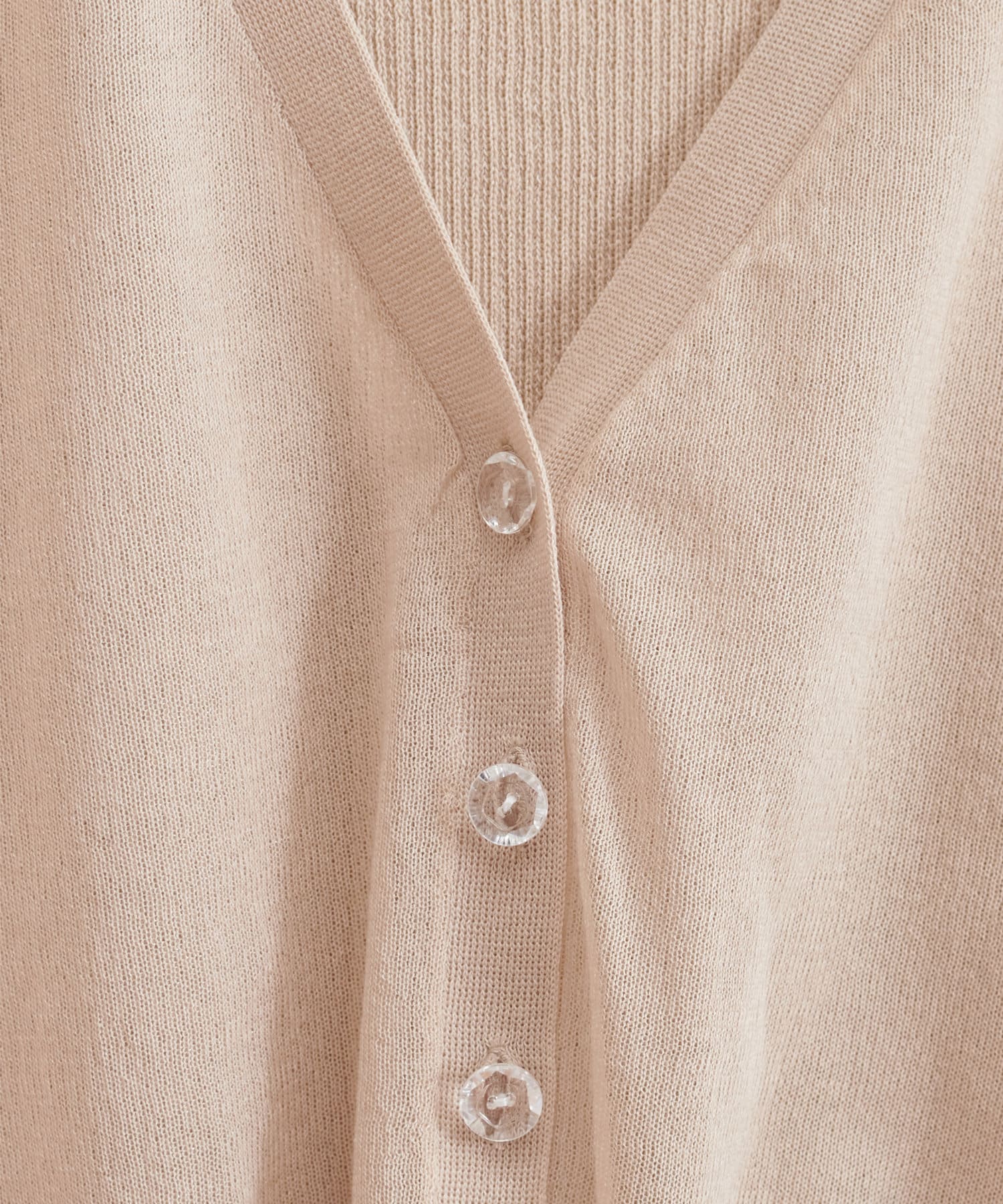 カーディガンはボタンを留めてプルオーバーとしてもOK。