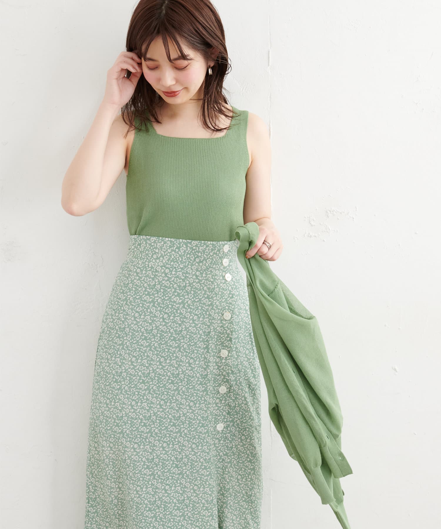 カーディガンとタンクトップのセットアイテムです。