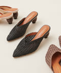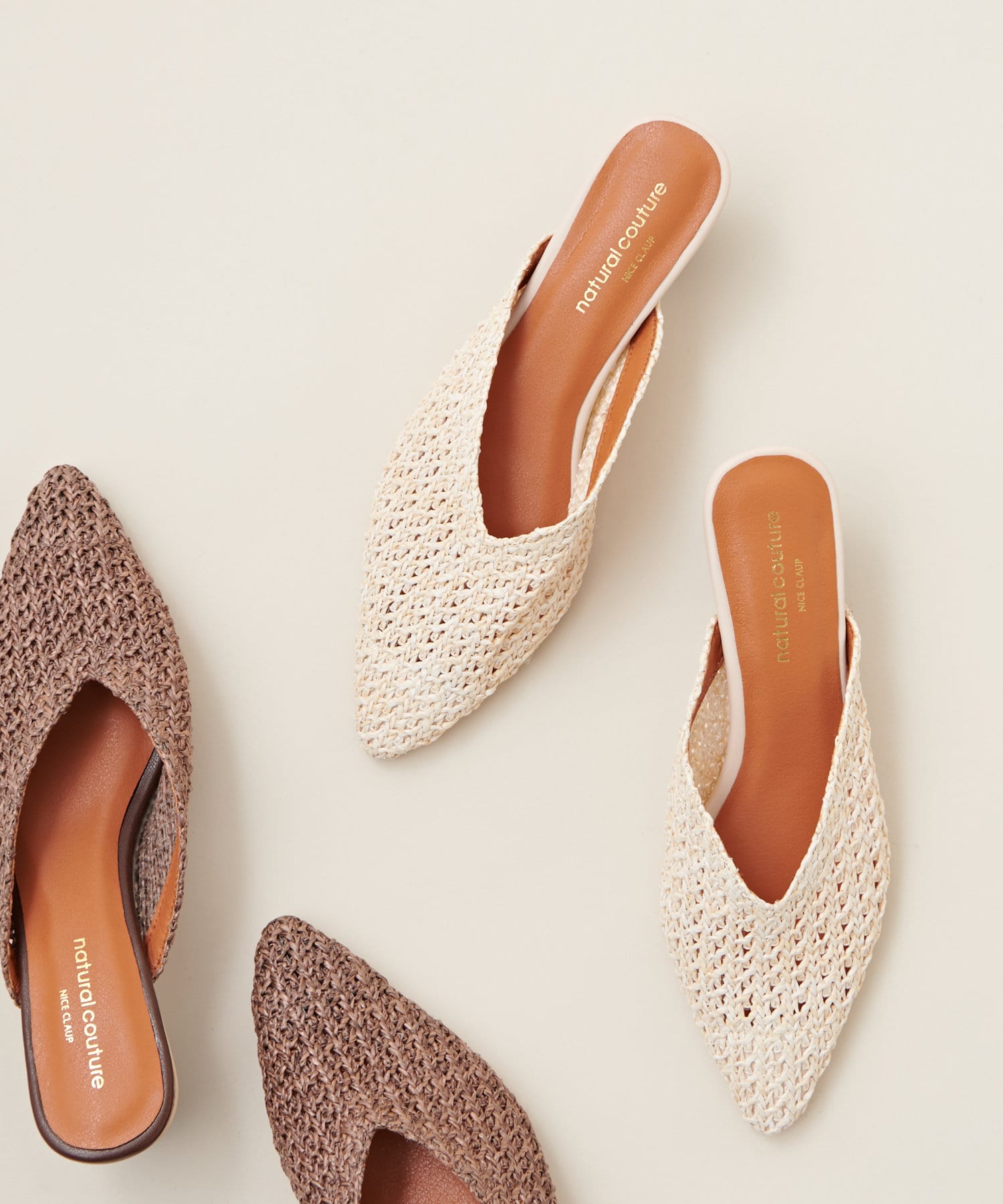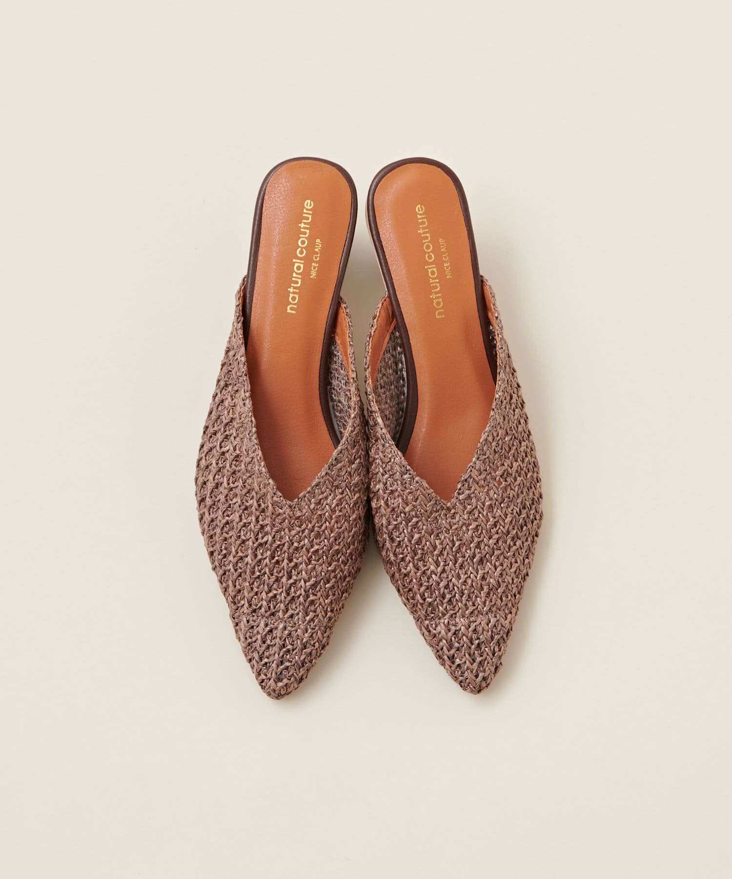 涼しげな雑材メッシュ編みで仕上げたナチュラルな雰囲気のミュール。