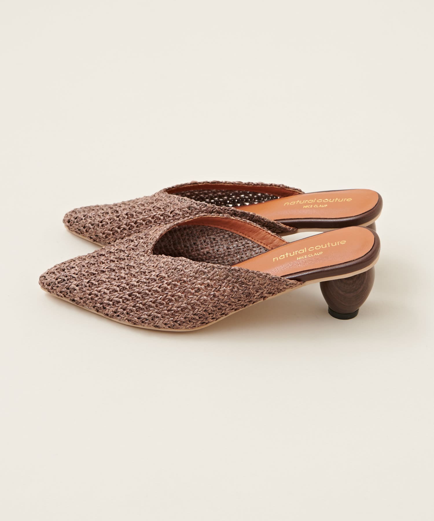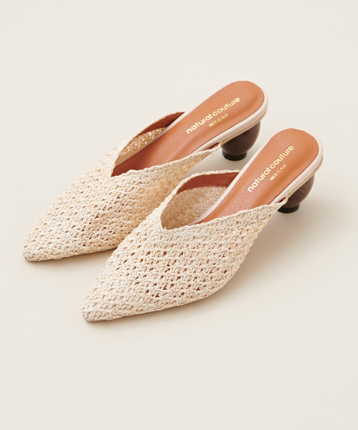 • natural couture(ナチュラルクチュール) ウッドヒール雑材メッシュミュール