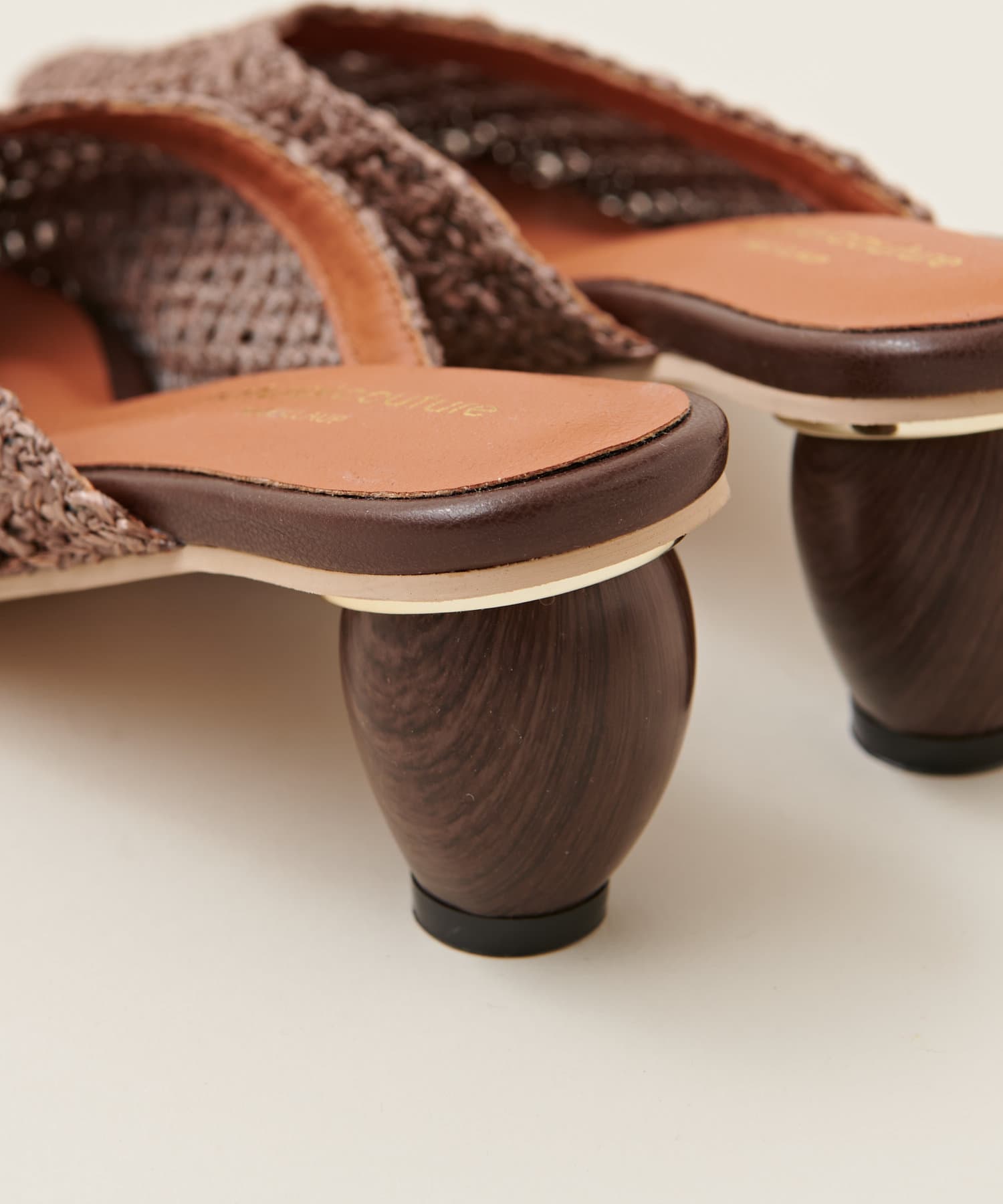 natural couture(ナチュラルクチュール) ウッドヒール雑材メッシュミュール