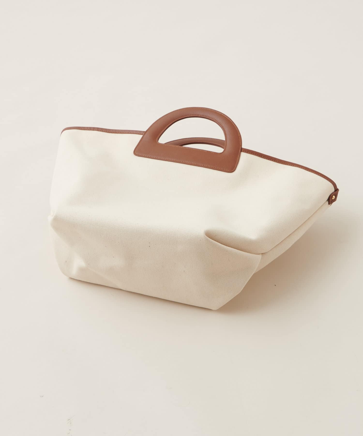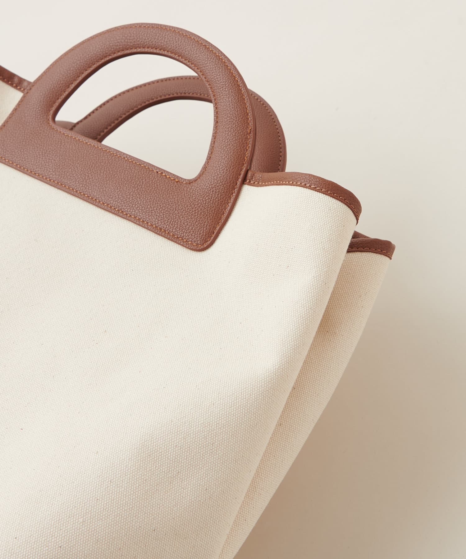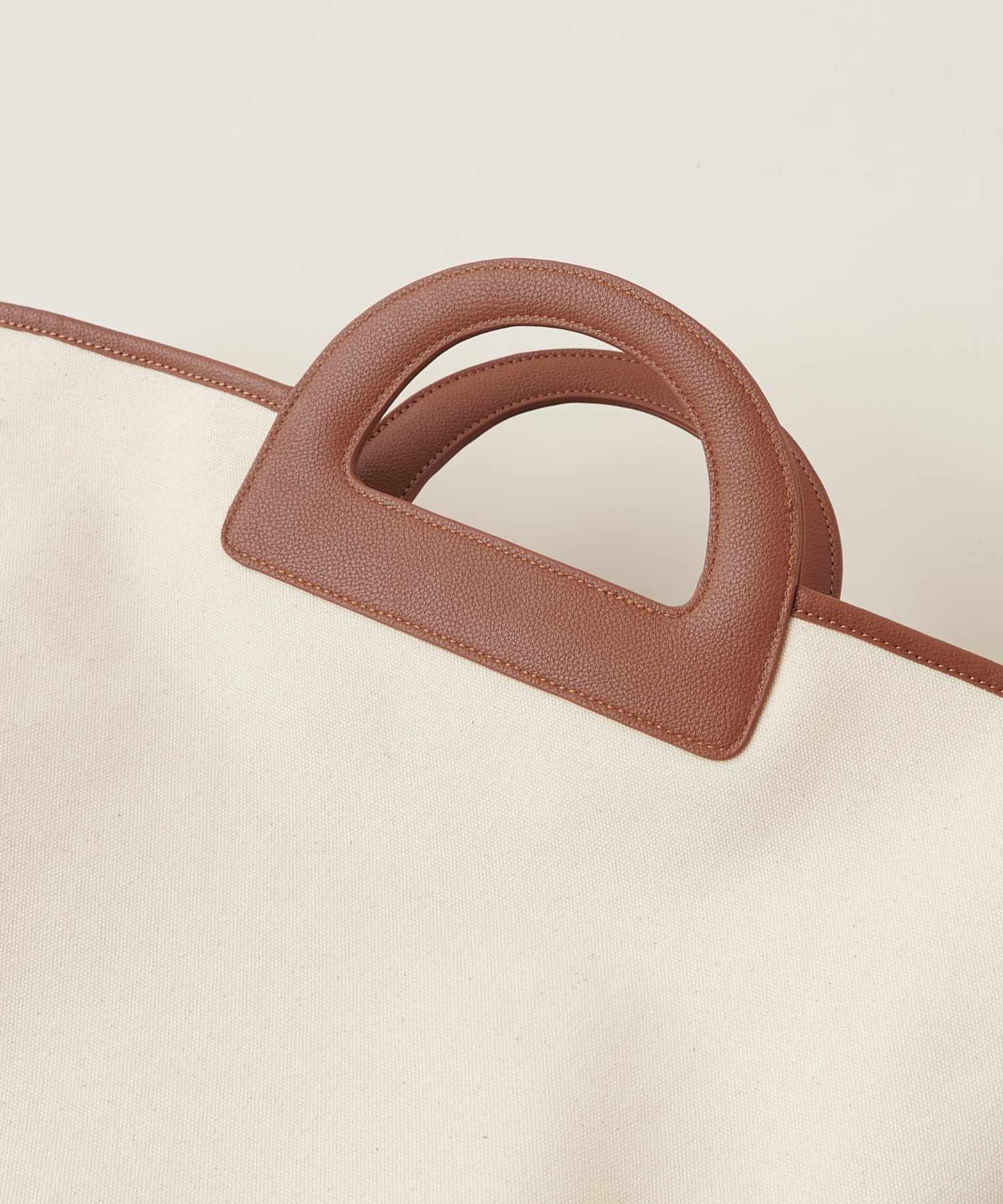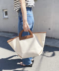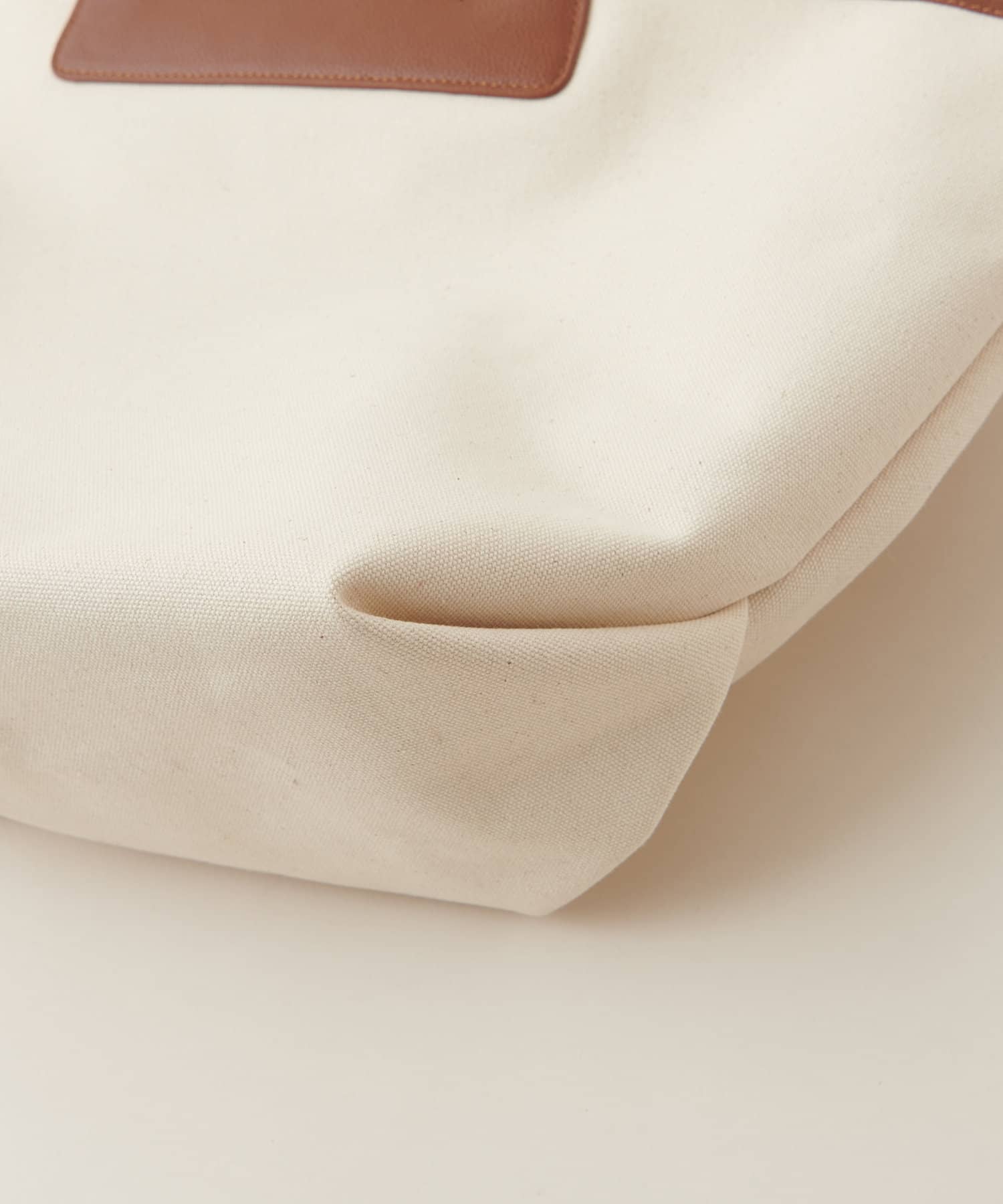 オールシーズン使用できるキャンバス×エコレザーパイピングがアクセントになったトートバッグ。