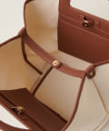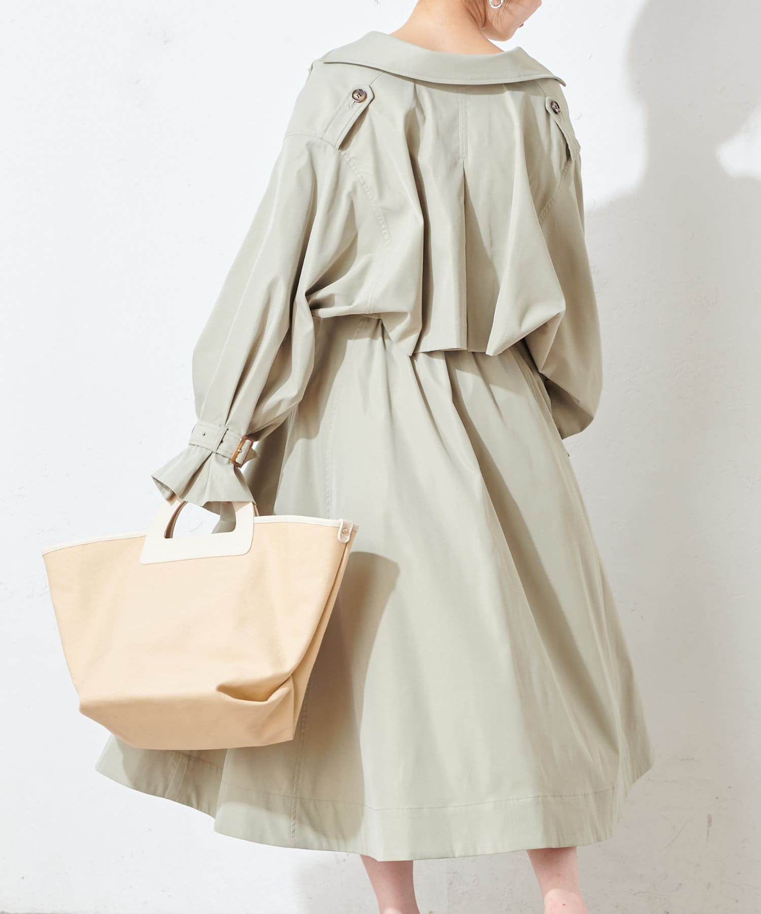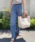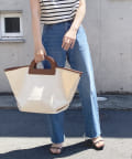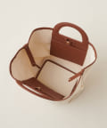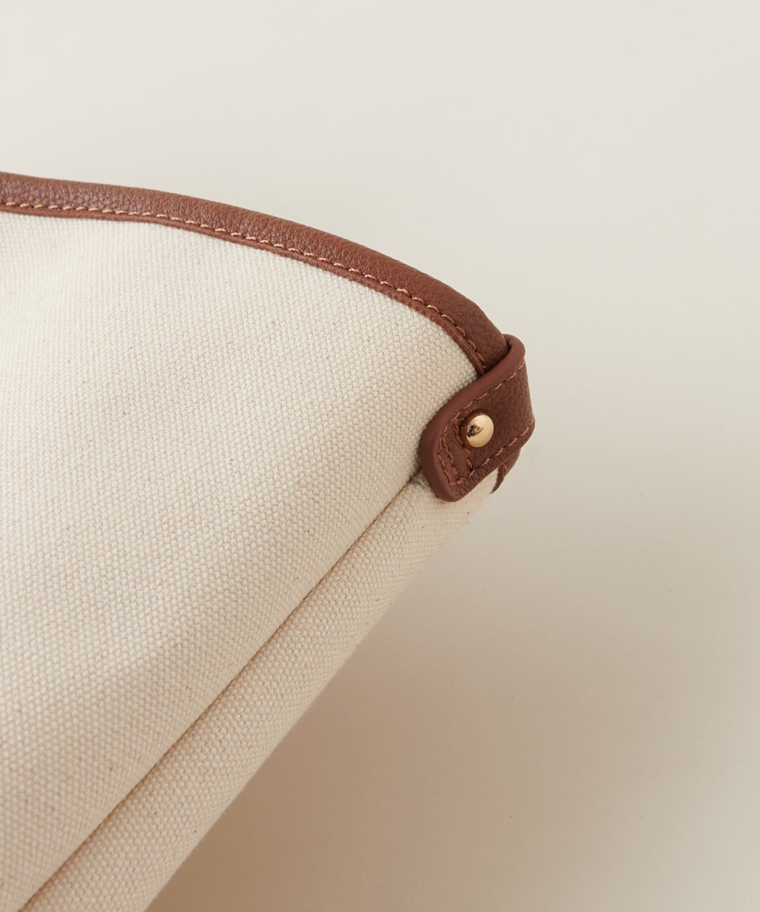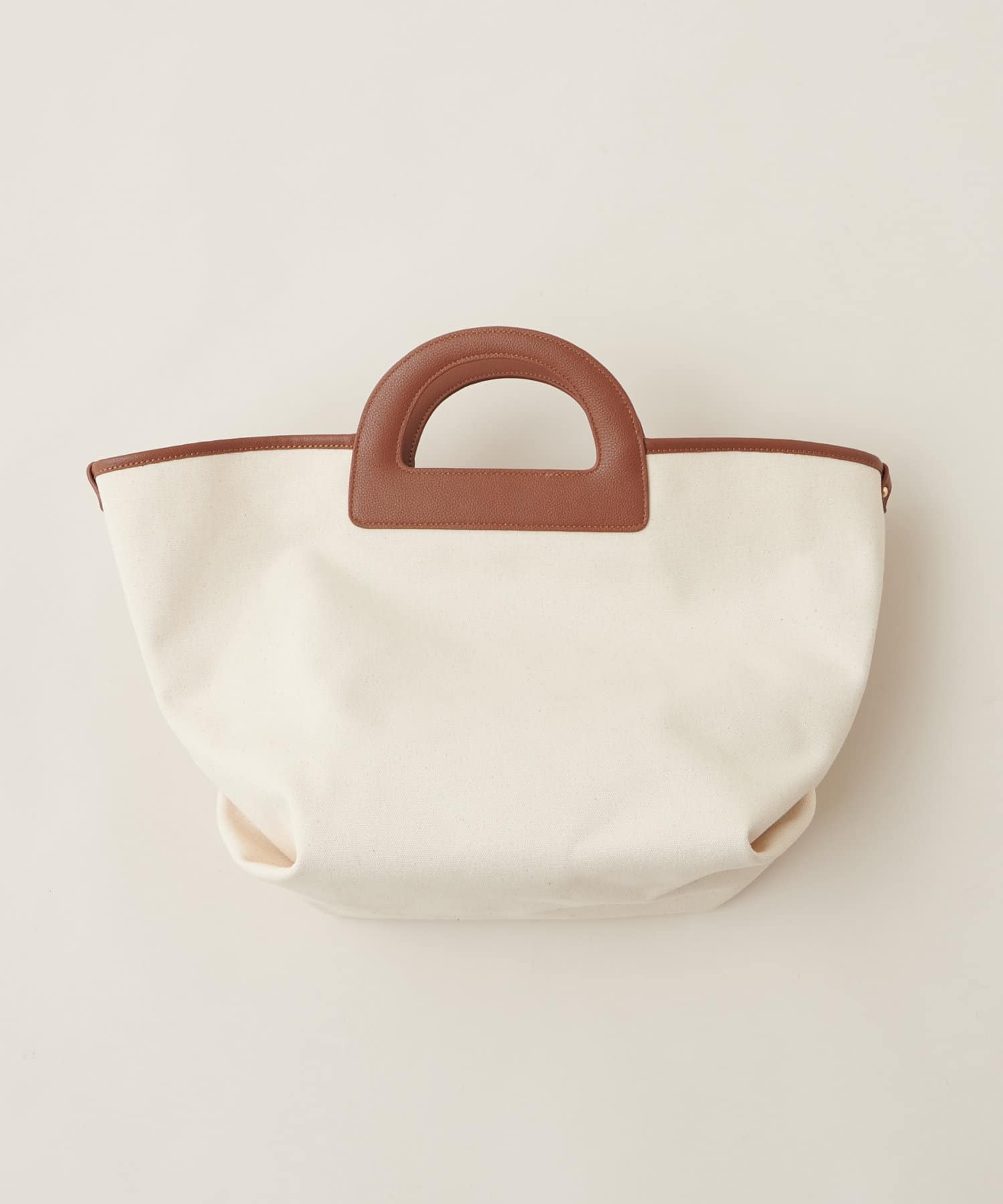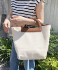 オールシーズン使用できるキャンバス×エコレザーパイピングがアクセントになったトートバッグ。