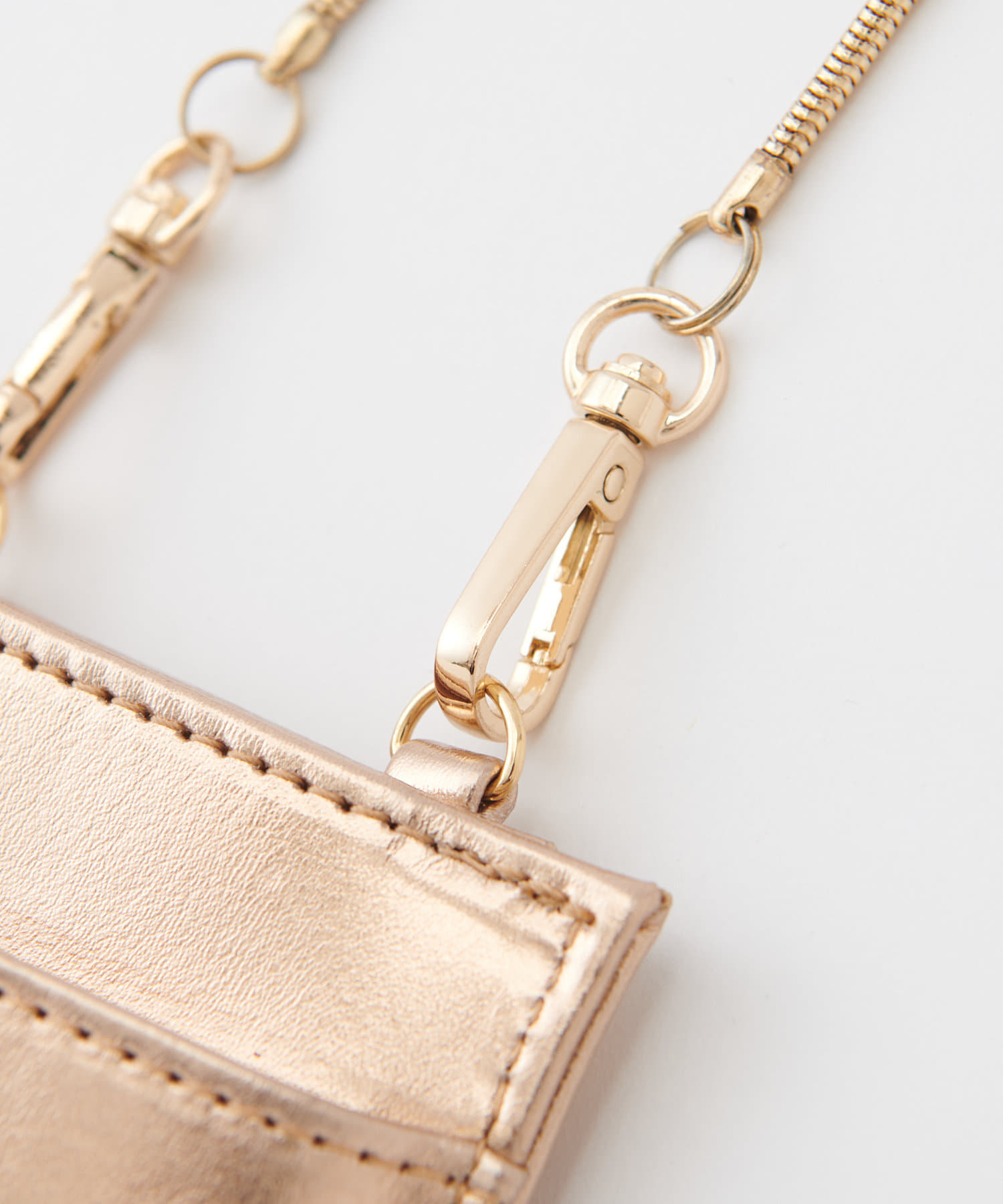 ショルダー紐は、スタイリングを邪魔しない華奢なゴールドチェーンにこだわりました。
