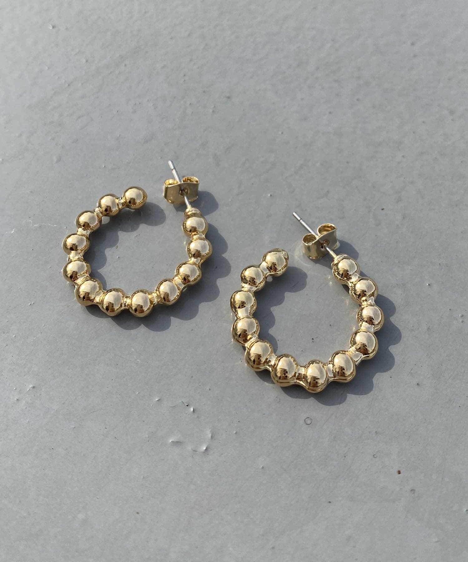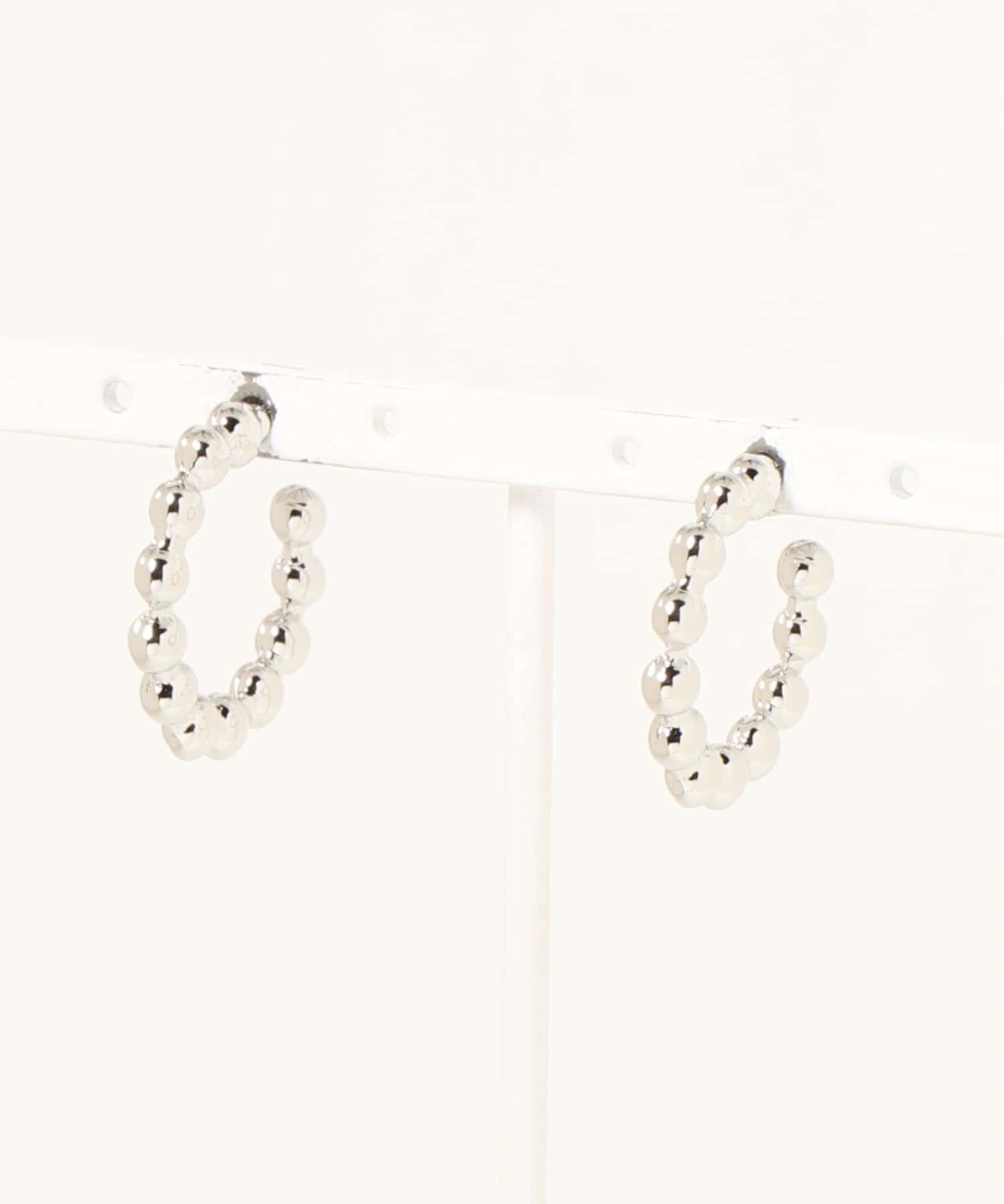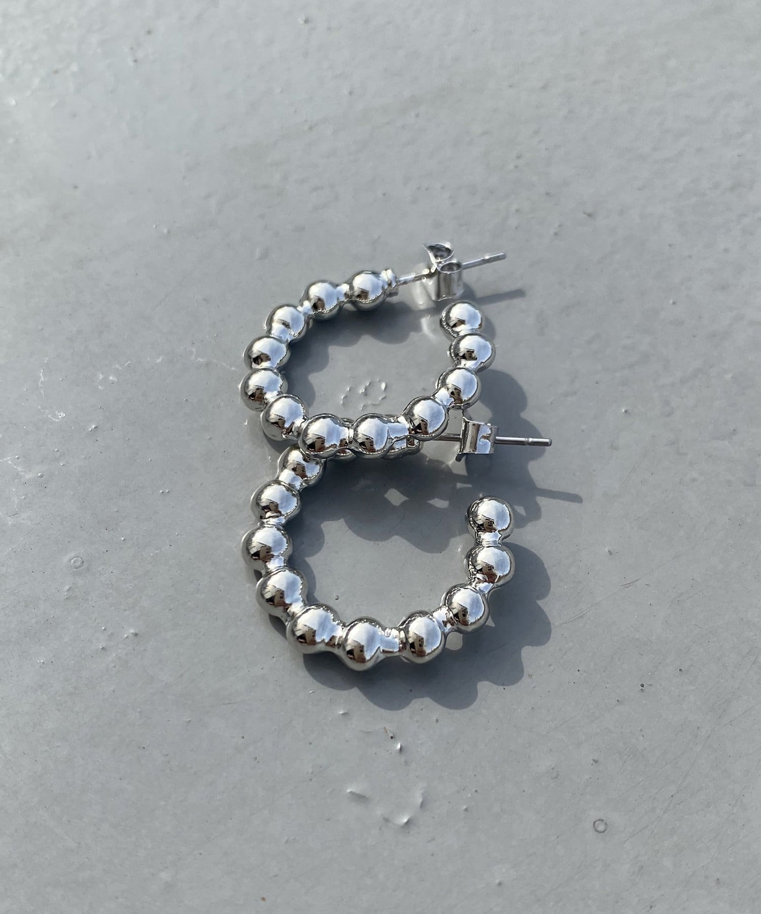 つぶつぶの個性的なモチーフと、シンプルなラインが耳元をさりげなく演出。