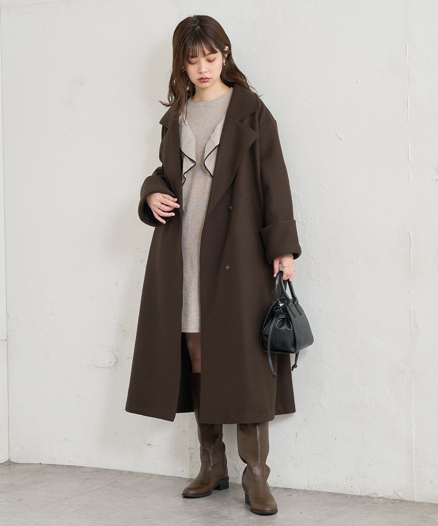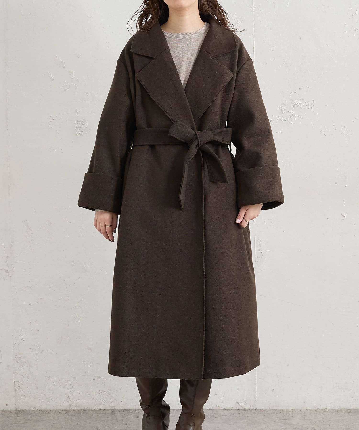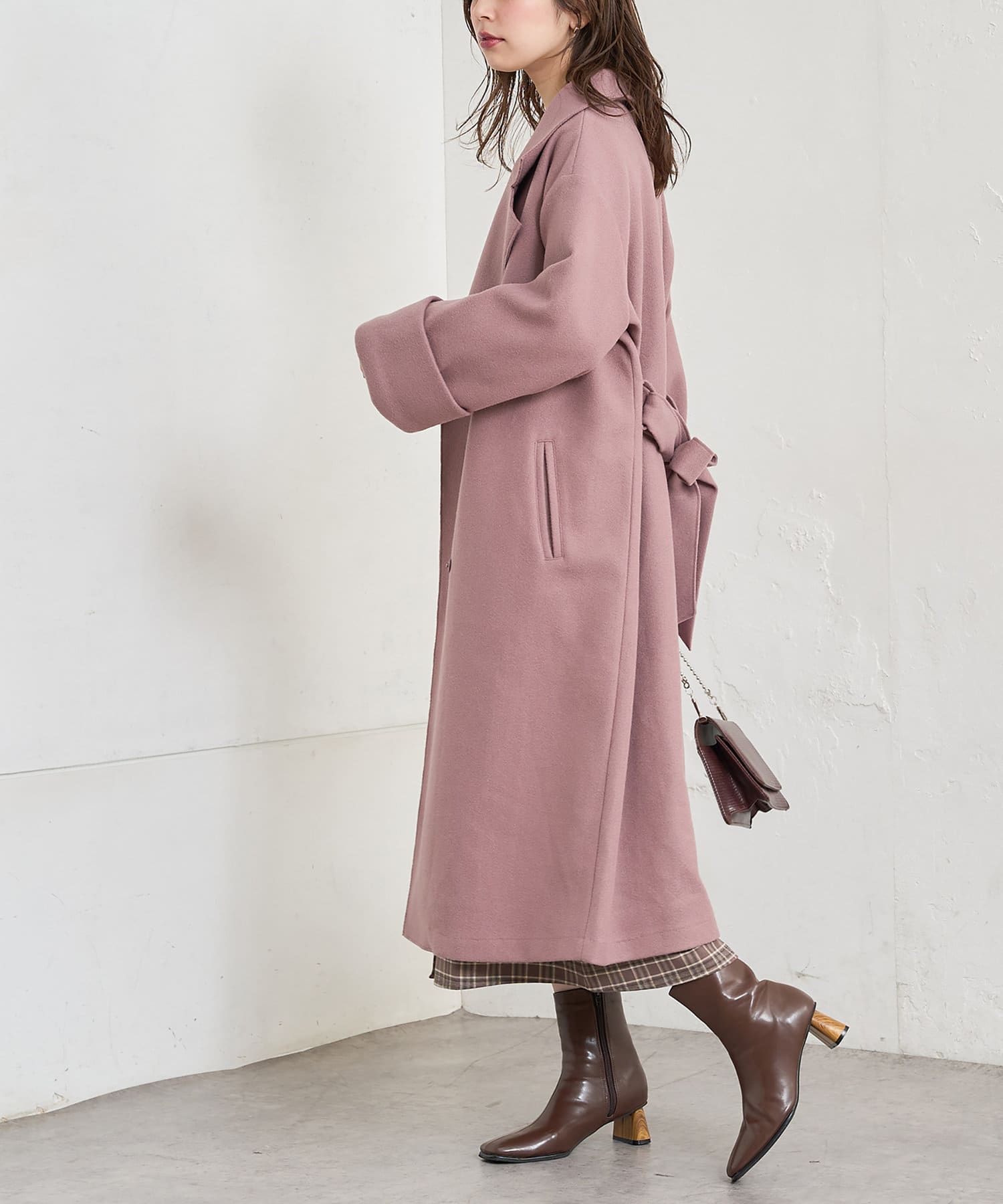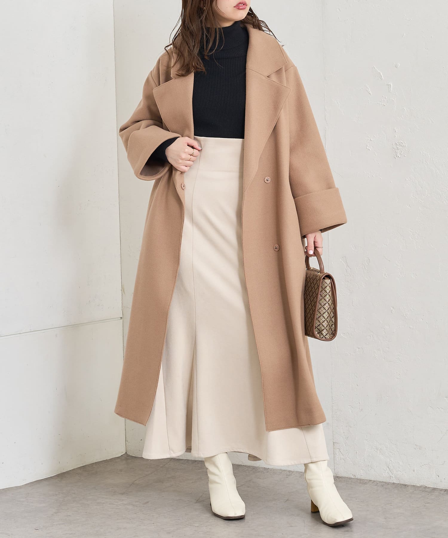 コートの前を閉じてウエストマークしたり、使い方次第でコーデの幅が広がります。