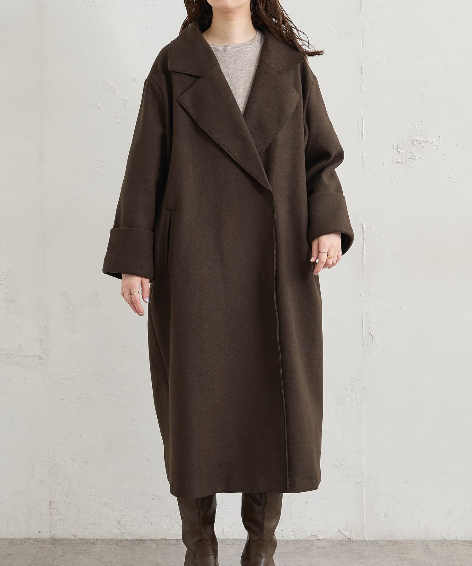 ガウン風のデザインで、大人上品な印象ながらも、普段着にさっと羽織りやすい1着です。