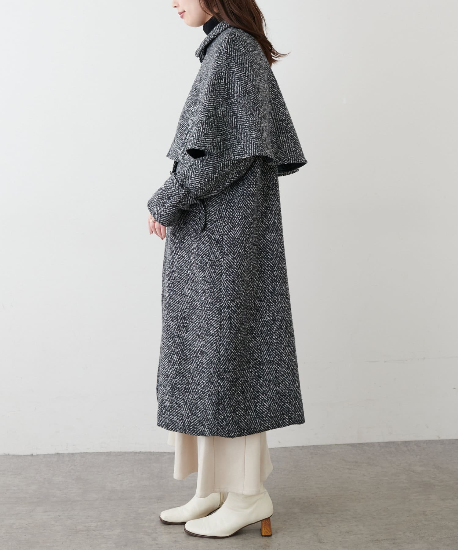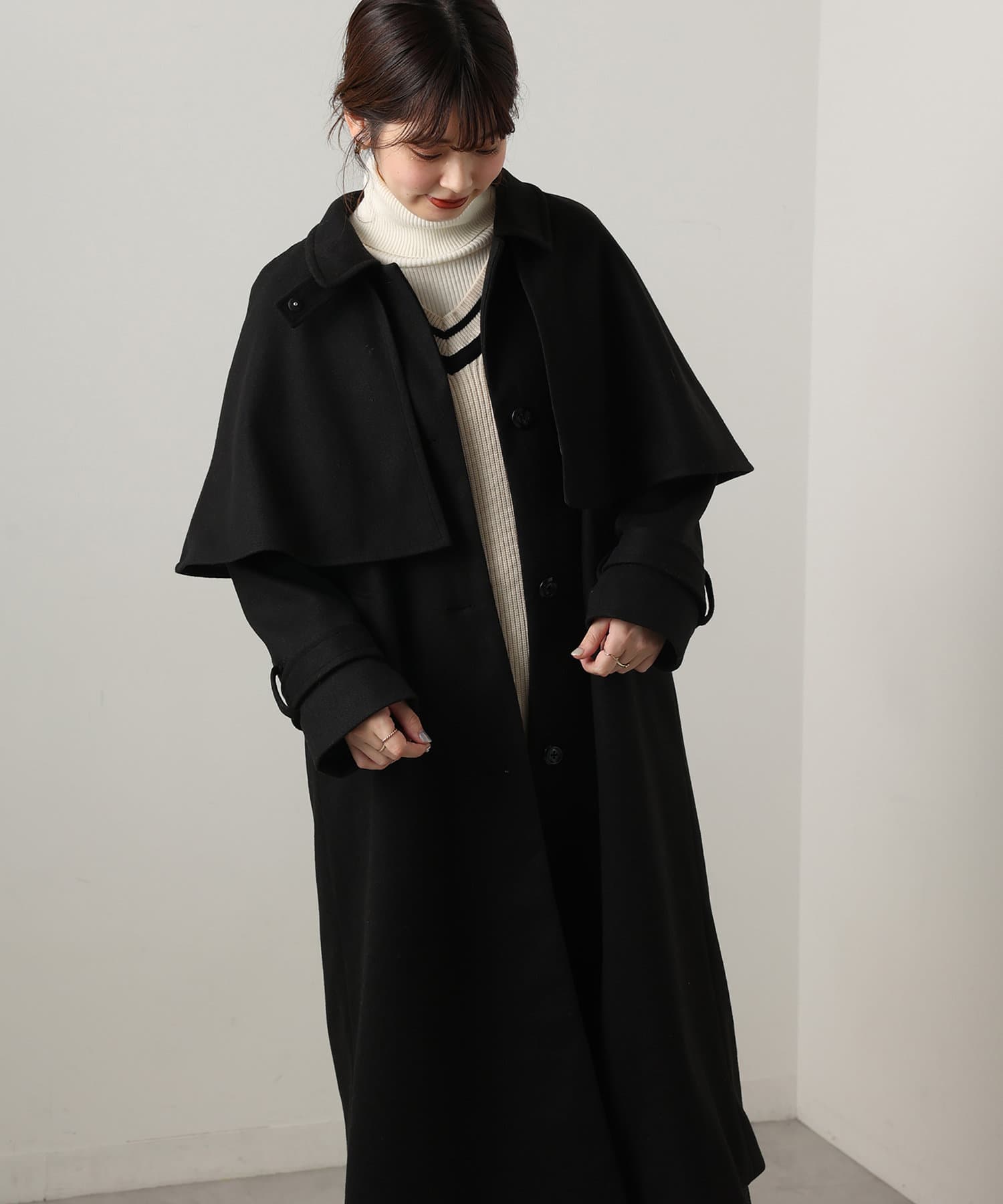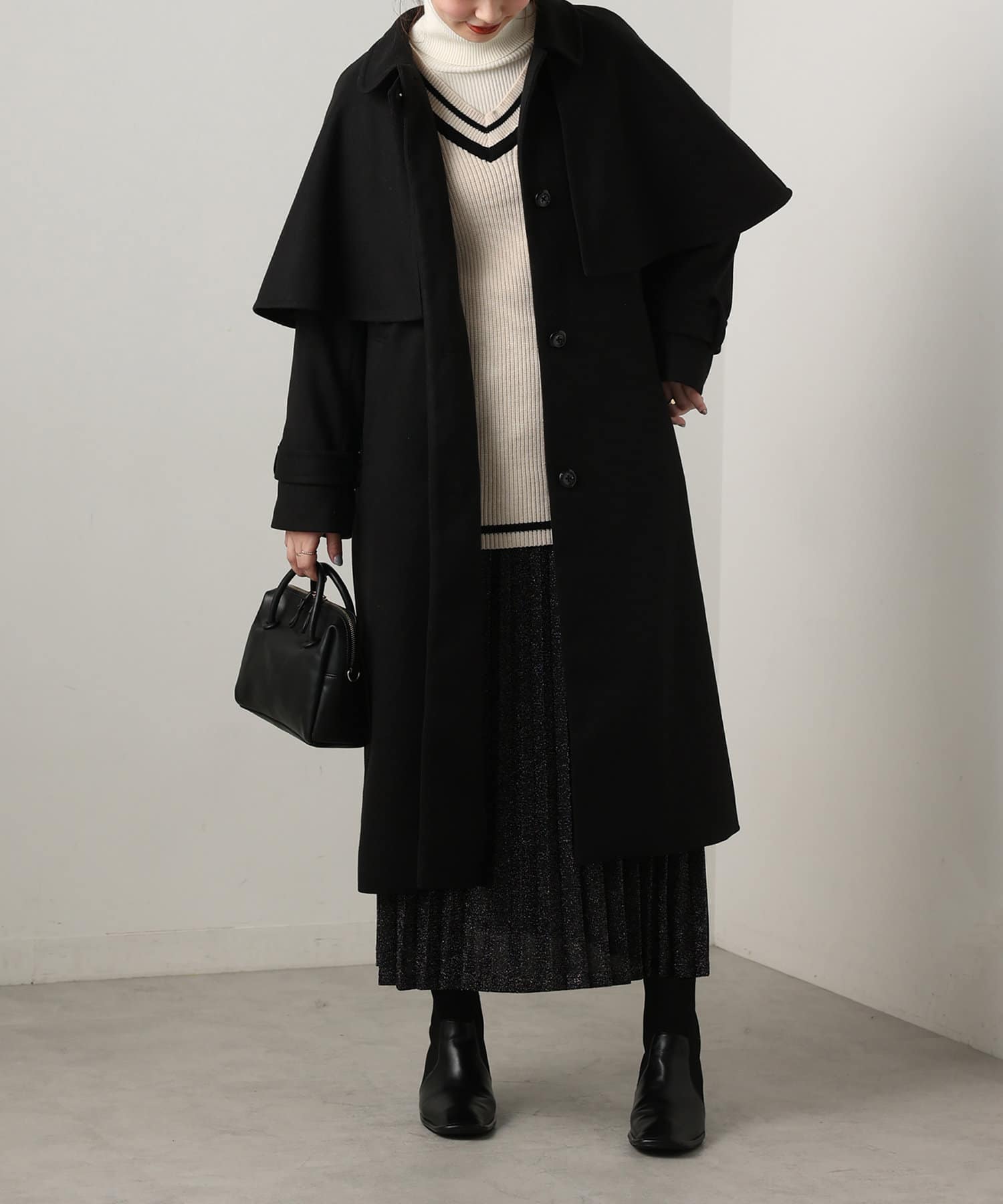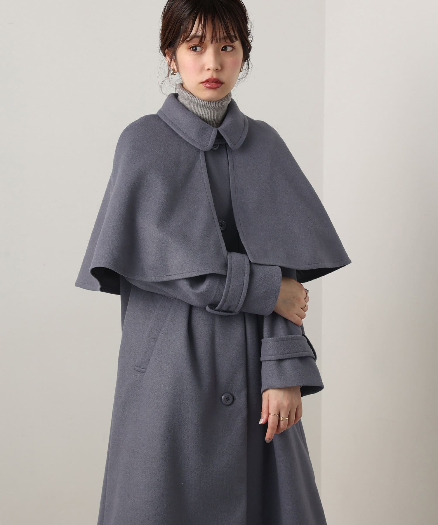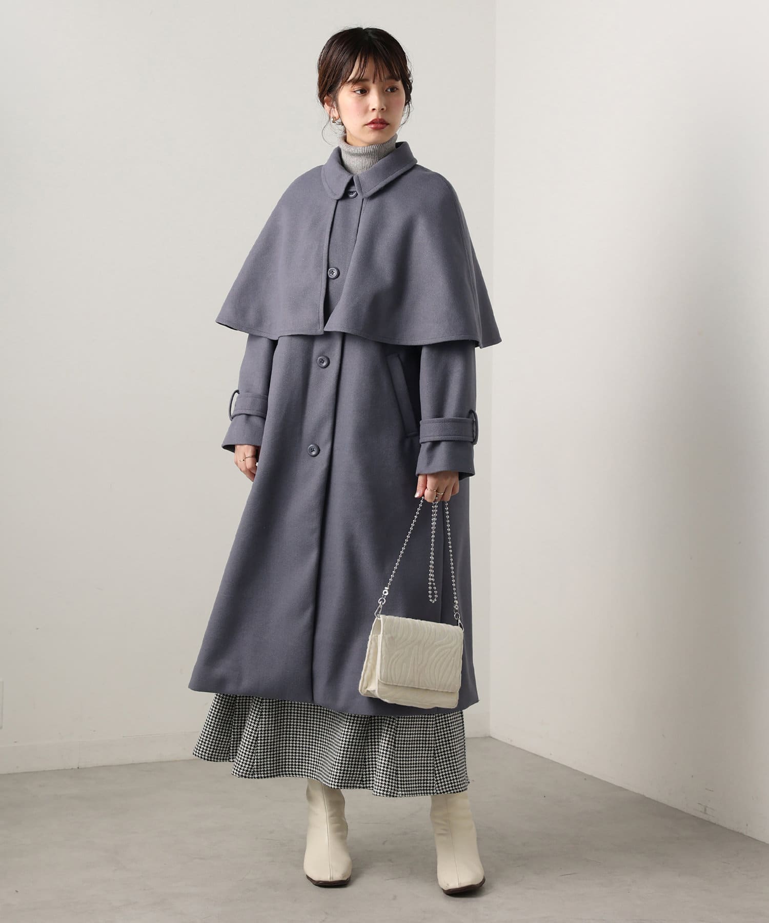 ケープは取り外し可能なため、シンプルなステンカラーコートとしても◎