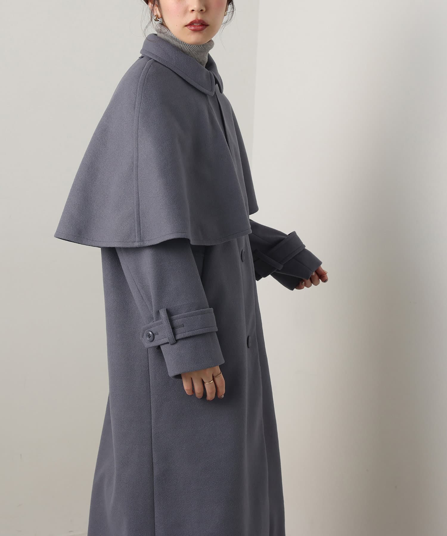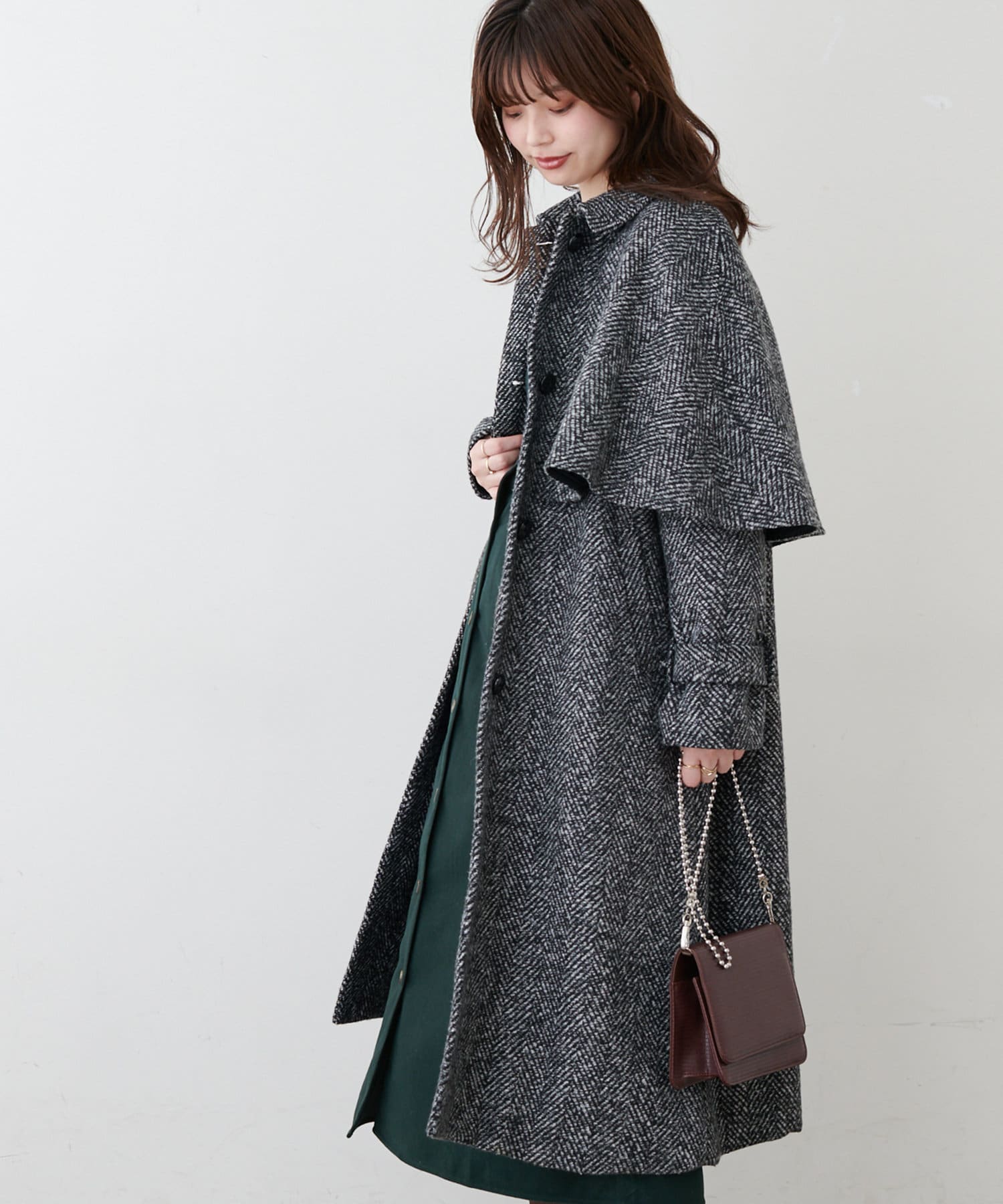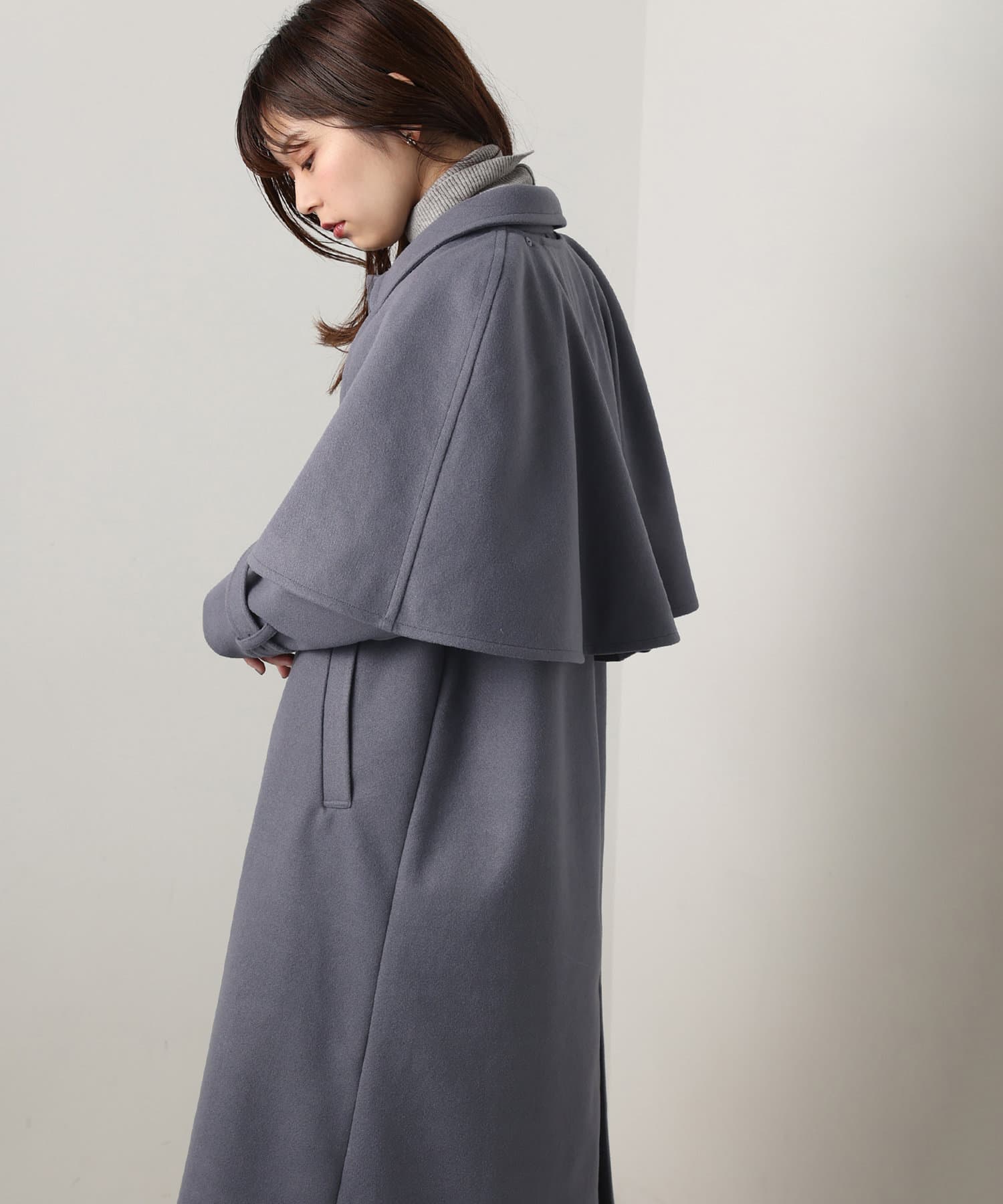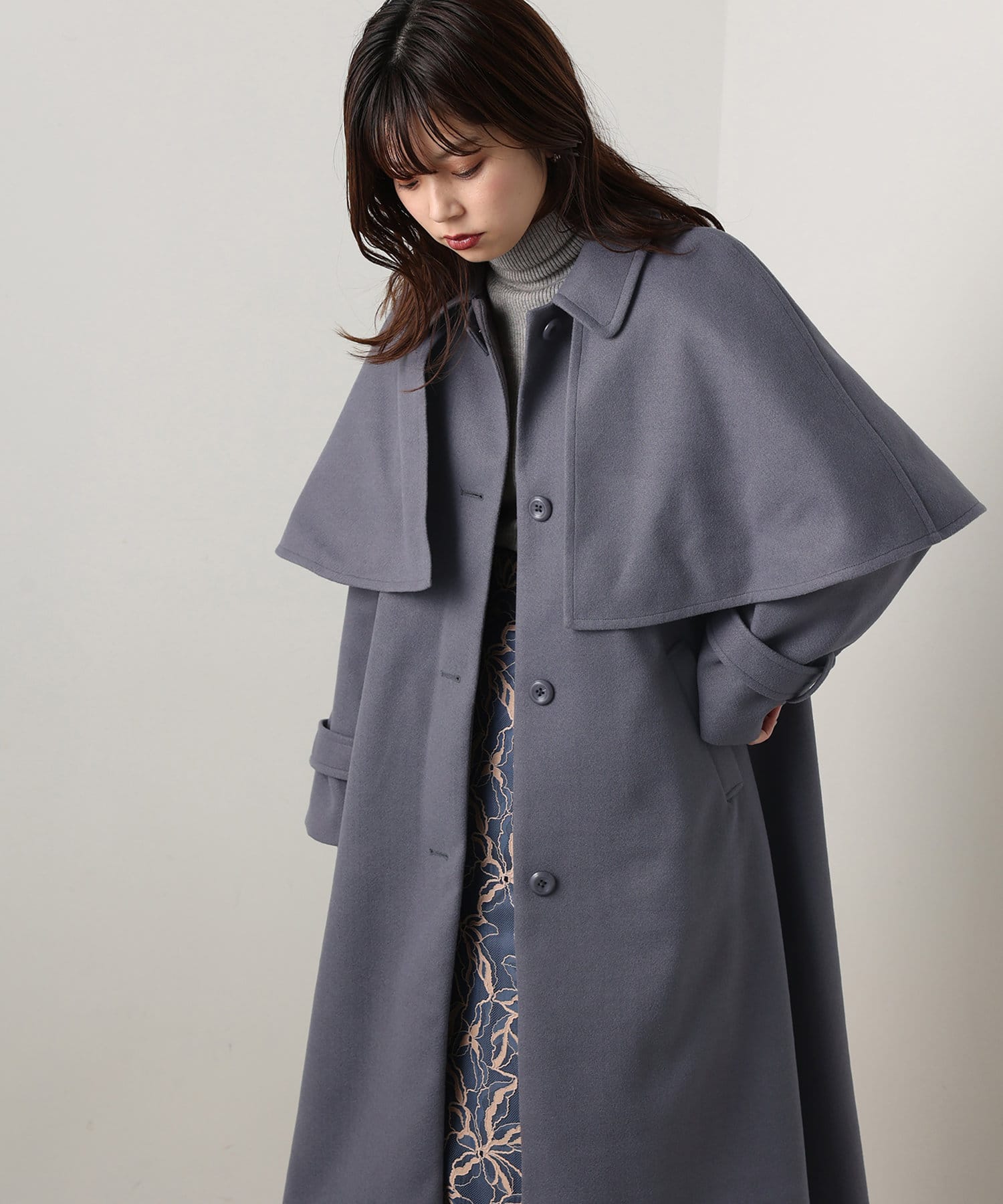 トレンドのビックカラーのようなケープ付きデザインで今年らしさ溢れるコート。