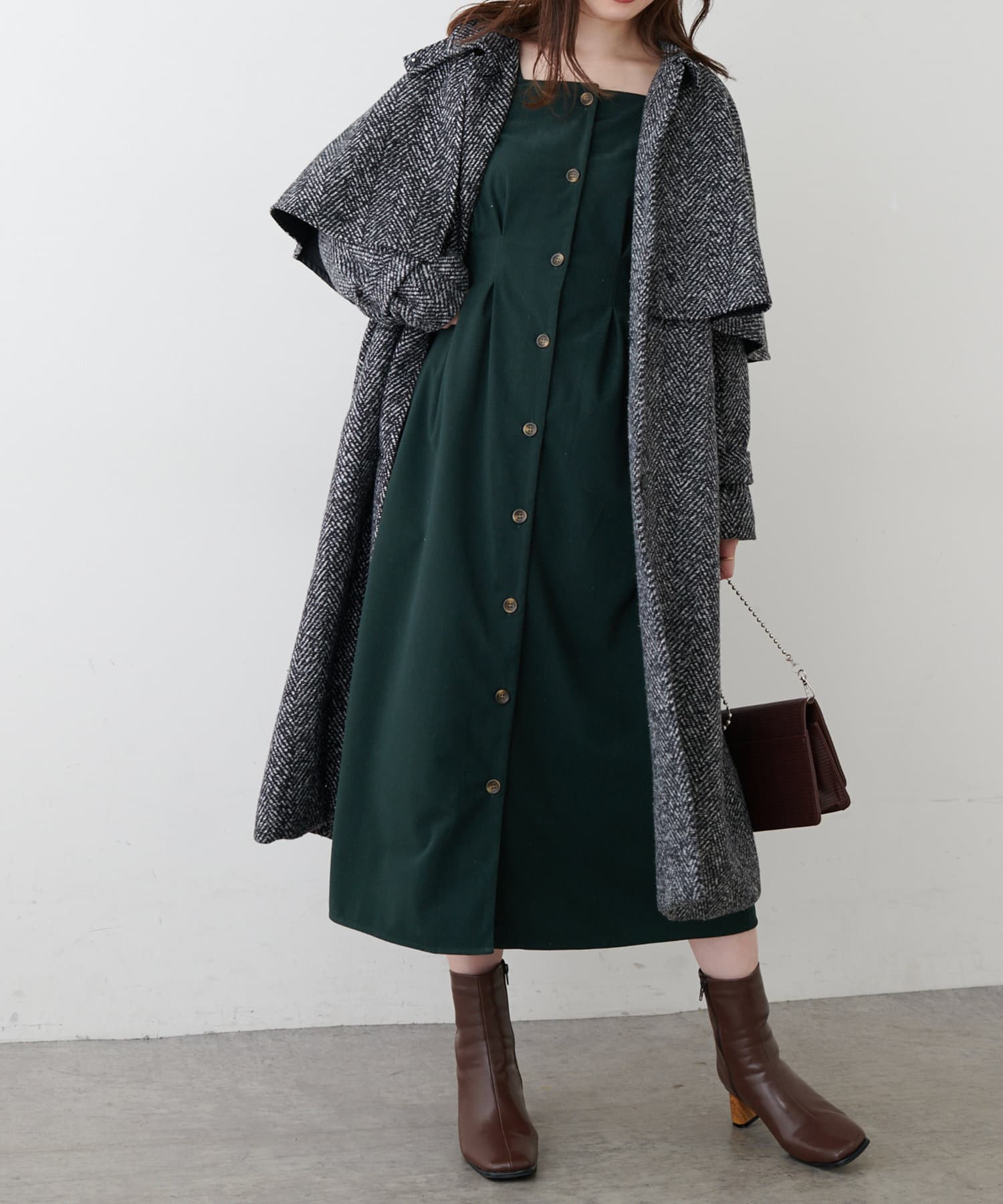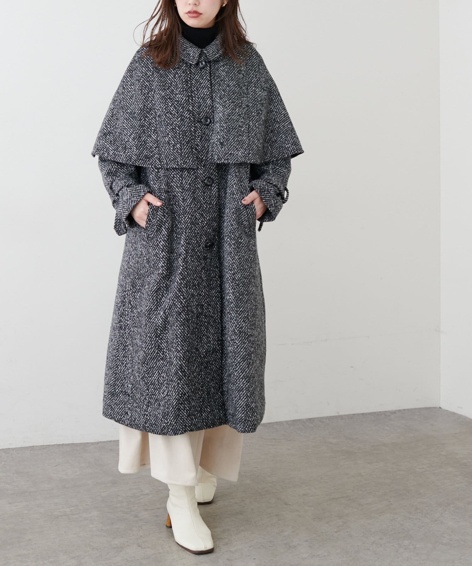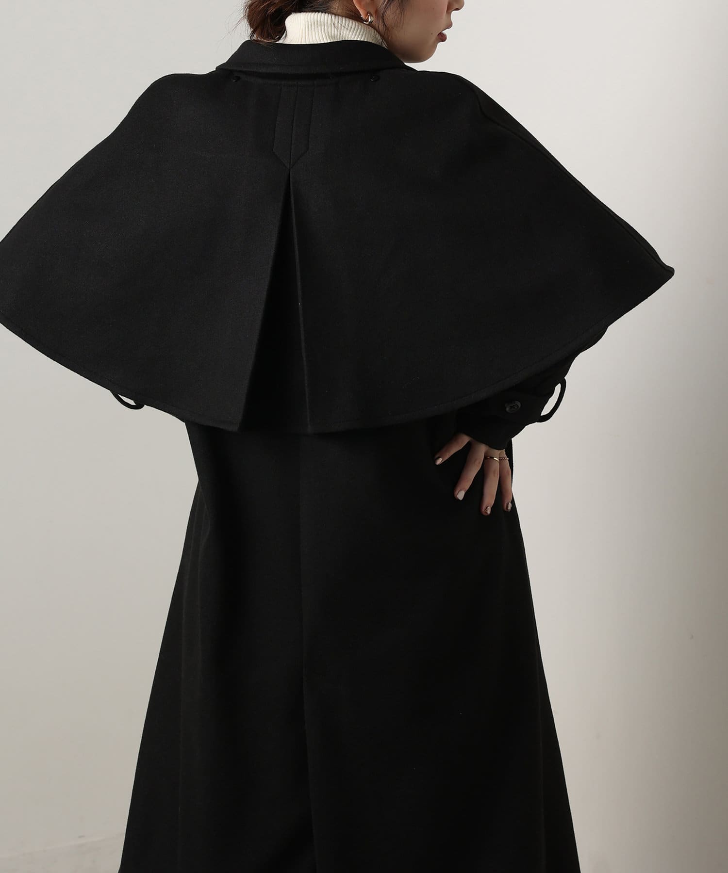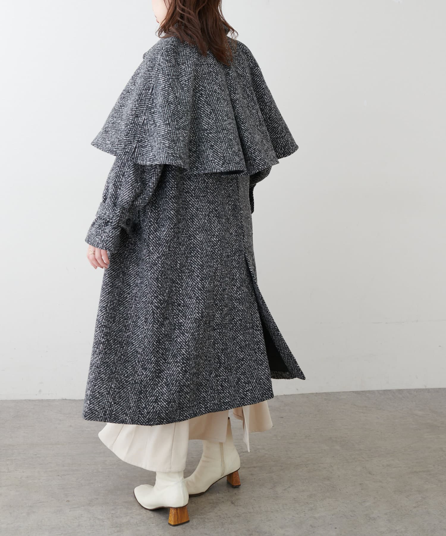 トレンドのビックカラーのようなケープ付きデザインで今年らしさ溢れるコート。
