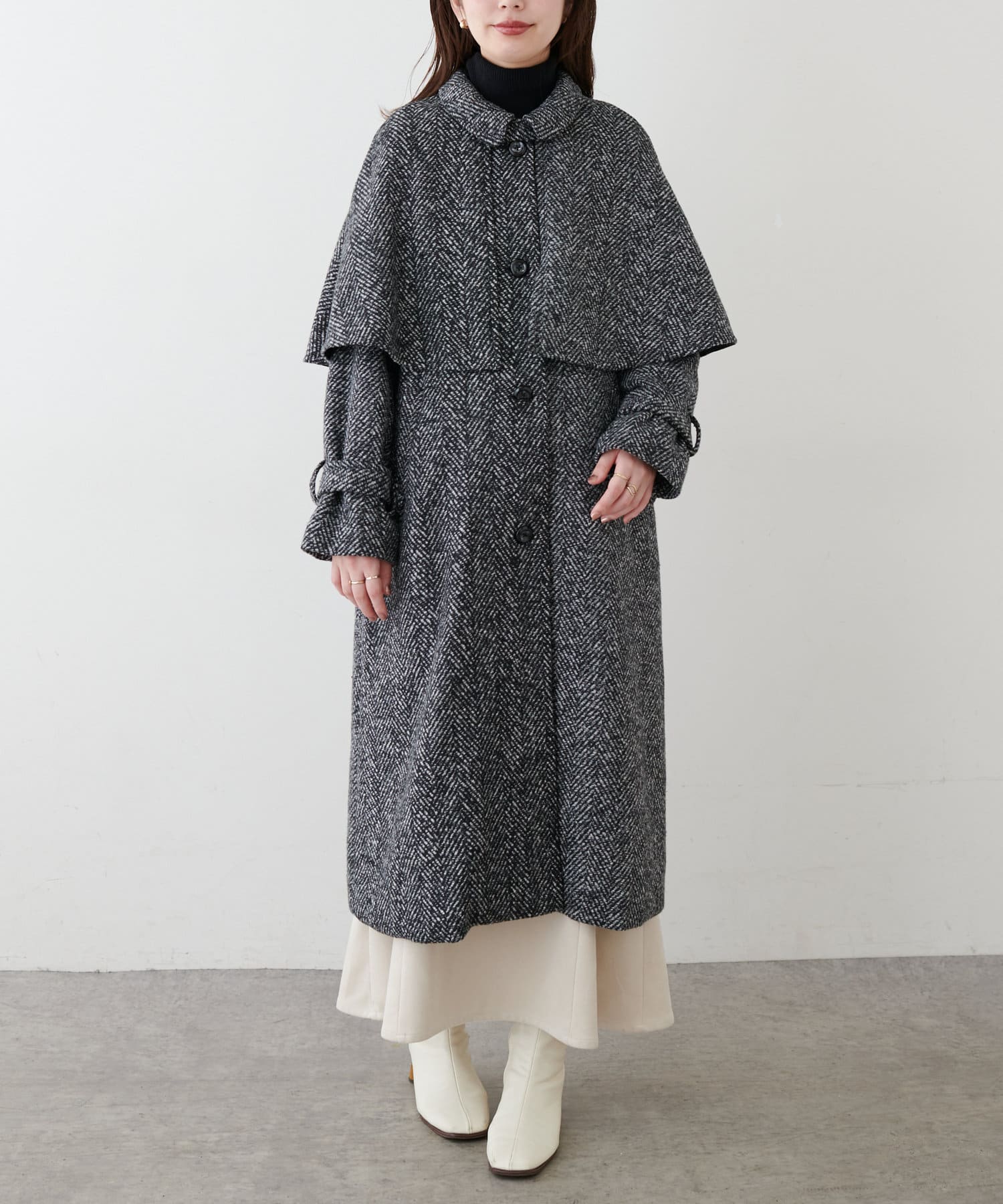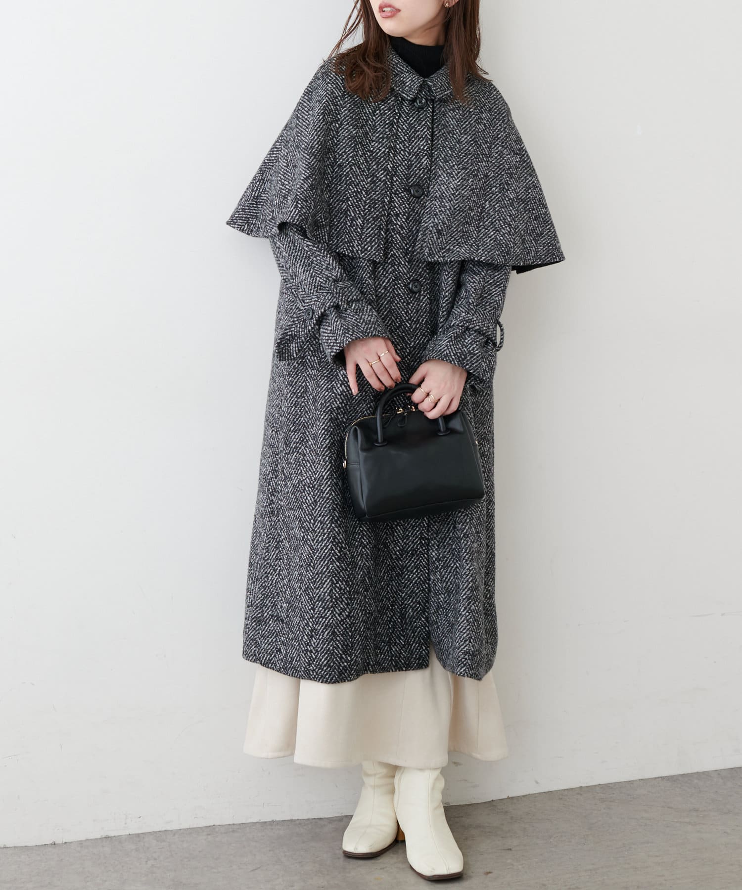 ケープをつけたまま着用すれば、一枚着るだけでスタイリングがワンランクアップします。