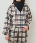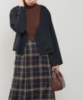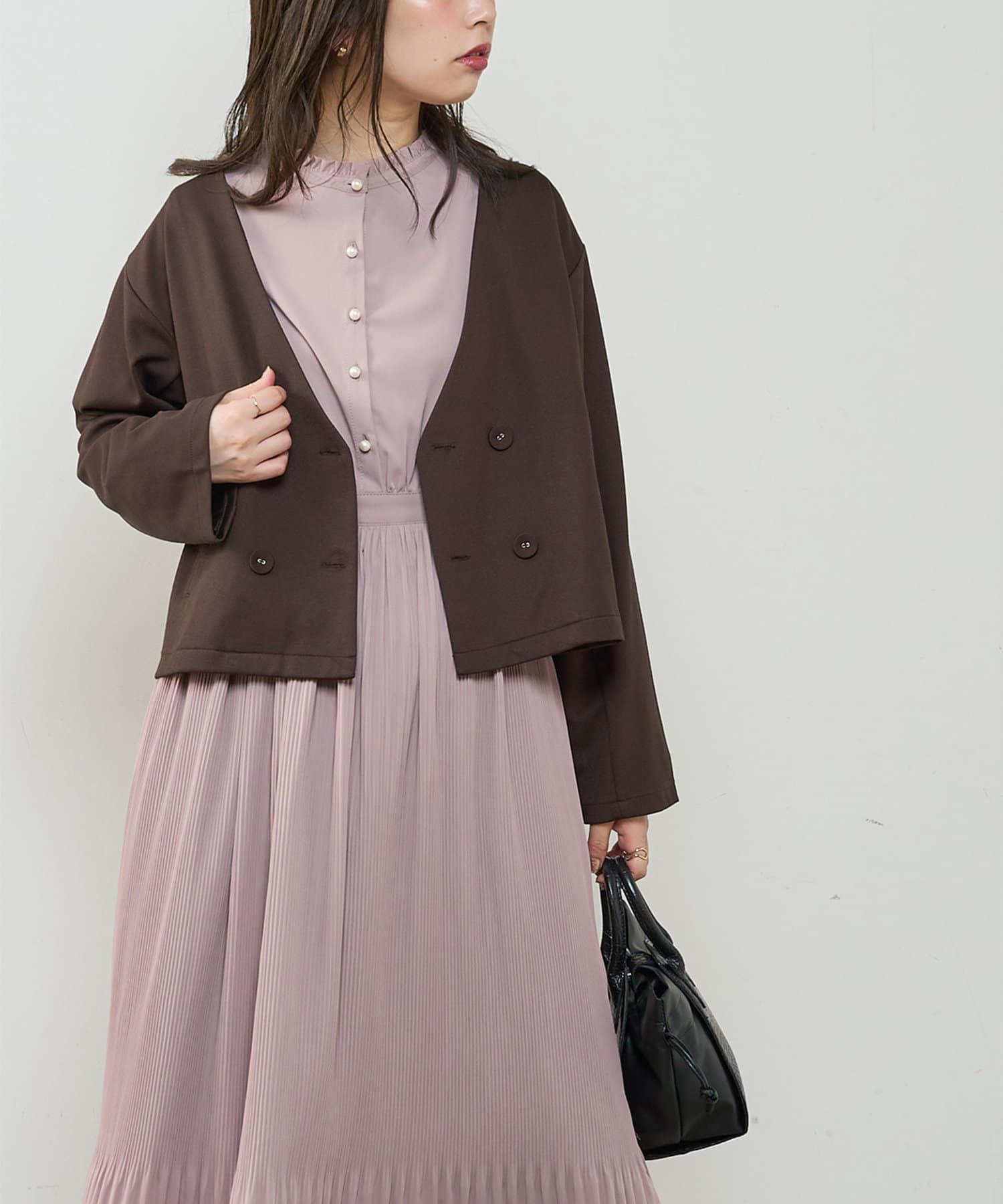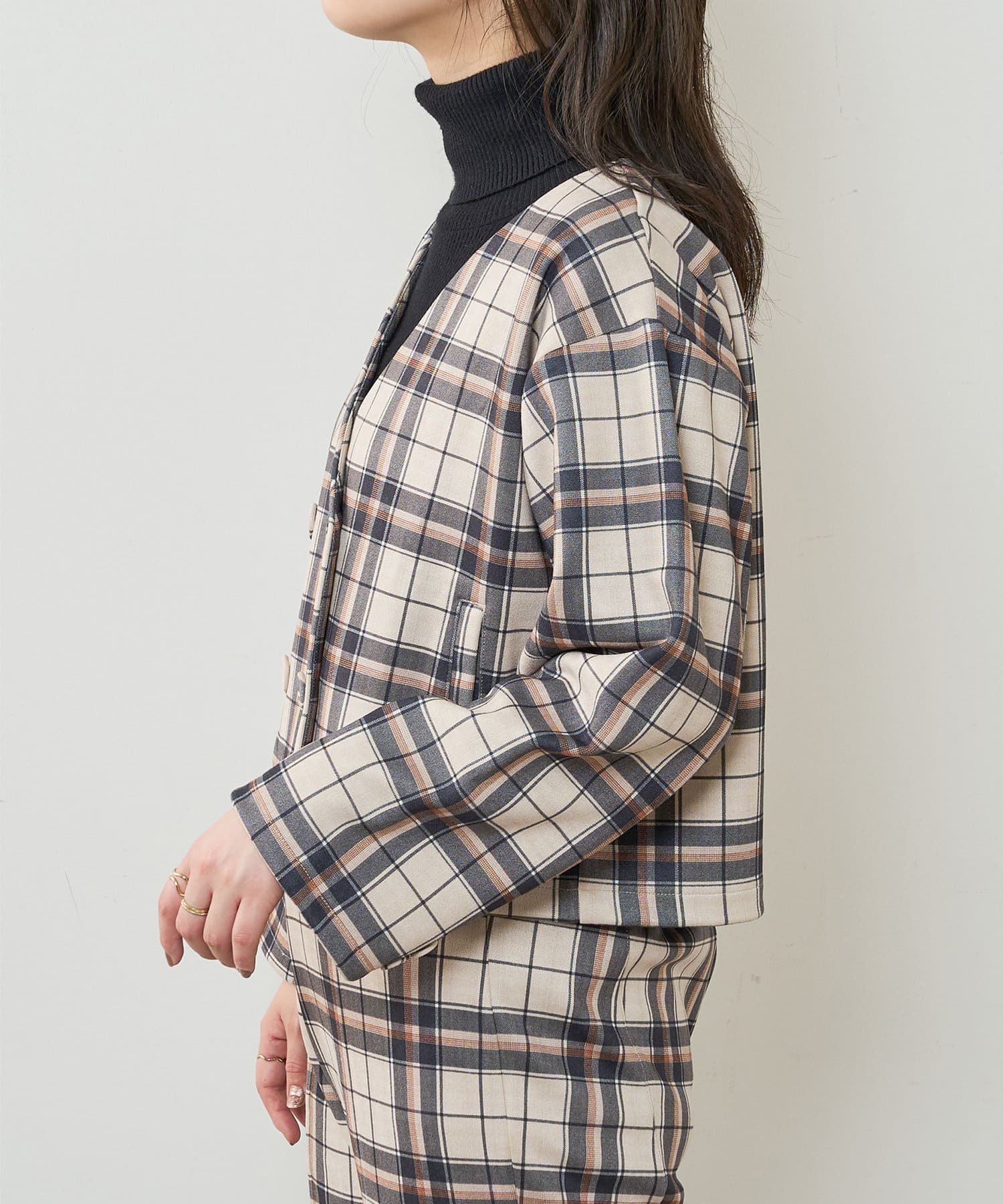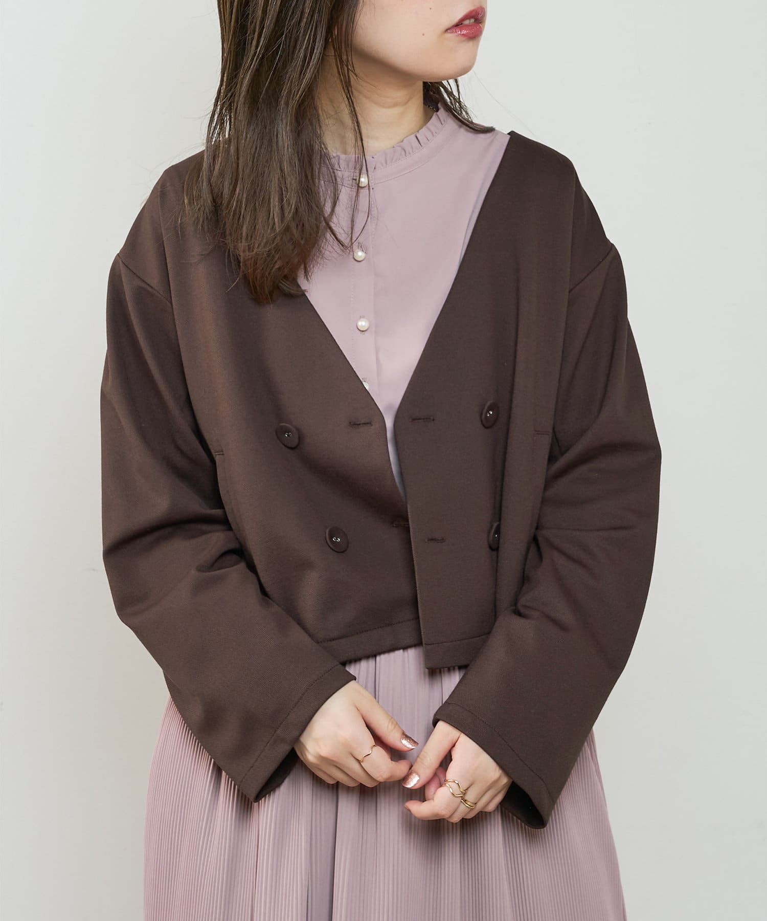 ショート丈に仕上げ、ノーカラーデザインがコーデの幅を広げてくれる1品。