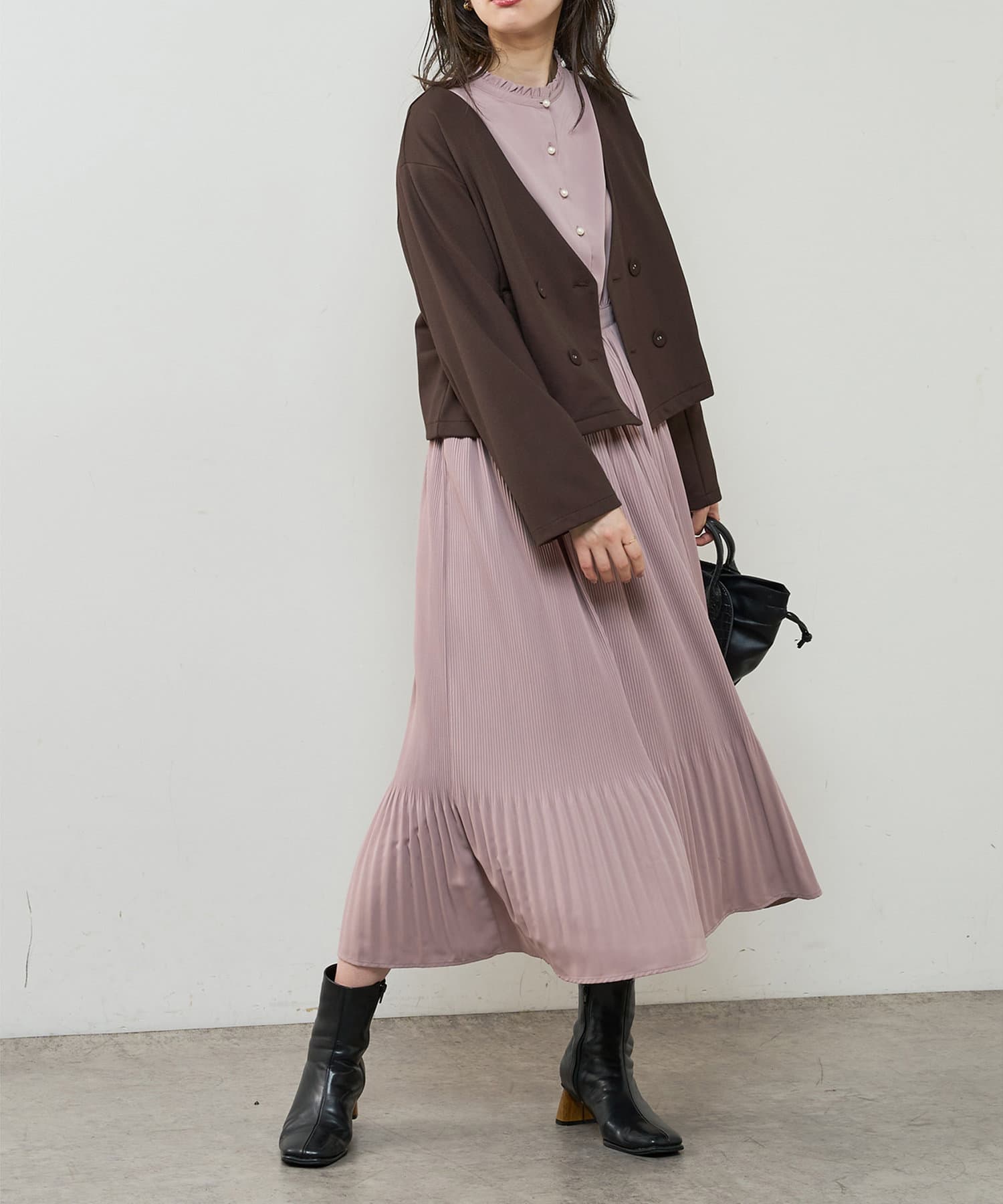 ワンピースやハイウエストシルエットのボトムスなどにも合わせやすい、