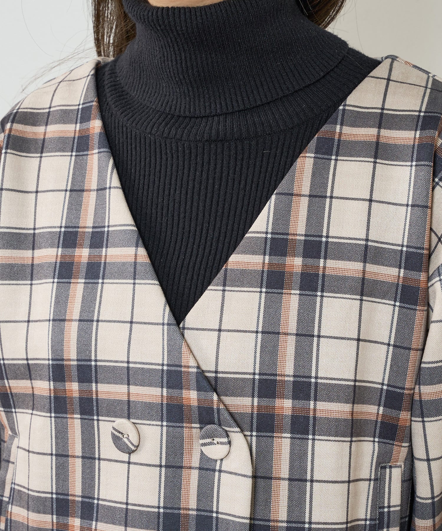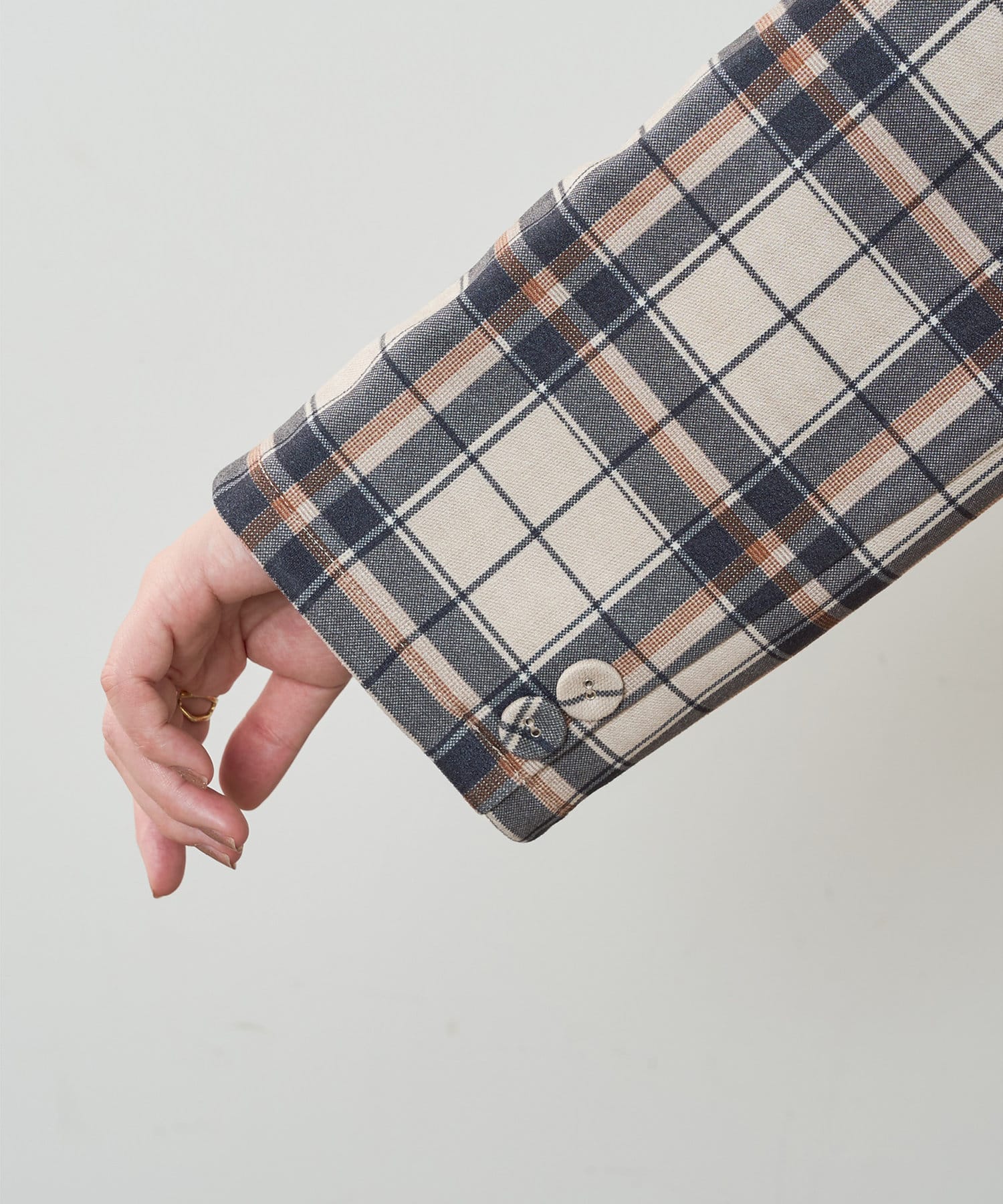 ダブル釦使いで、開けて着て頂くのはもちろん、釦を留めてトップスとしても
