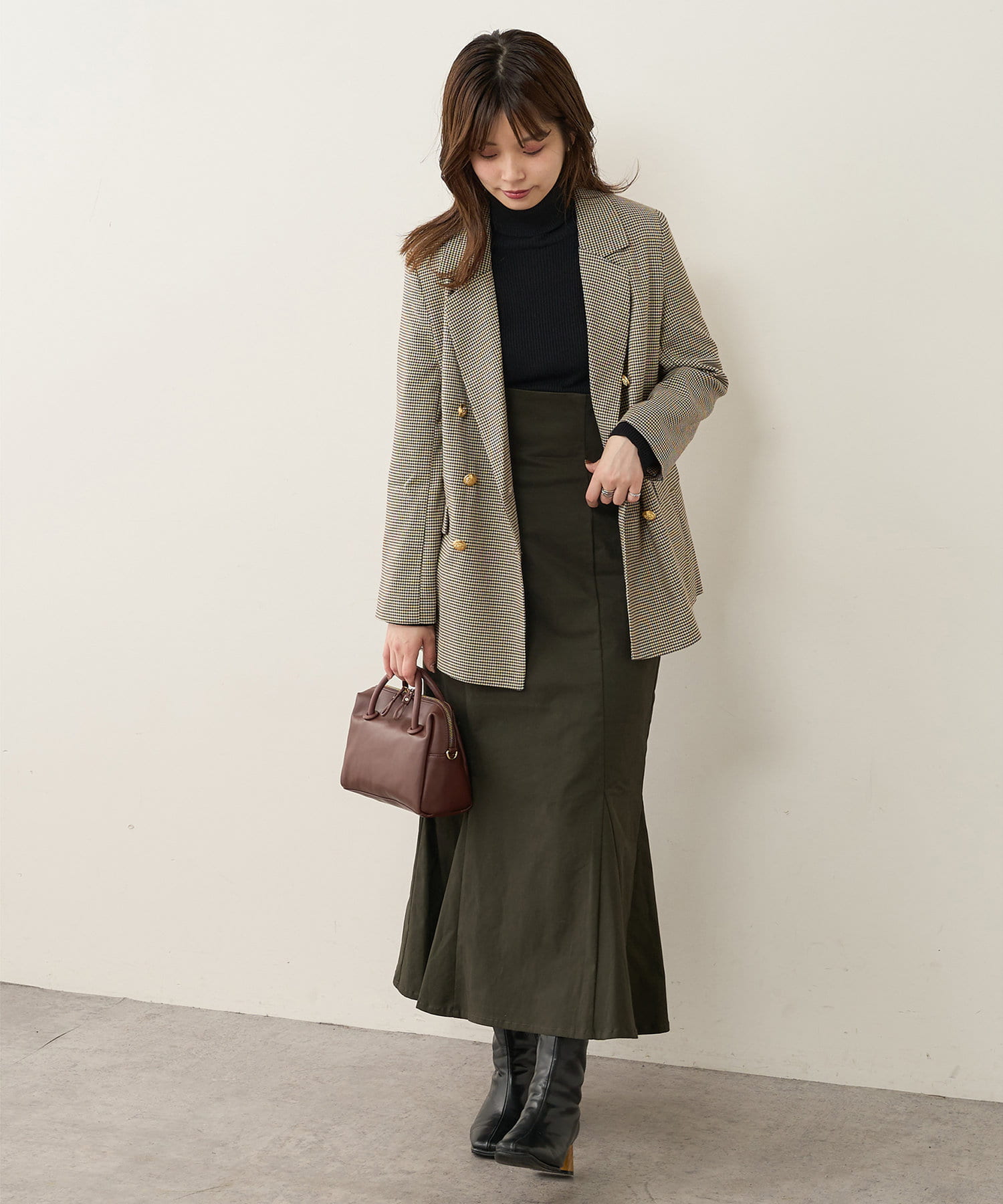 タイトなボトムスと合わせて、ジャケットとのバランスを
