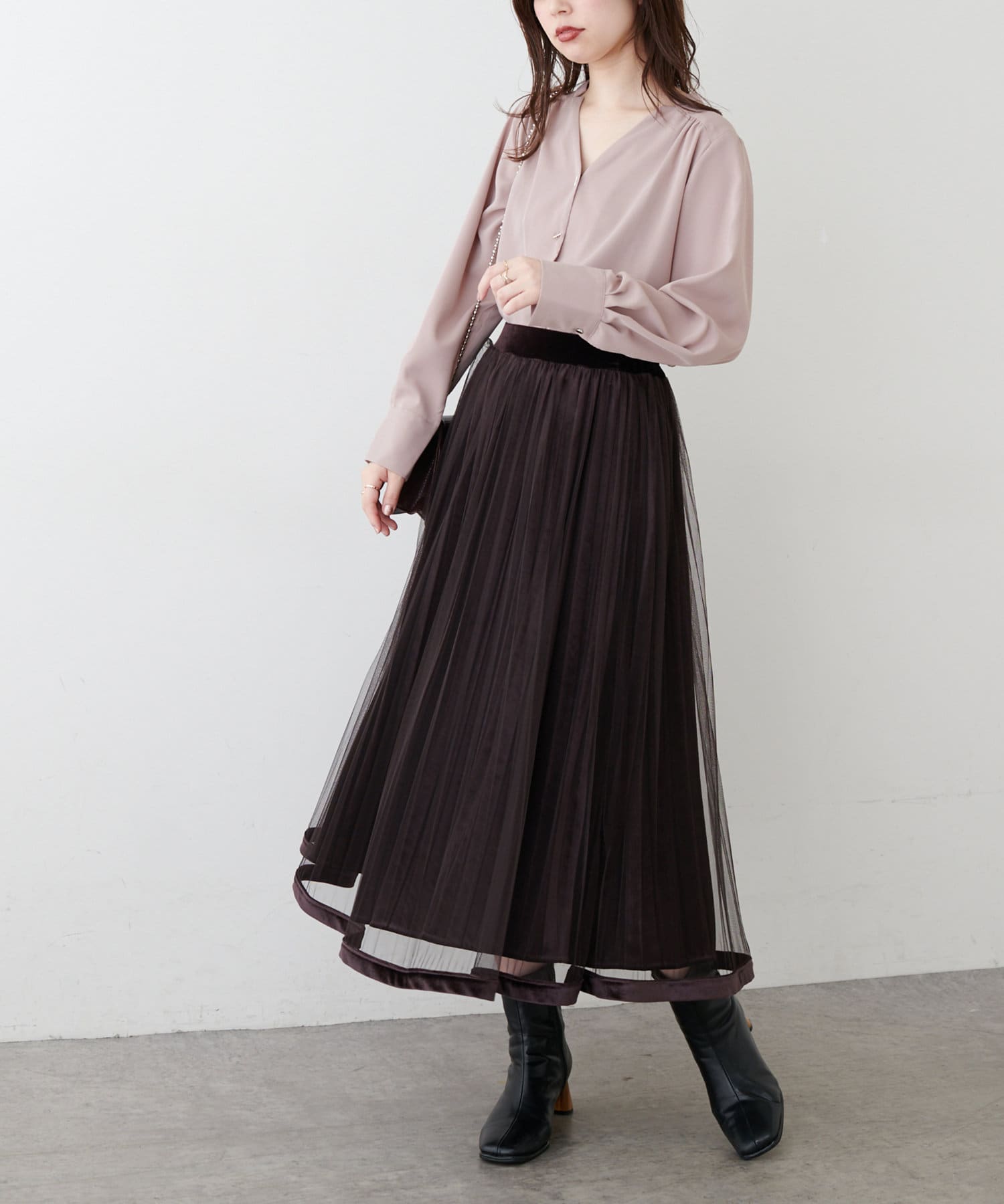 1枚でキレイめに着用するのはもちろん、ジャンスカやカーディガンのインナーとしてもオススメです。