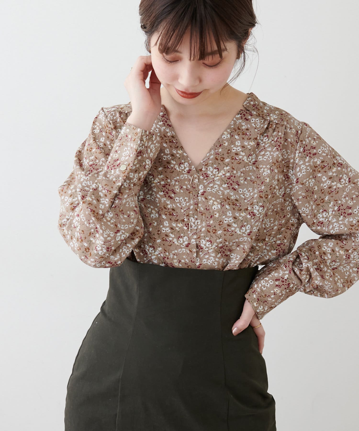 プチプラバー釦とろみブラウス
