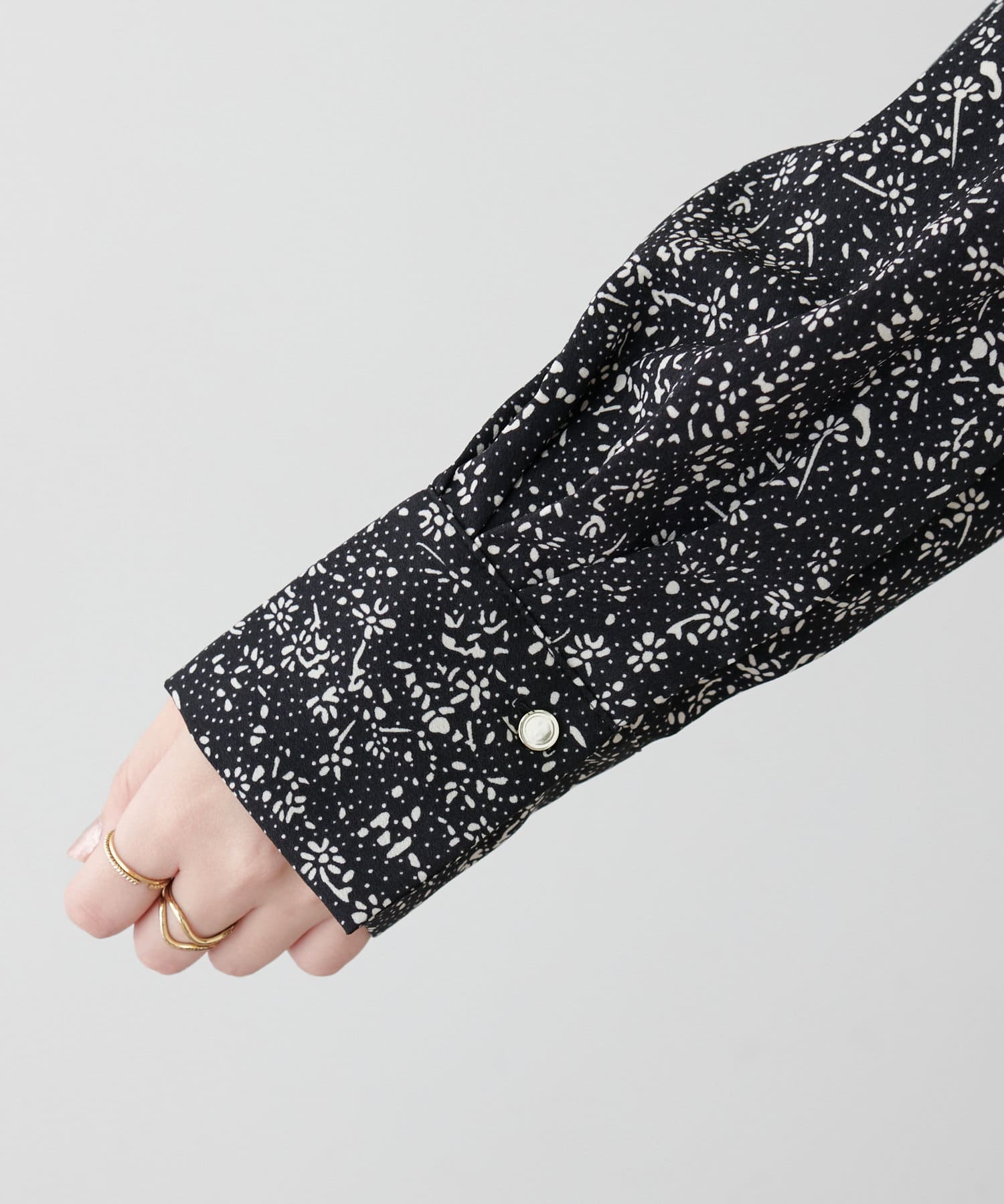 袖口の幅広めカフスが、シンプルな中にもちょっとしたアクセントに。