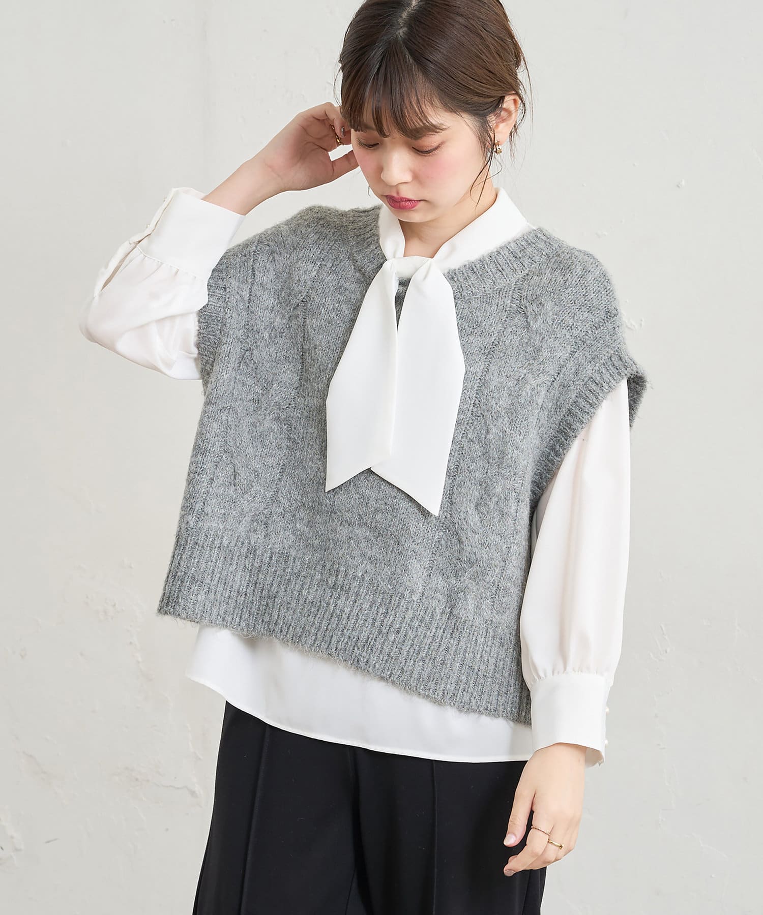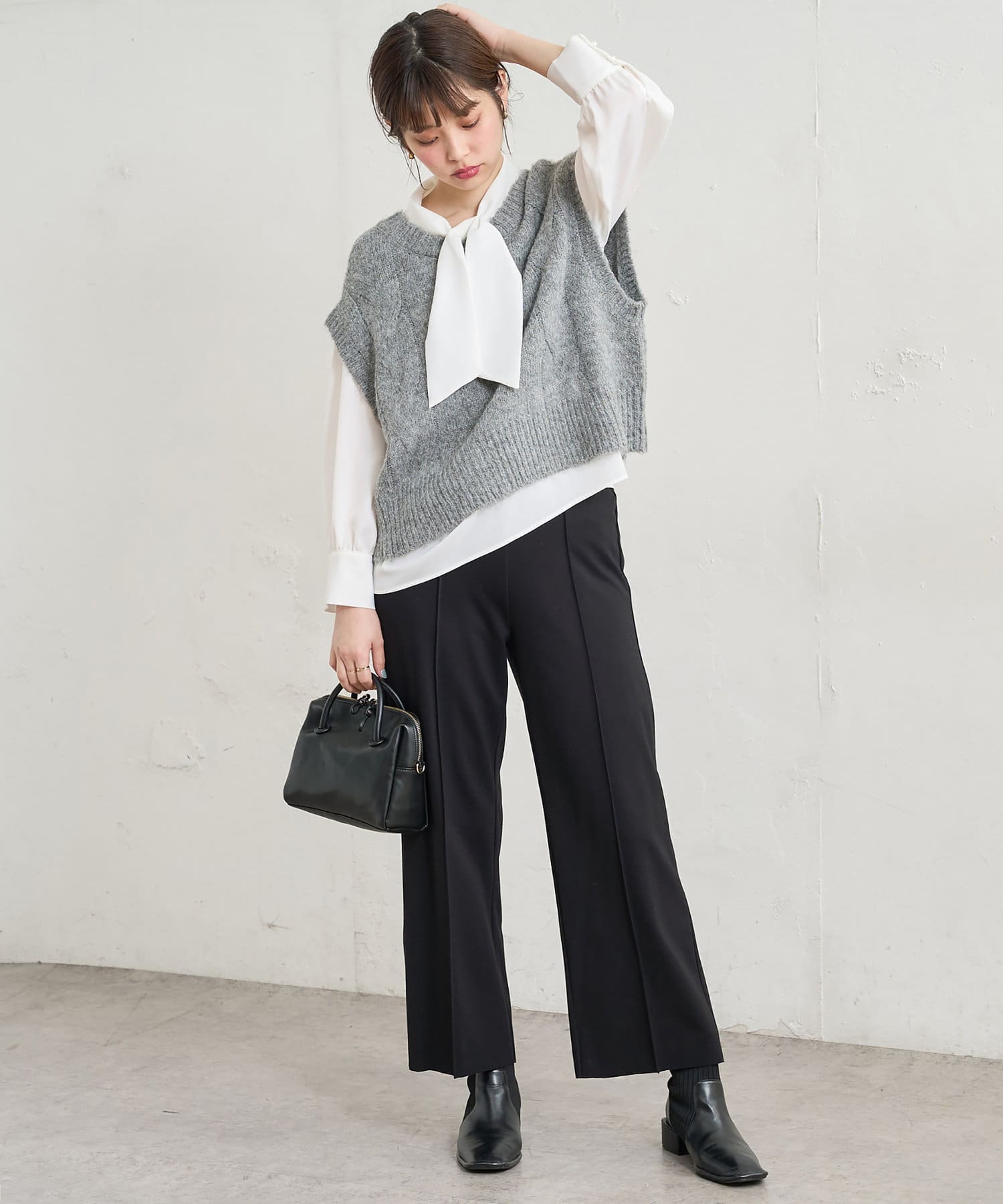 ニットベストやプルオーバーとレイヤードして、トレンド感のあるスタイリングも楽しめます。