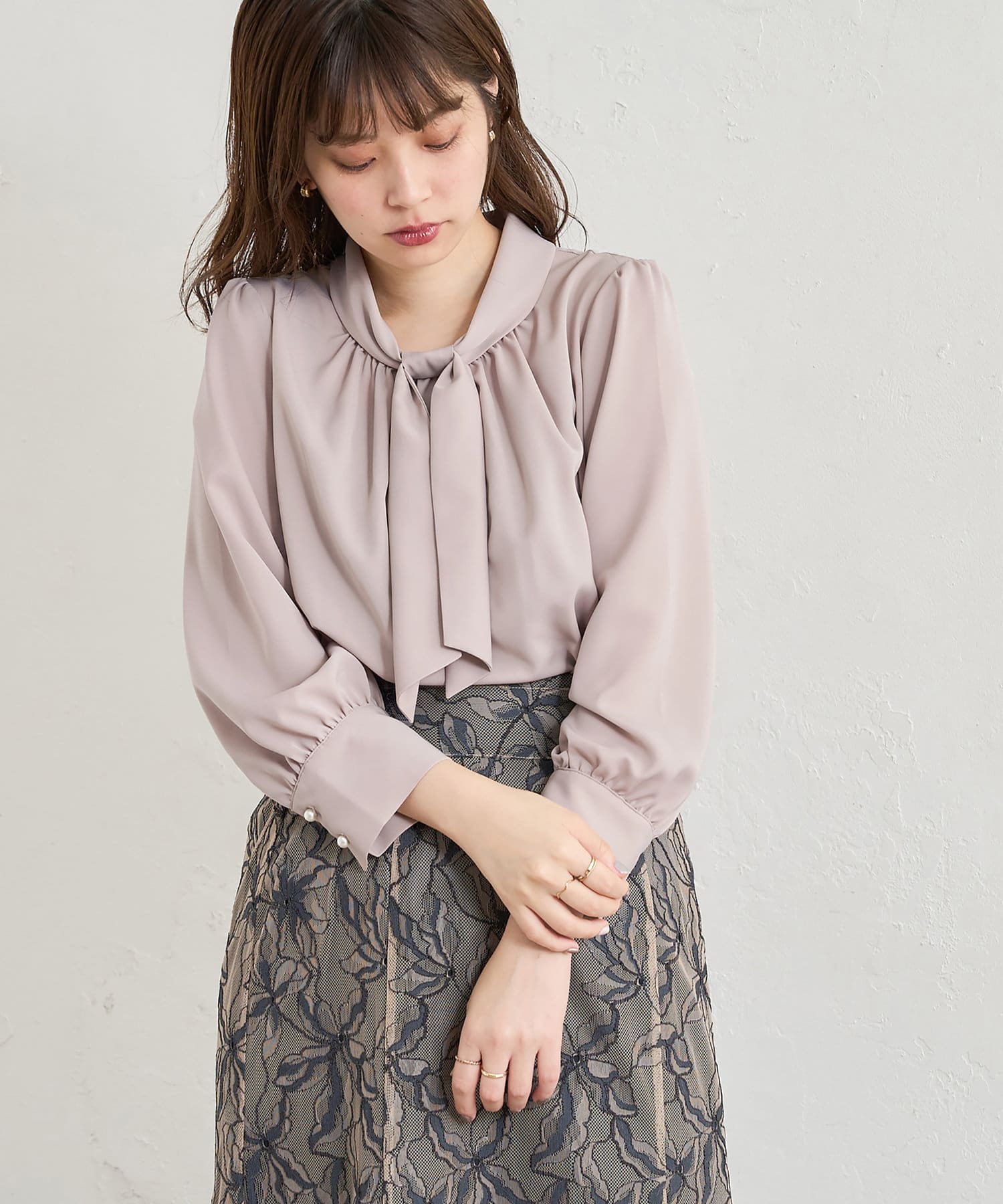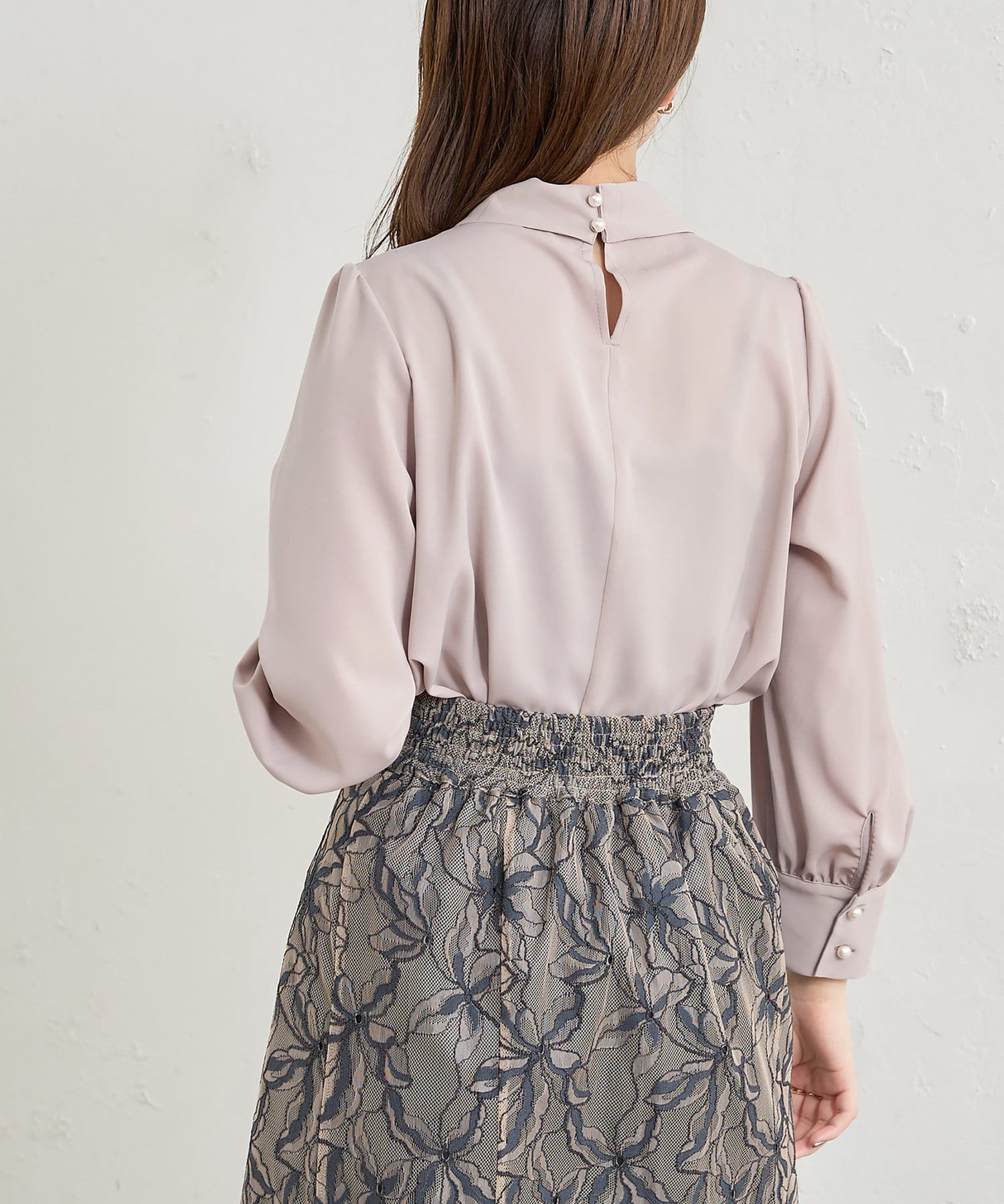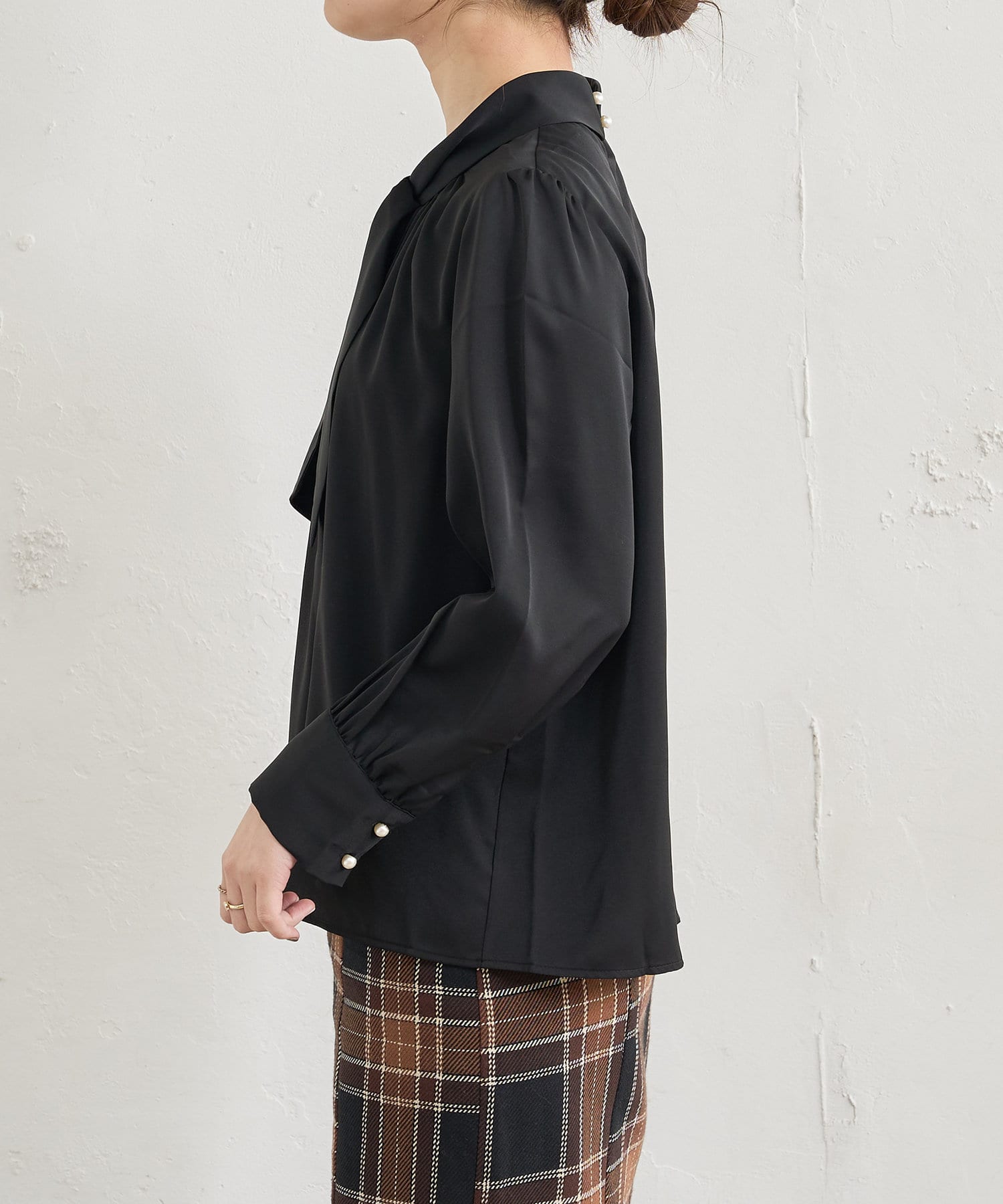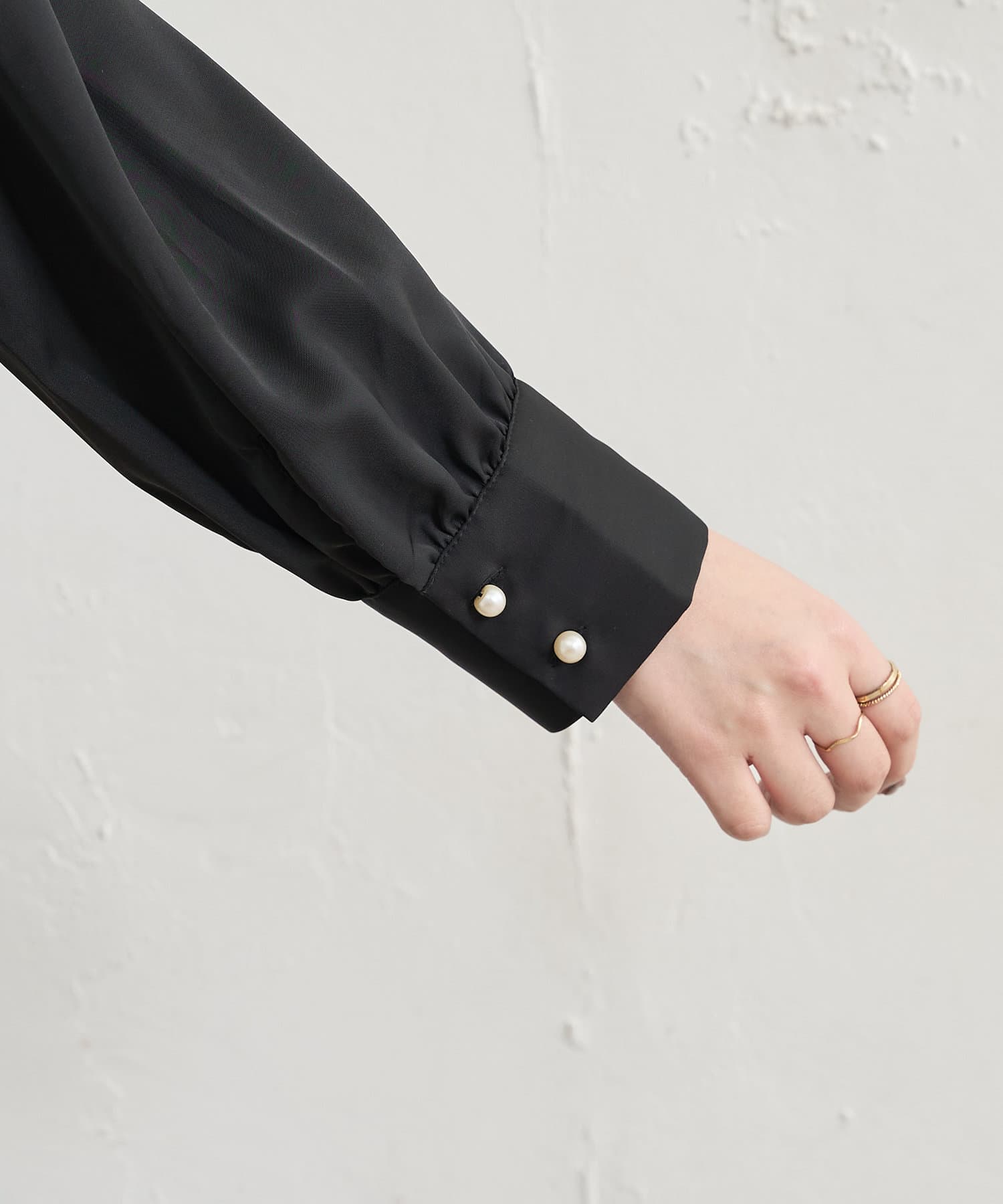 ネック部分と袖口に施したパールが大人上品な、デザイナー一押しの今季注目ブラウス。