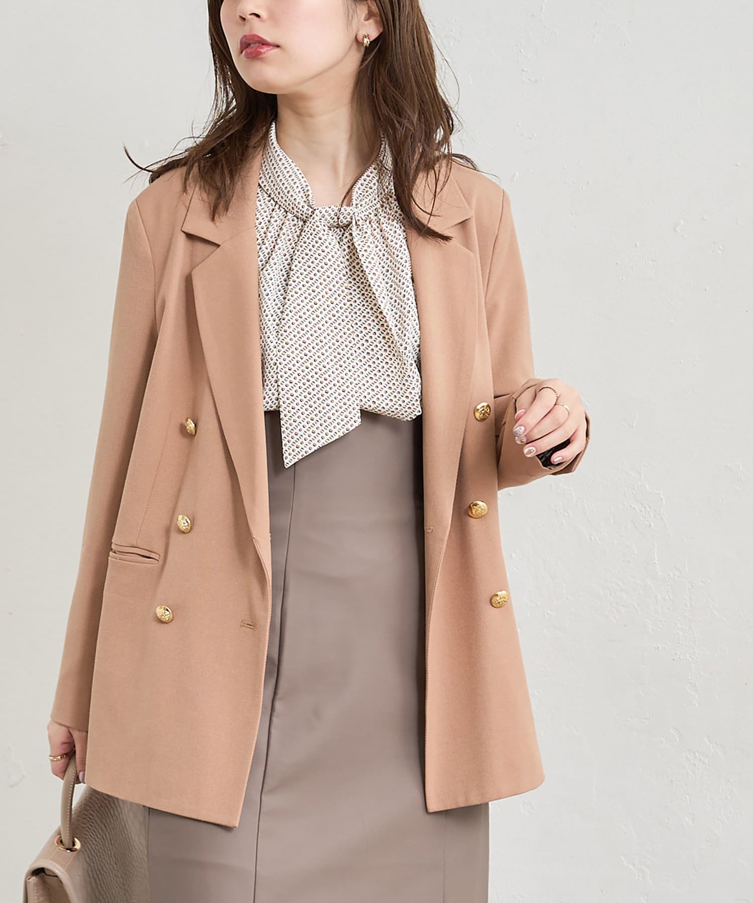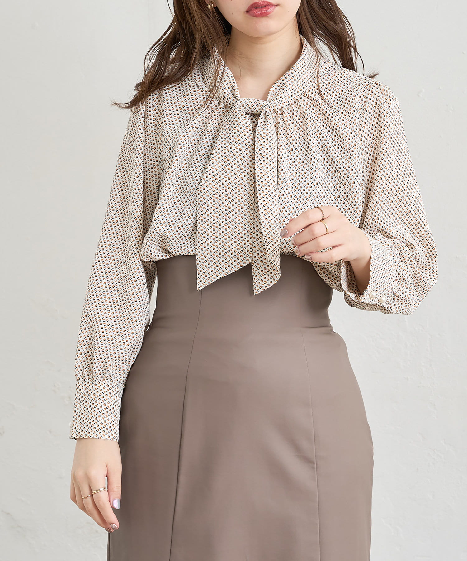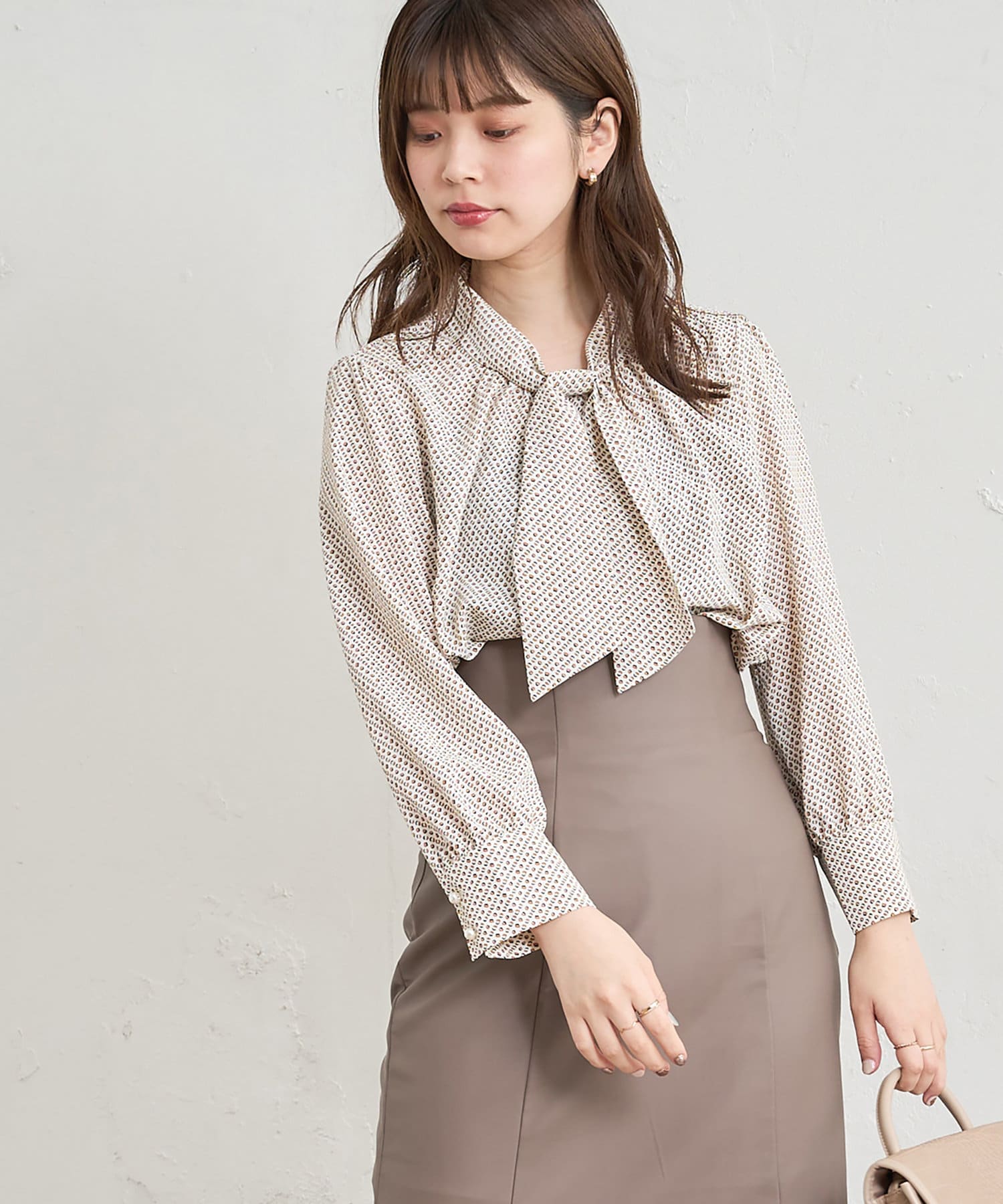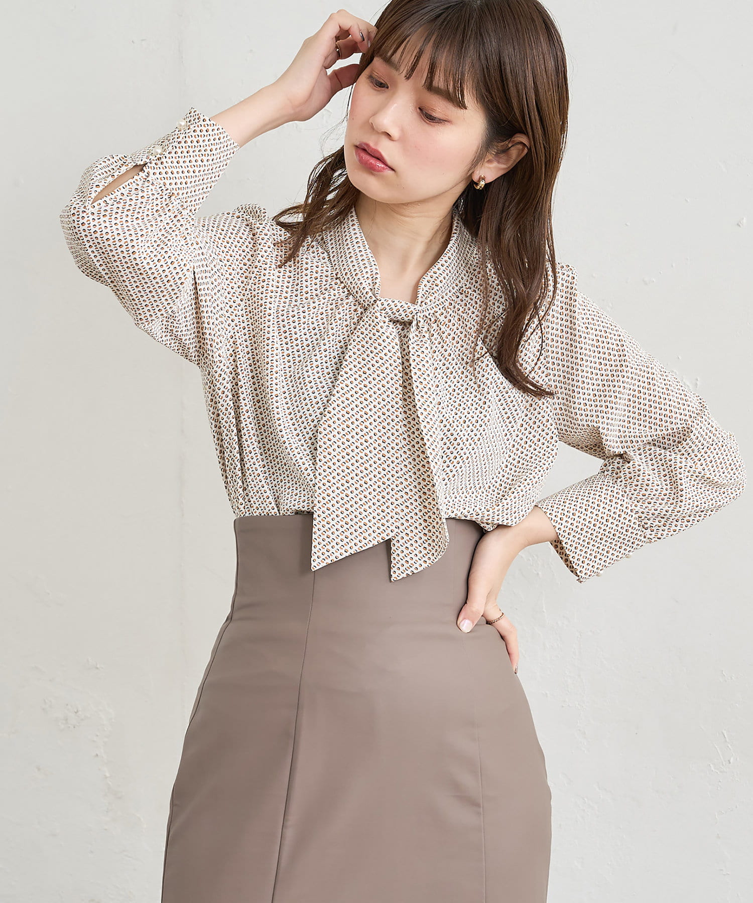 ネック部分と袖口に施したパールが大人上品な、デザイナー一押しの今季注目ブラウス。