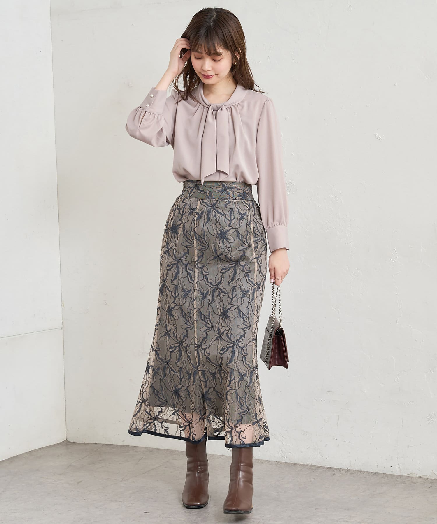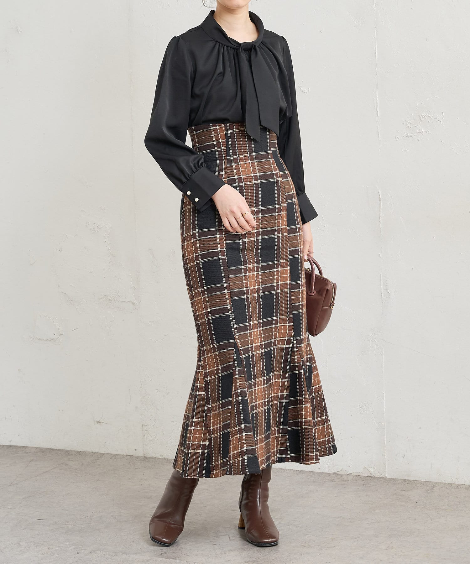 マーメイドシルエットやフレアラインのスカートにウエストインして頂くと、