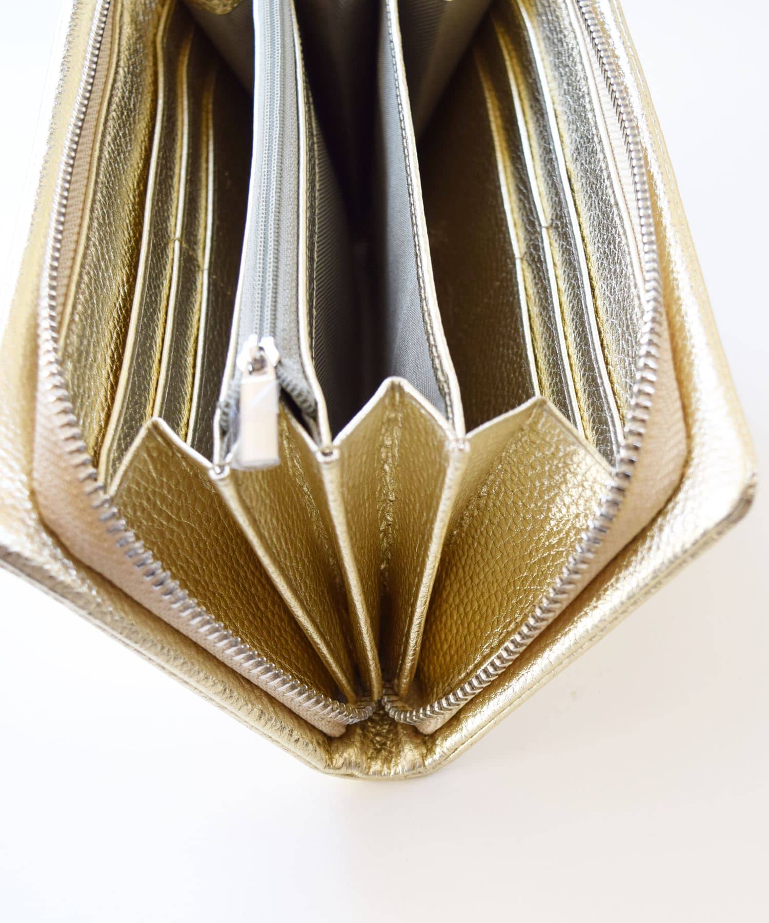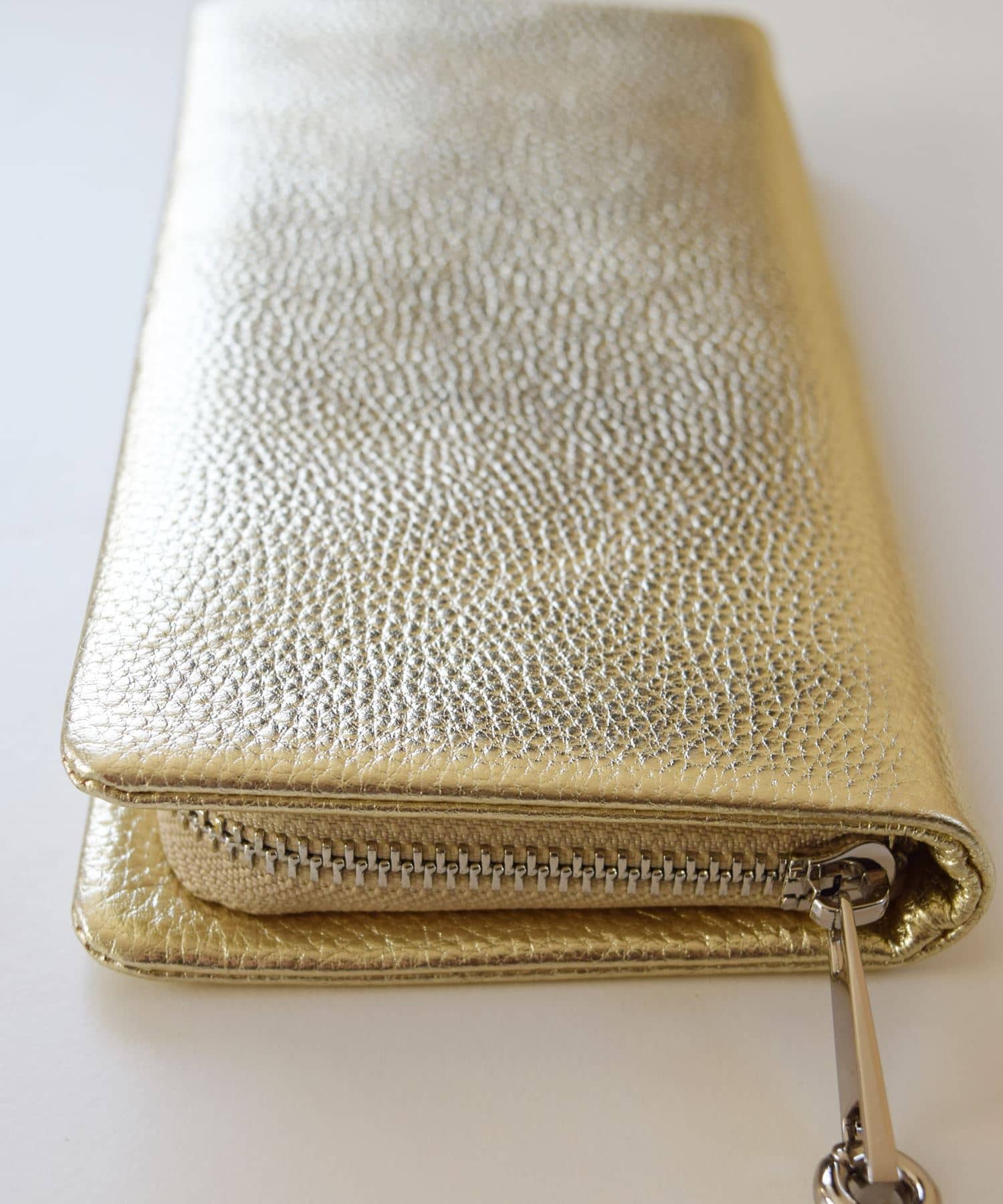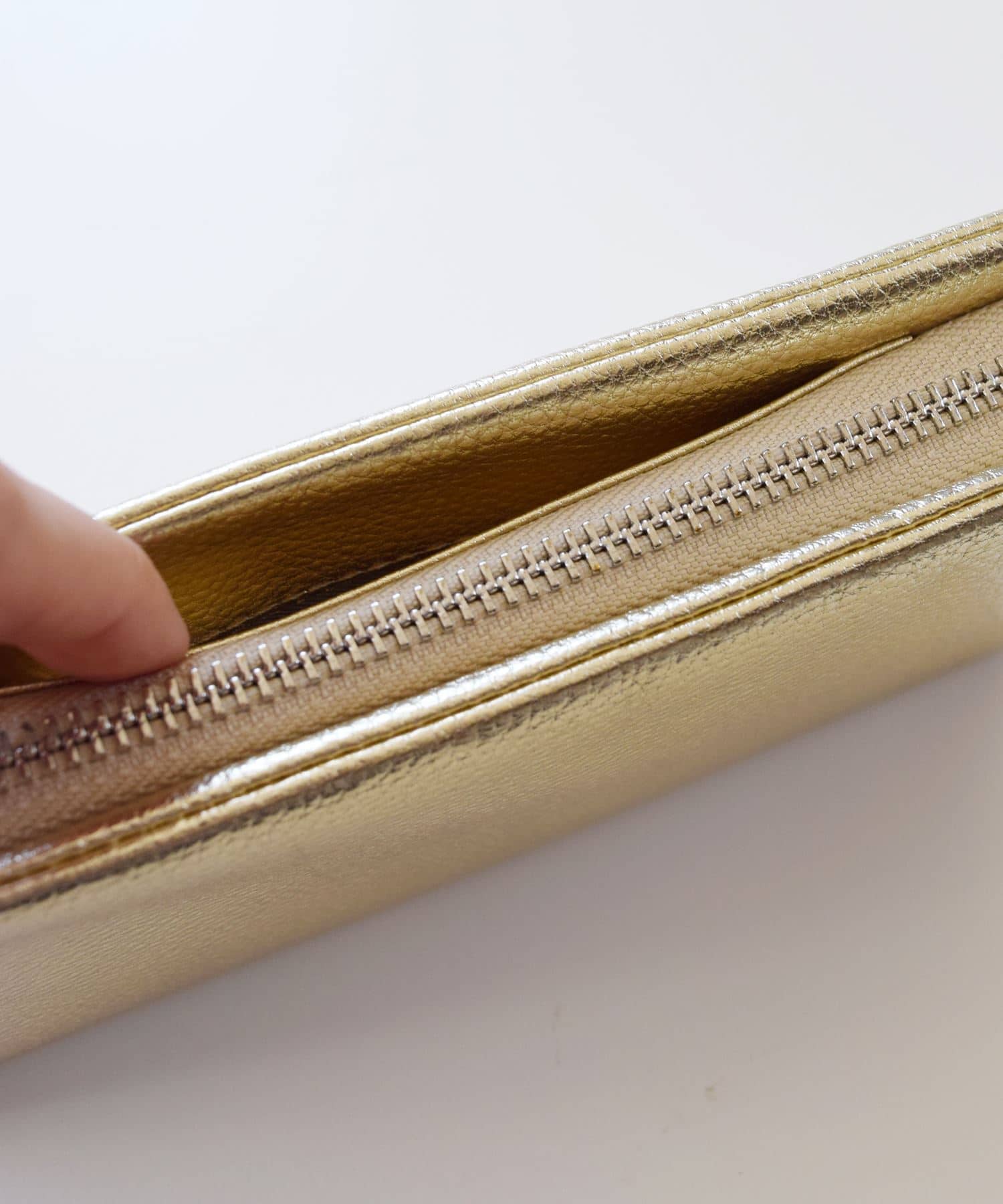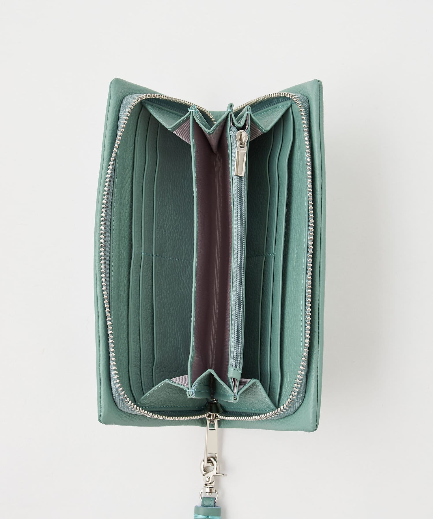 また、携帯電話を収めることもできるポケットがついており、お財布ひとつに貴重品をまとめられ、ランチタイムや旅行先でもその有難さを実感することでしょう!