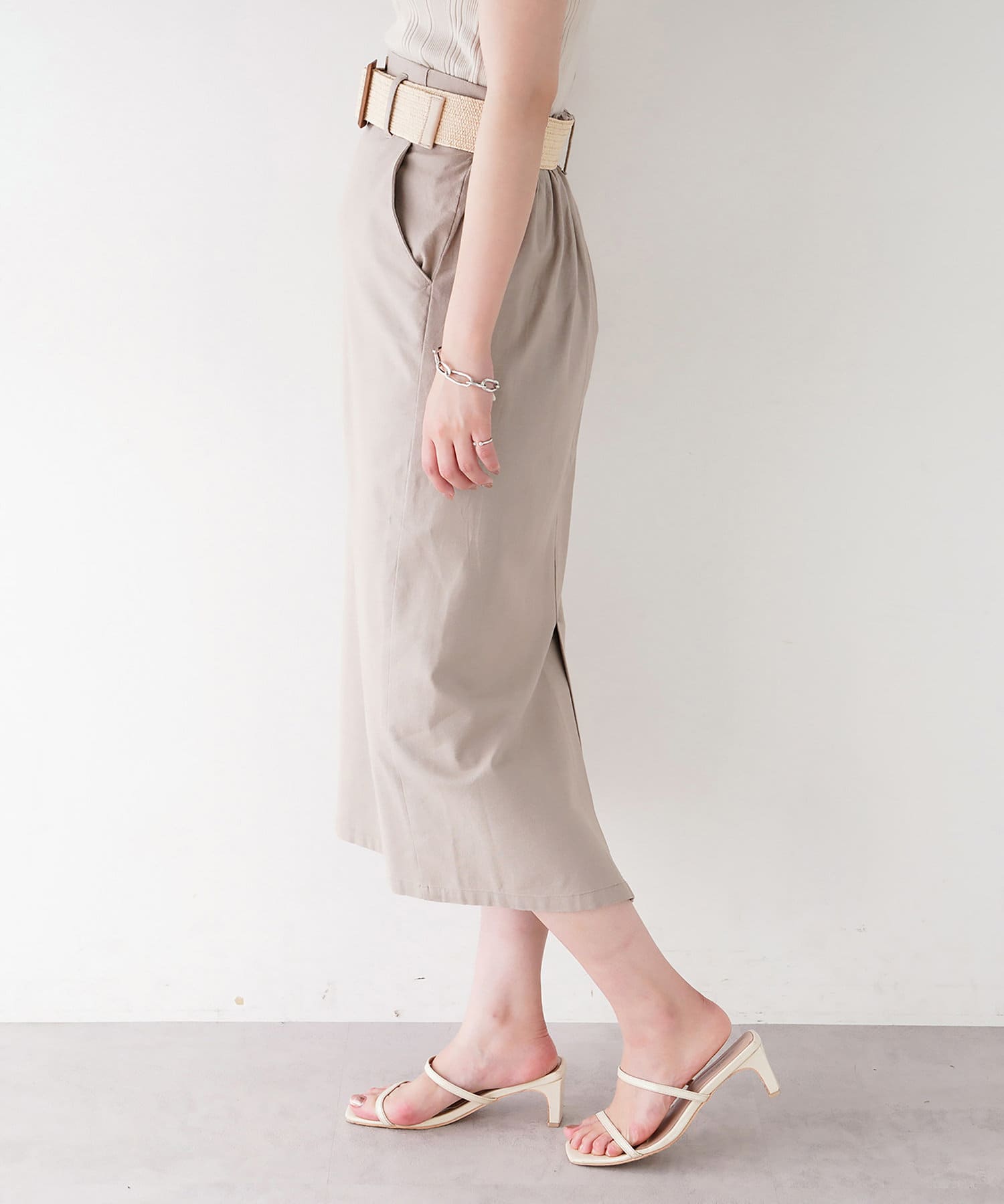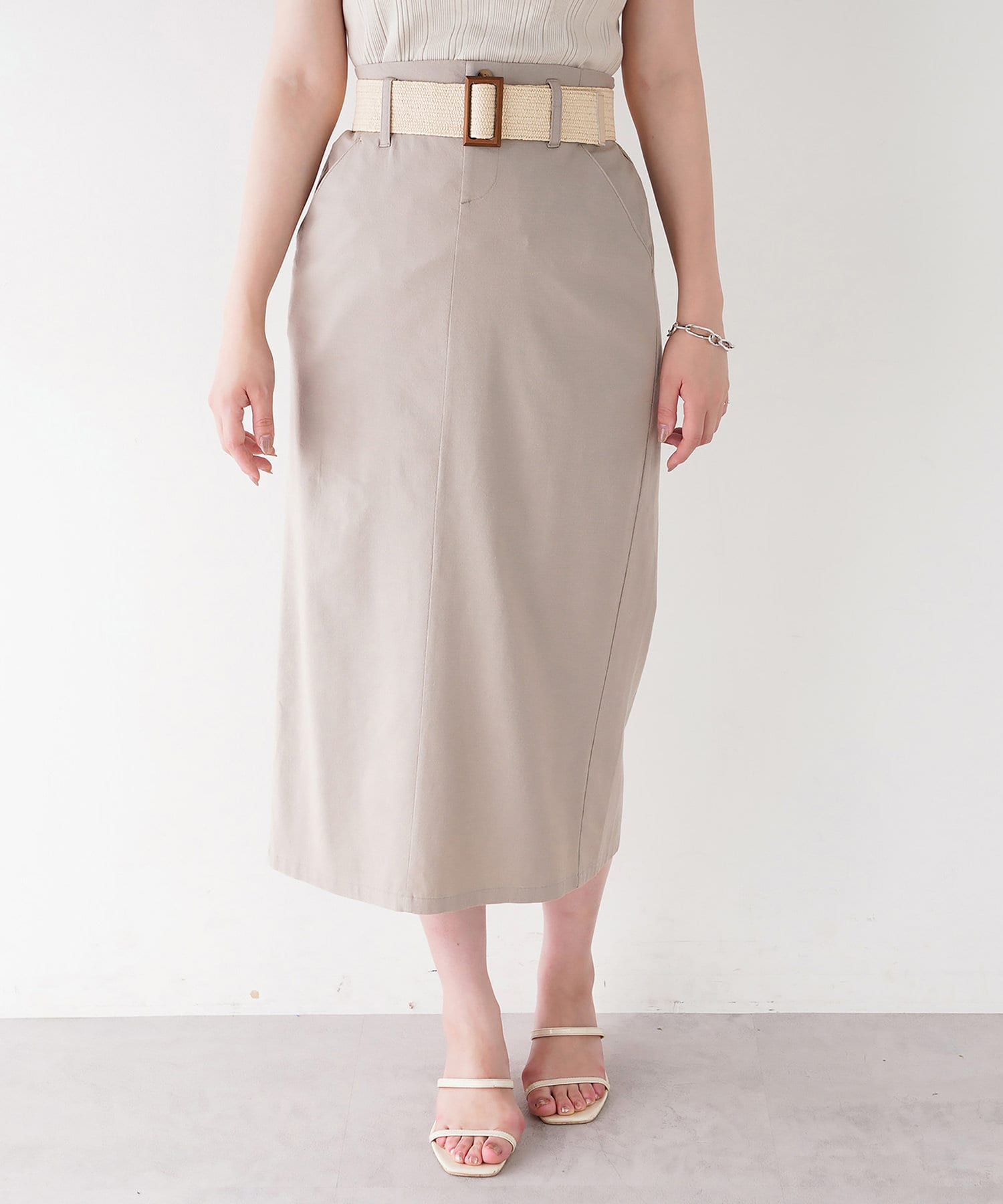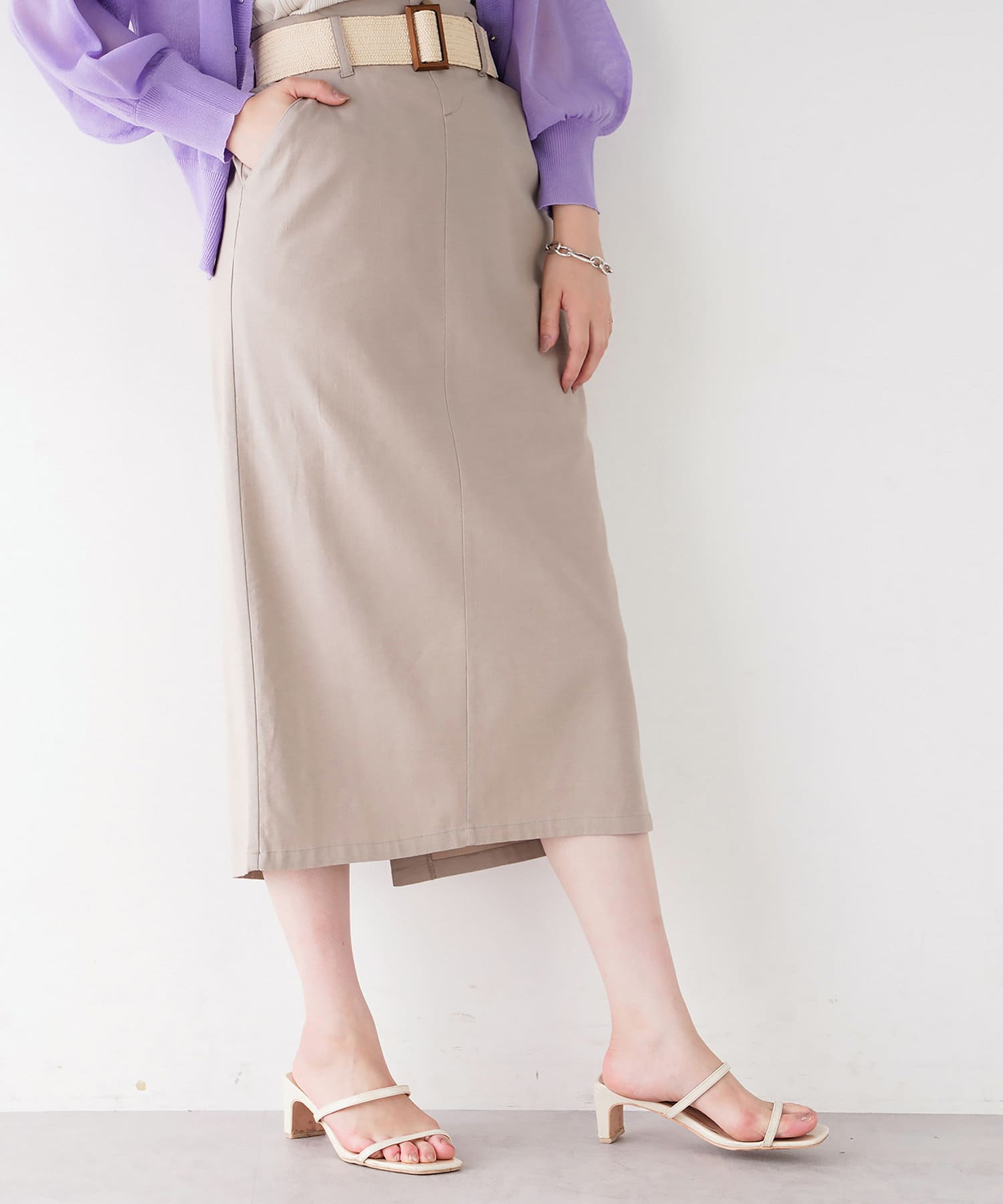 • natural couture(ナチュラルクチュール) ストレッチリネンベルト付タイトスカート