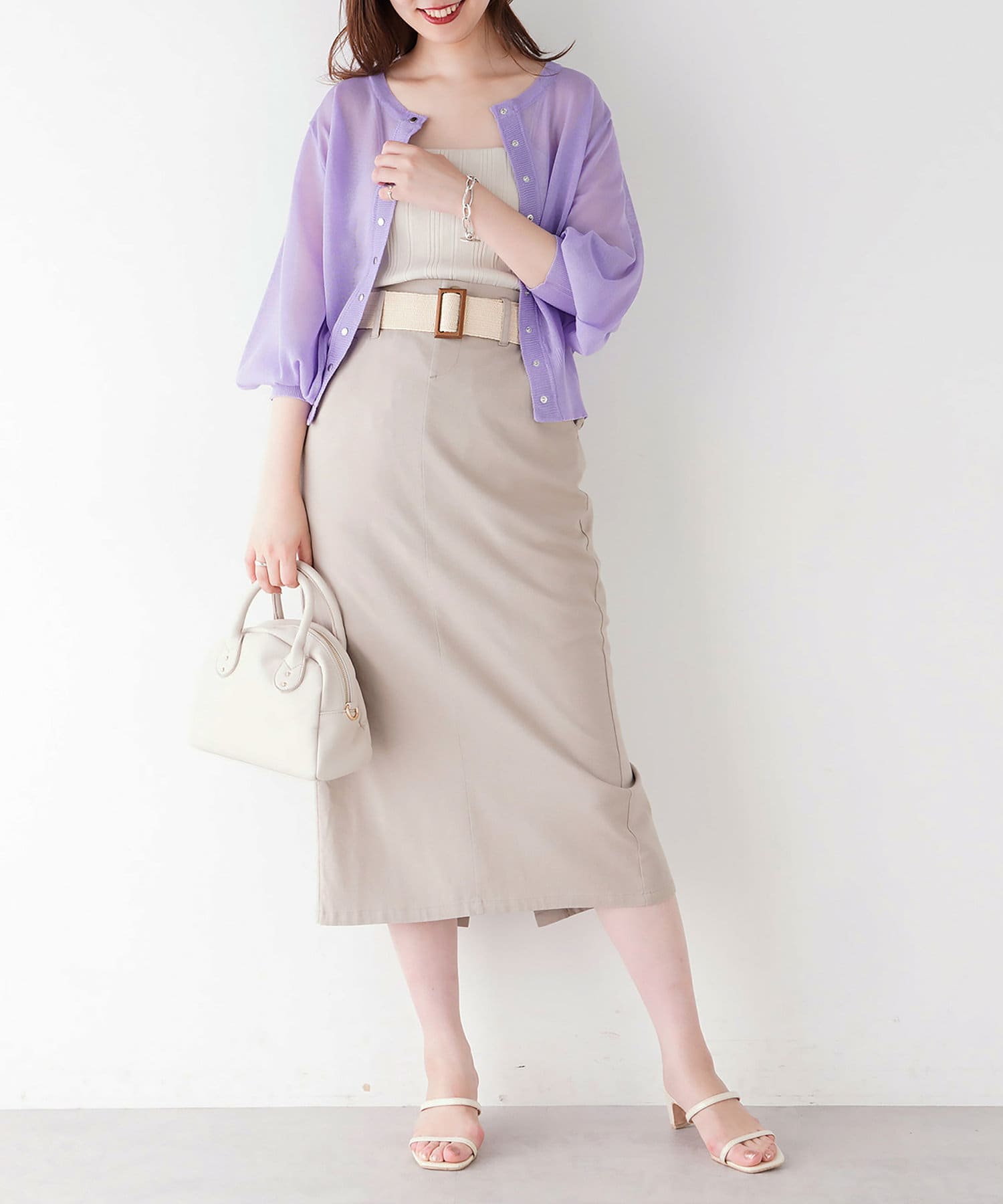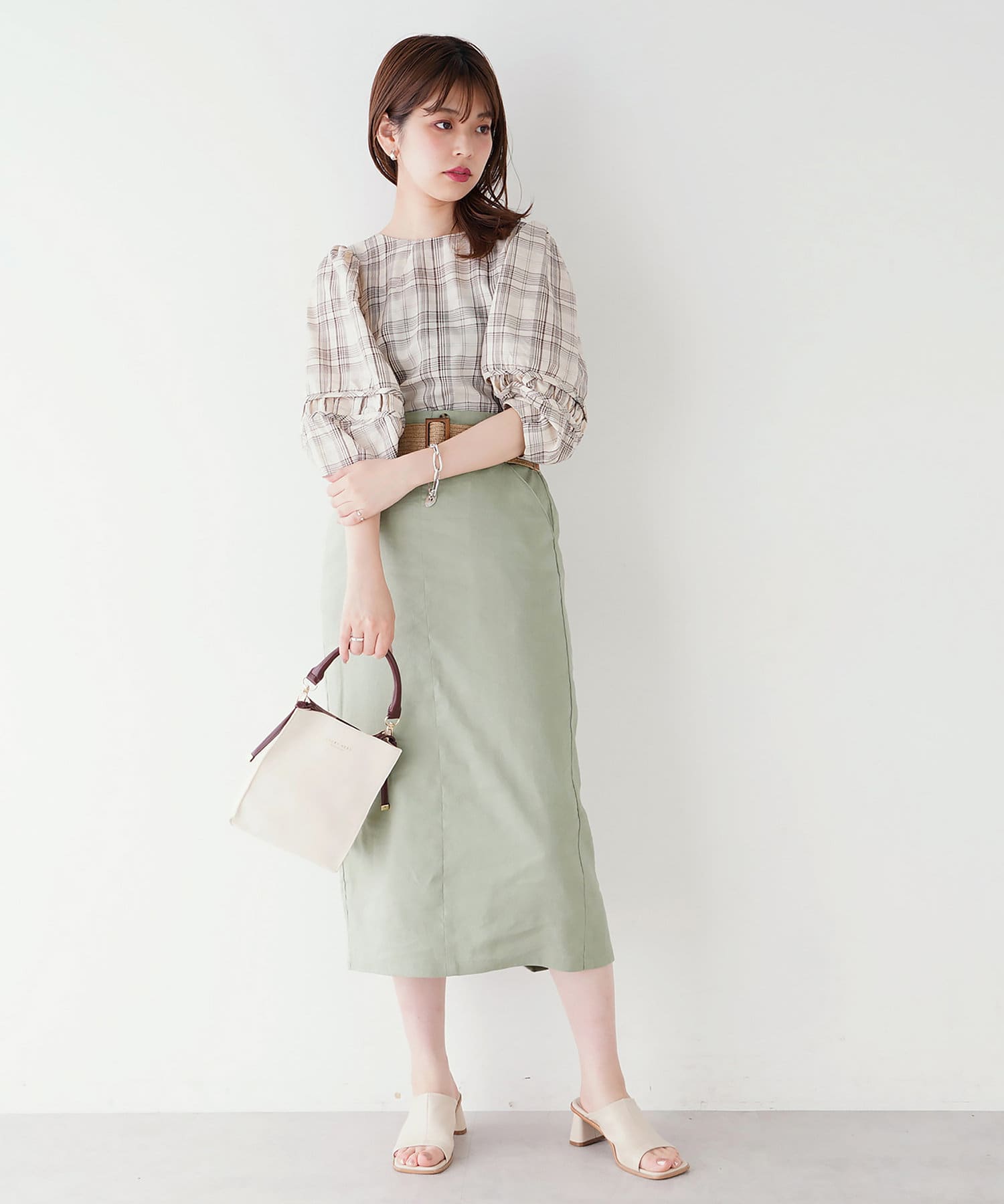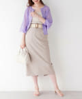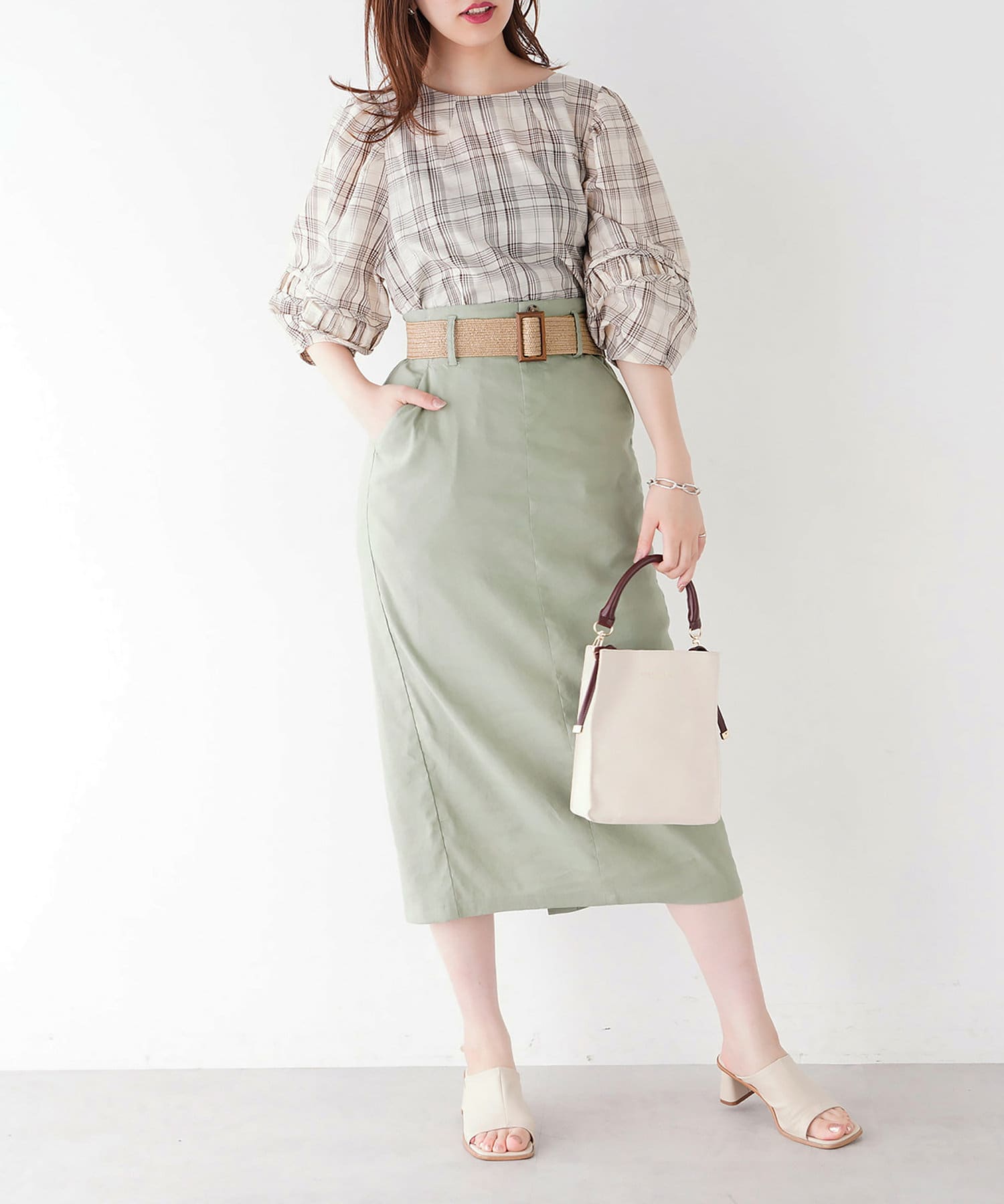 • natural couture(ナチュラルクチュール) ストレッチリネンベルト付タイトスカート