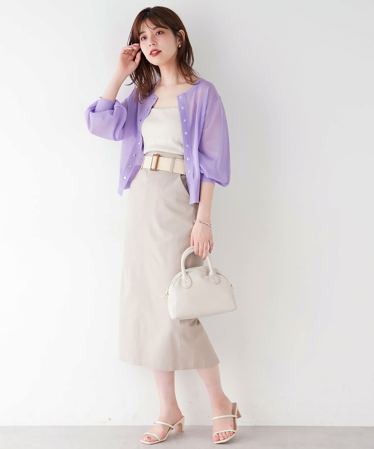 脚のラインを華奢に見せてくれるミディ丈に仕上げました。