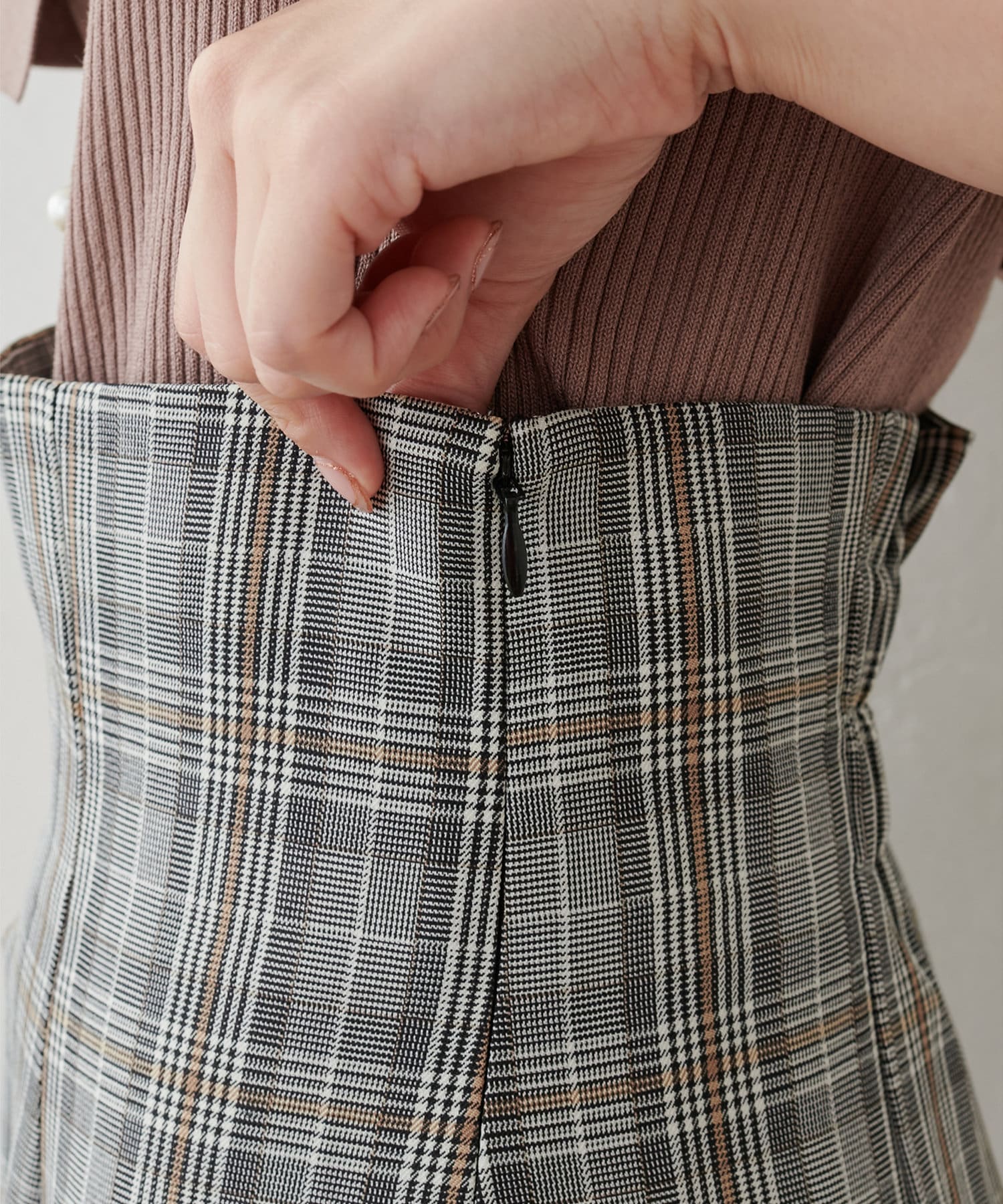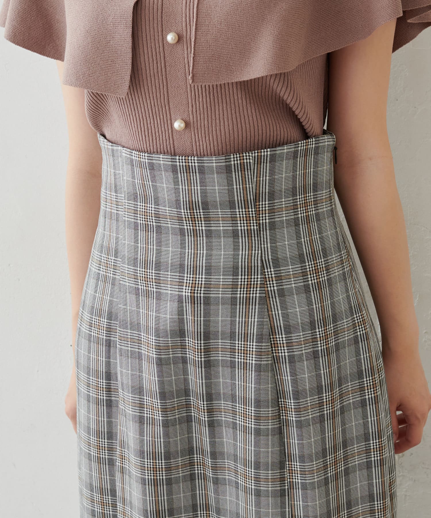 生地感 :チェック:さらっとした肌触りの良い生地感/無地:綺麗なシルエットを実現するハリ感のある生地