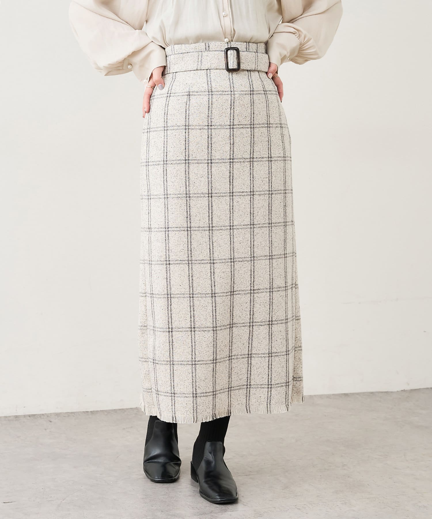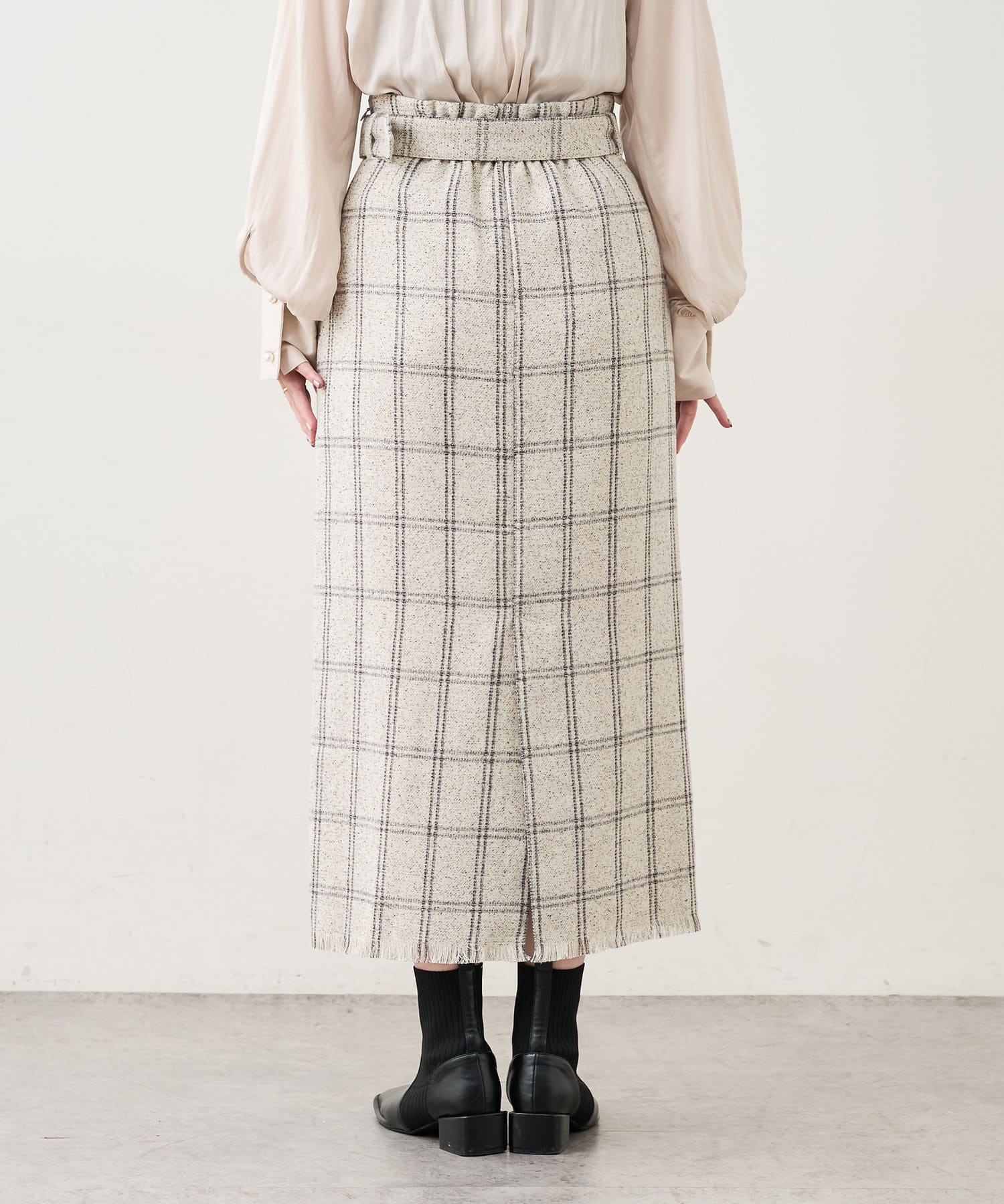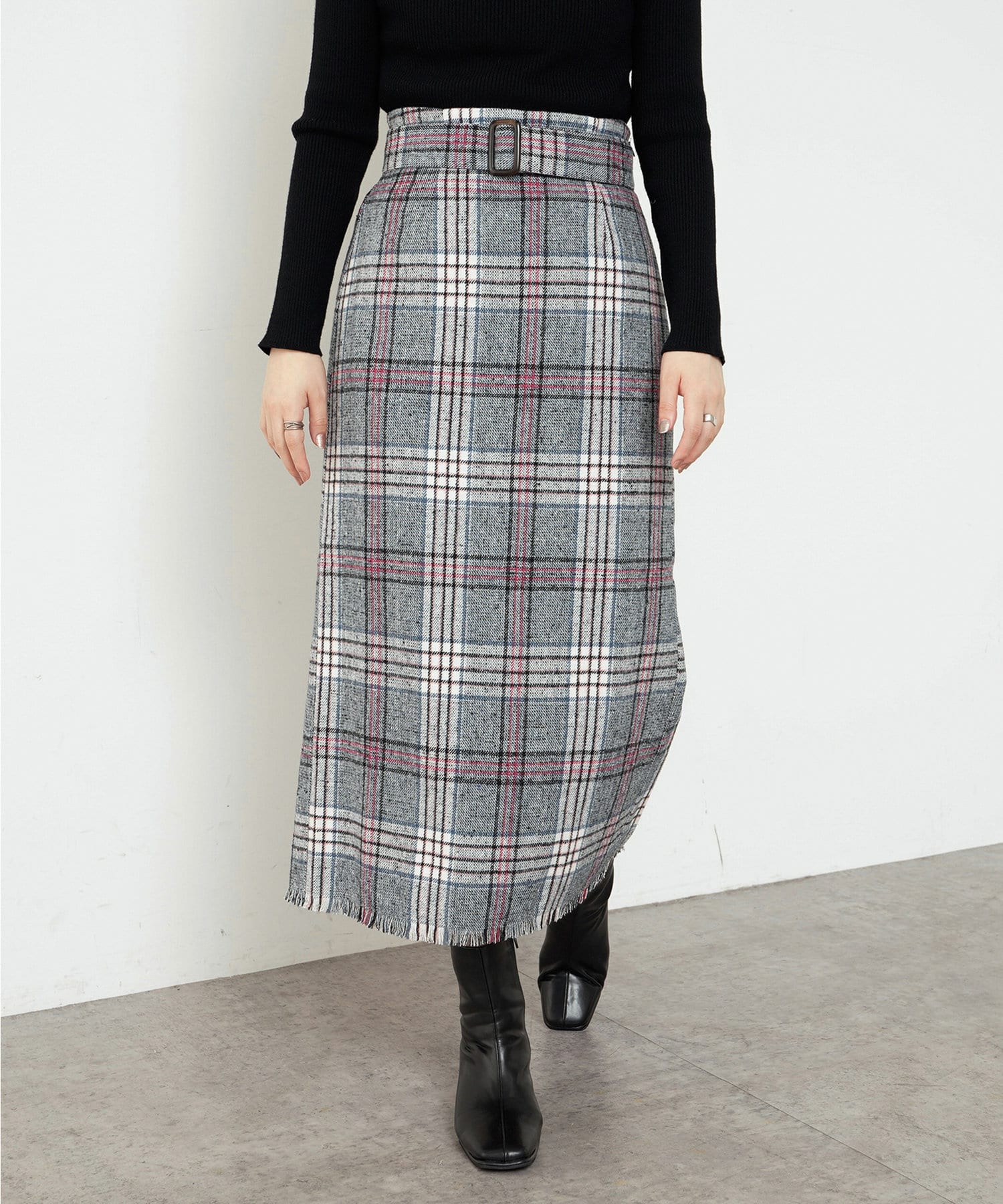 ■Series 341400390:ベルト付き裾フリンジチェックスカート