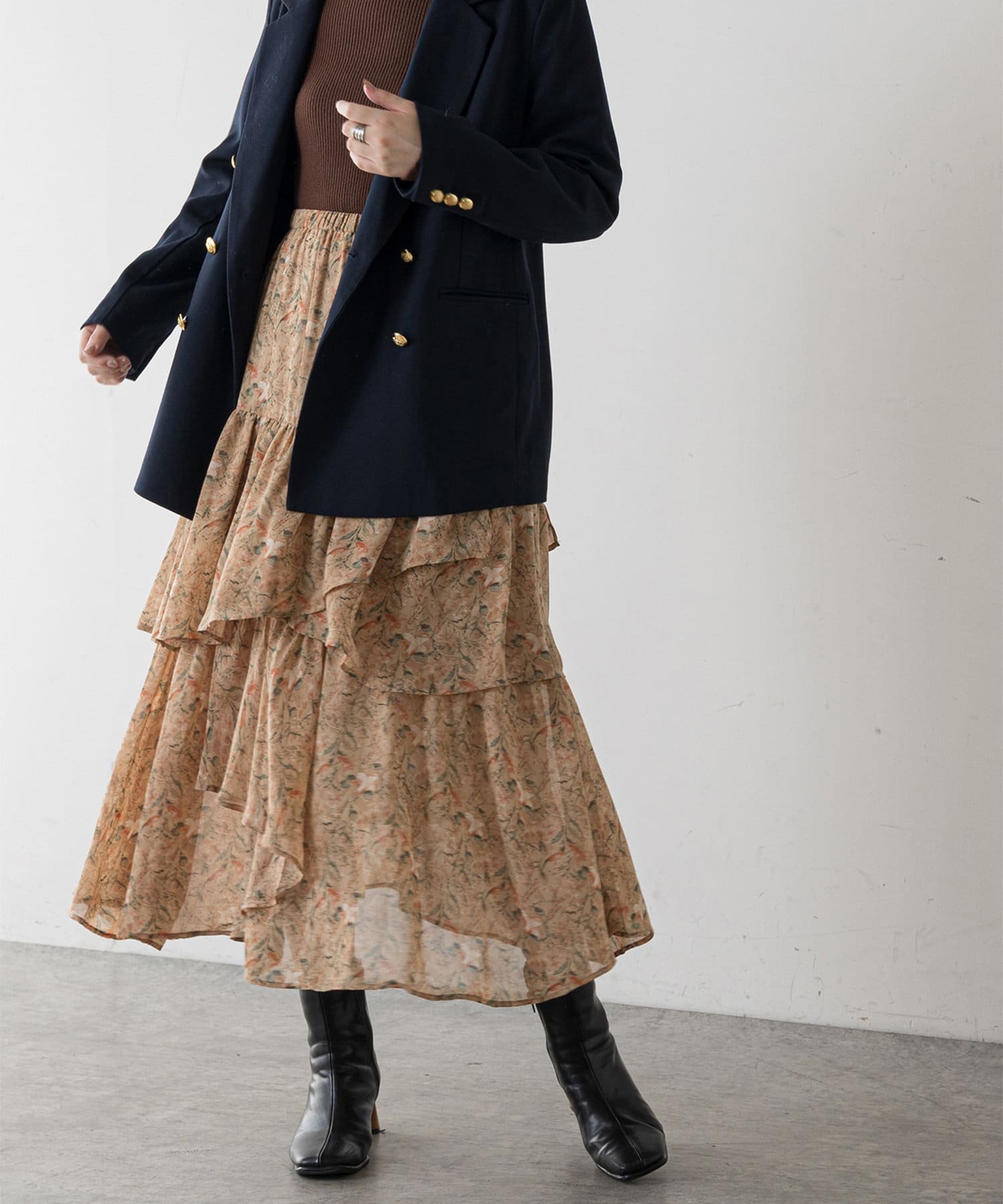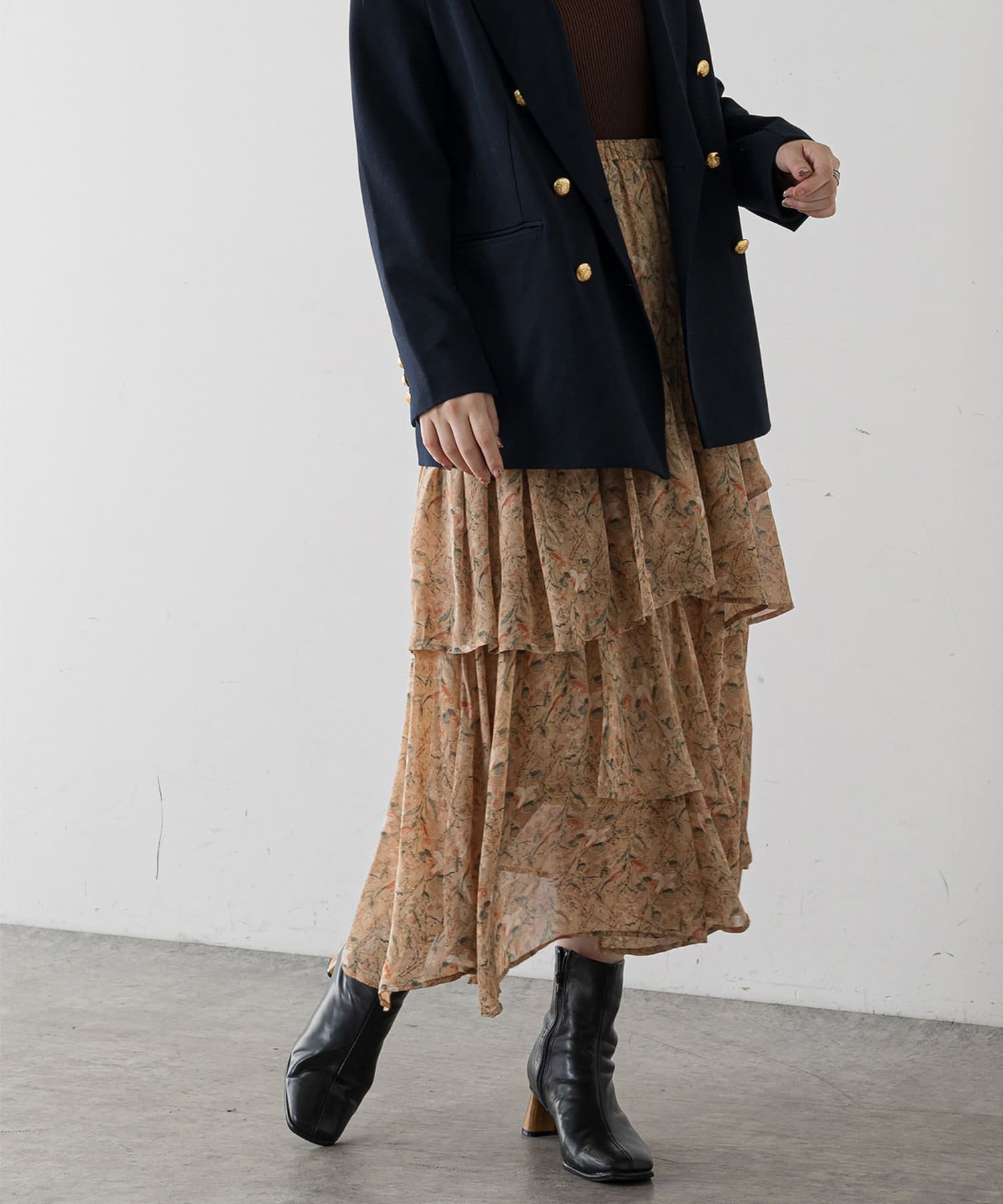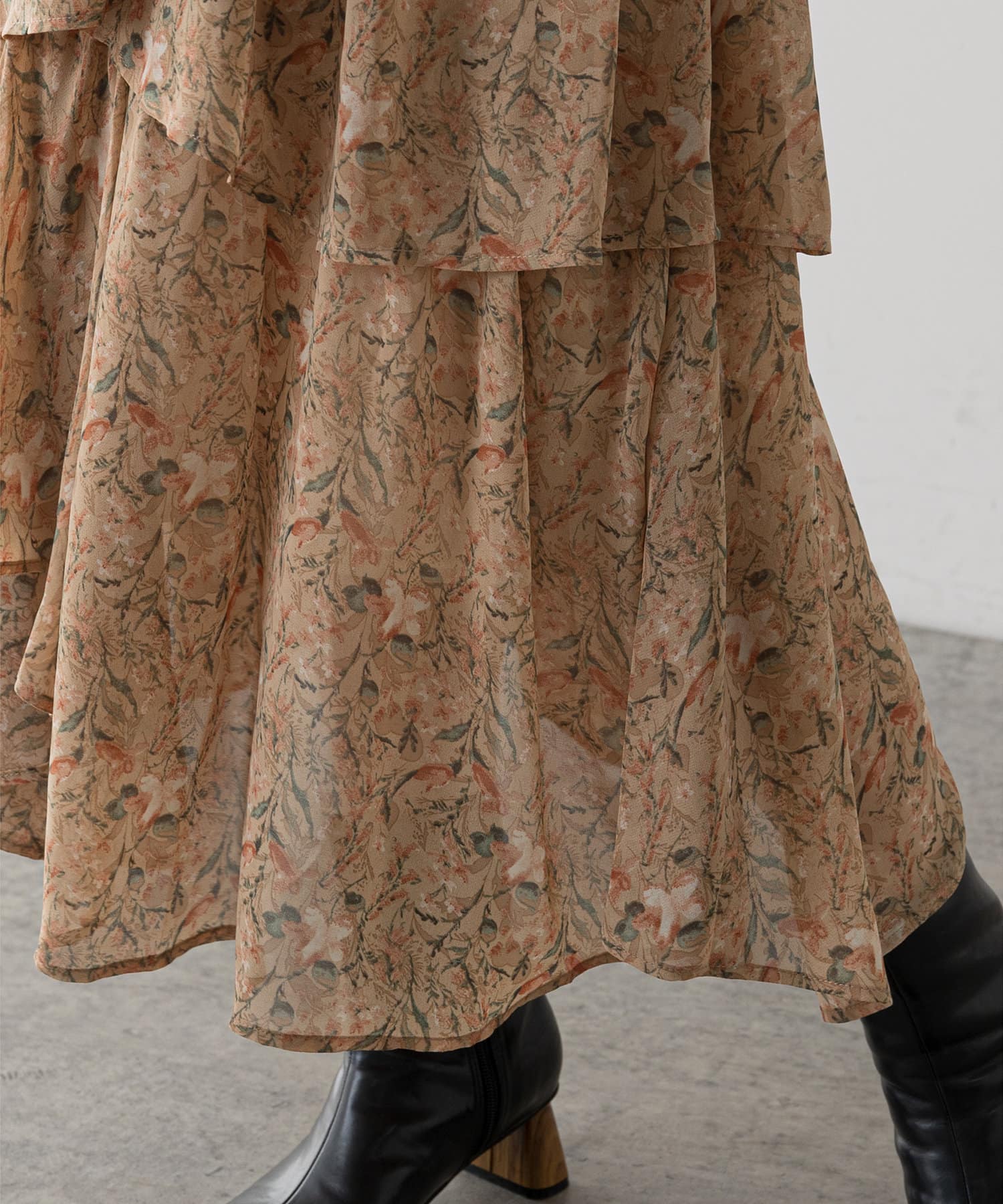 今季注目のティアードデザインにフラワーモチーフ柄で