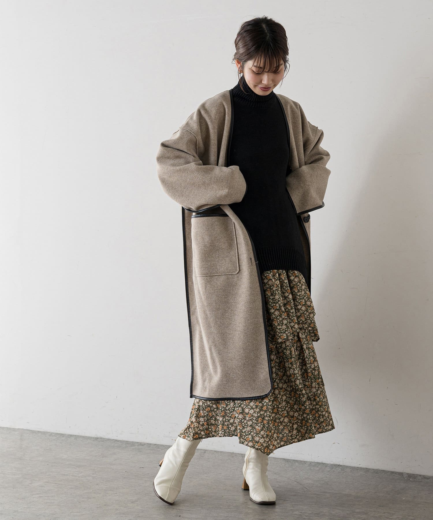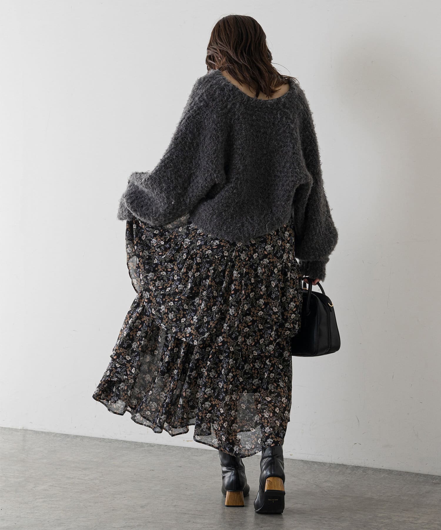 ゆるっとしたローゲージニットやカーディガンを合わせると今年らしいスタイリングに◎