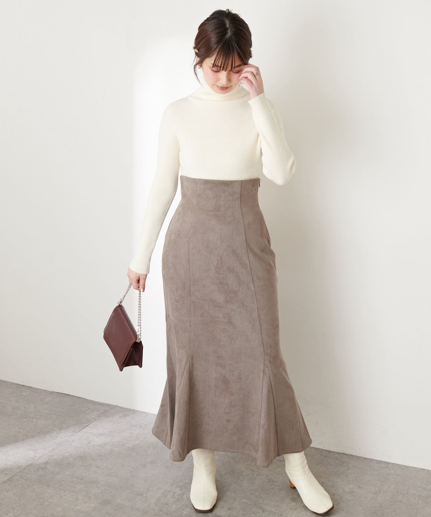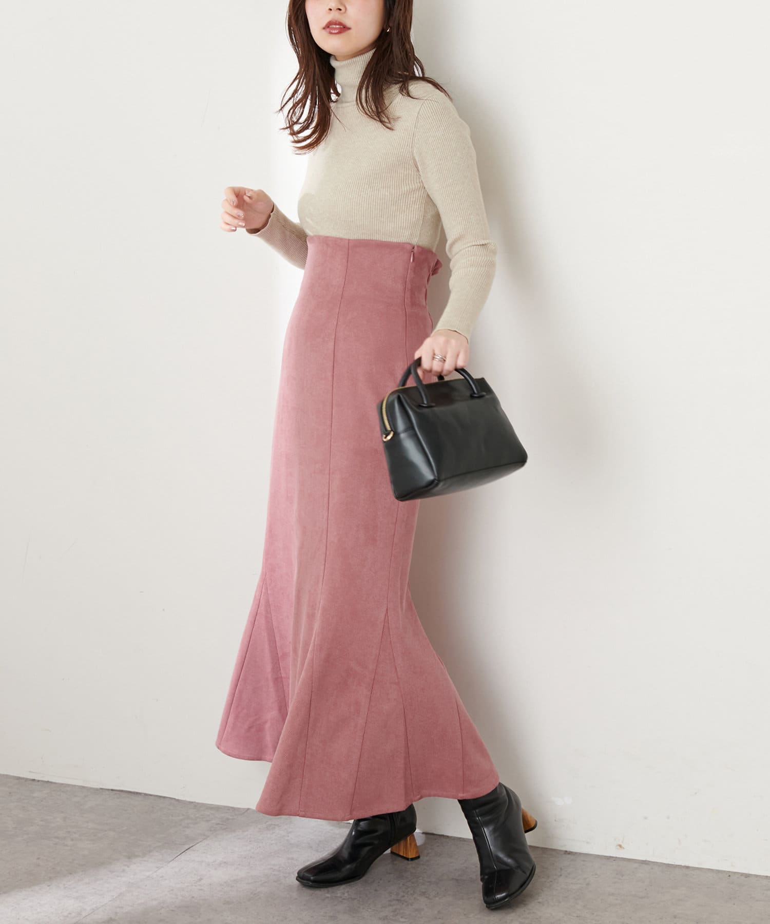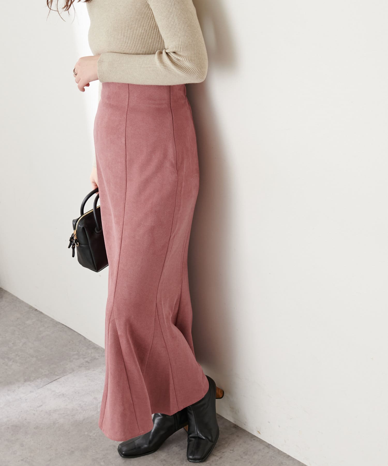 341400511 【WEB限定カラー有り】ハイウエストスエードマーメイドスカート Sサイズ