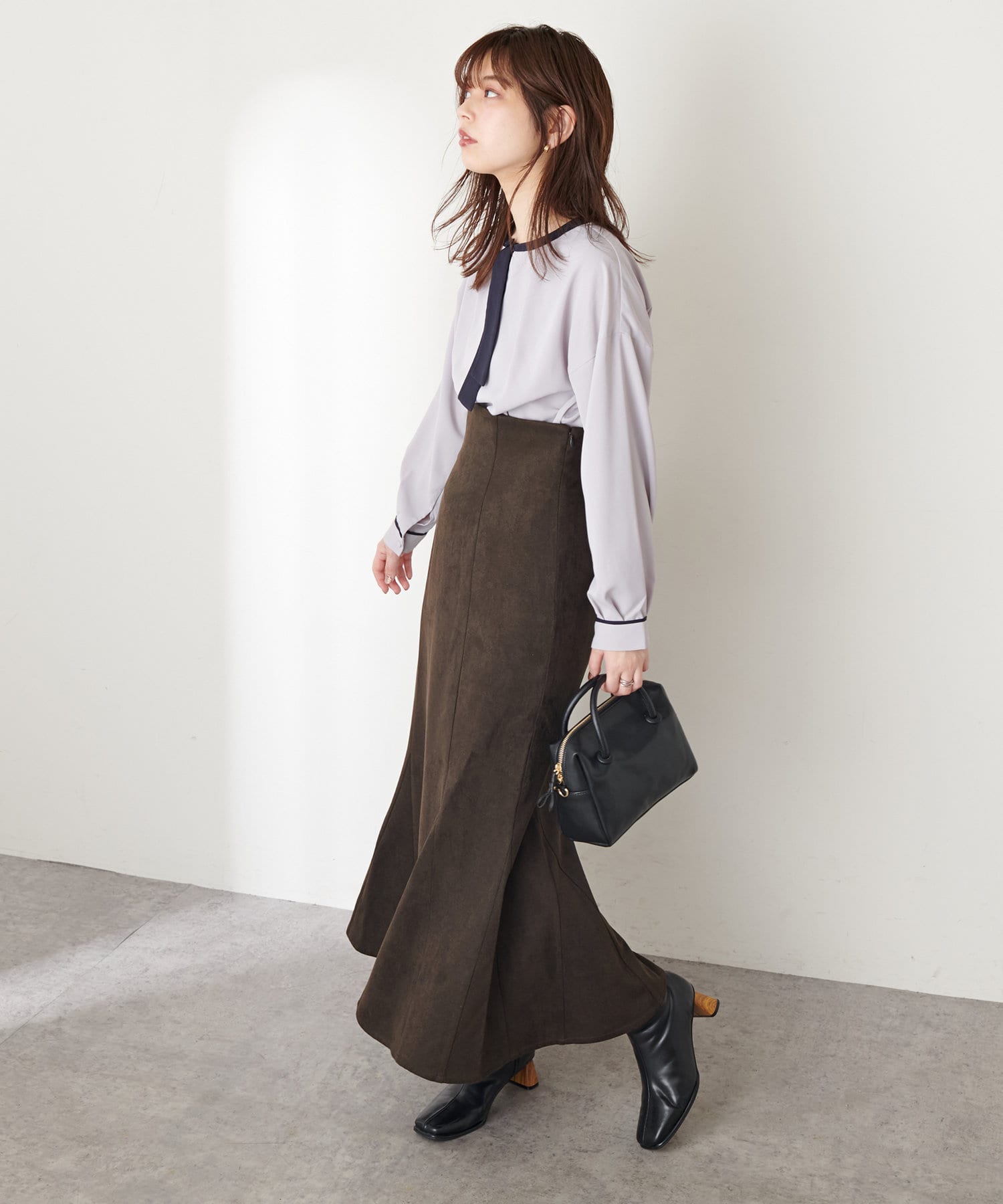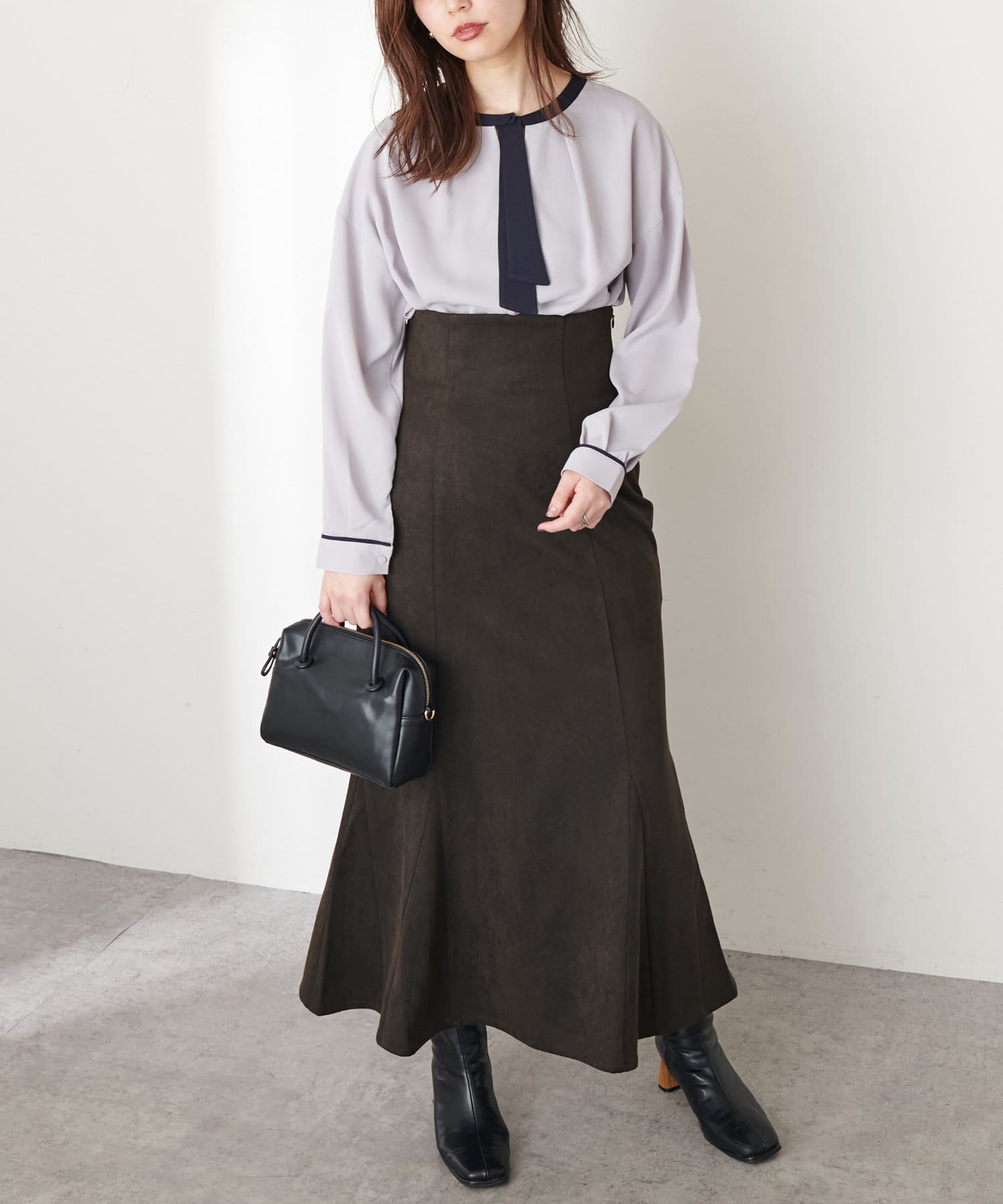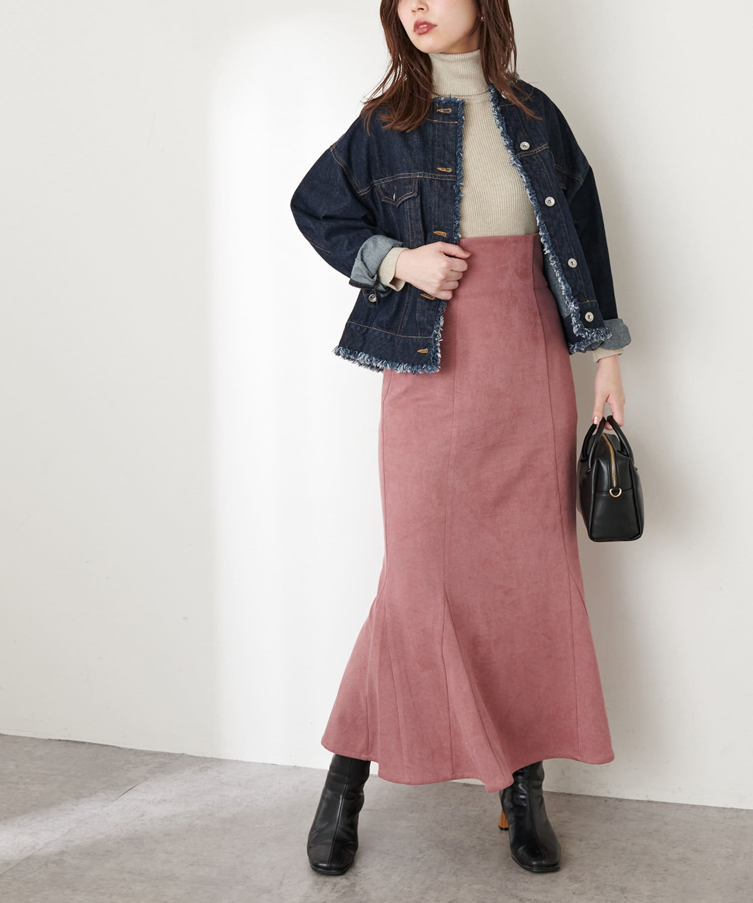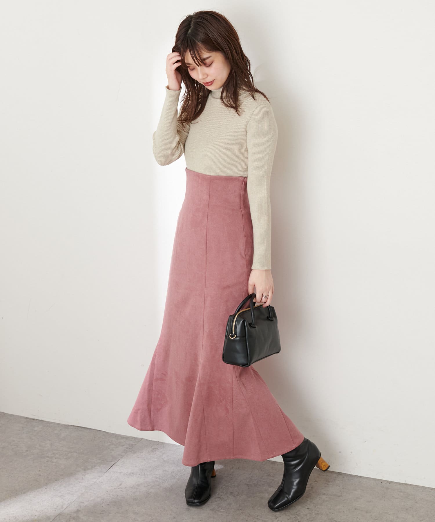 341400511 【WEB限定カラー有り】ハイウエストスエードマーメイドスカート Sサイズ