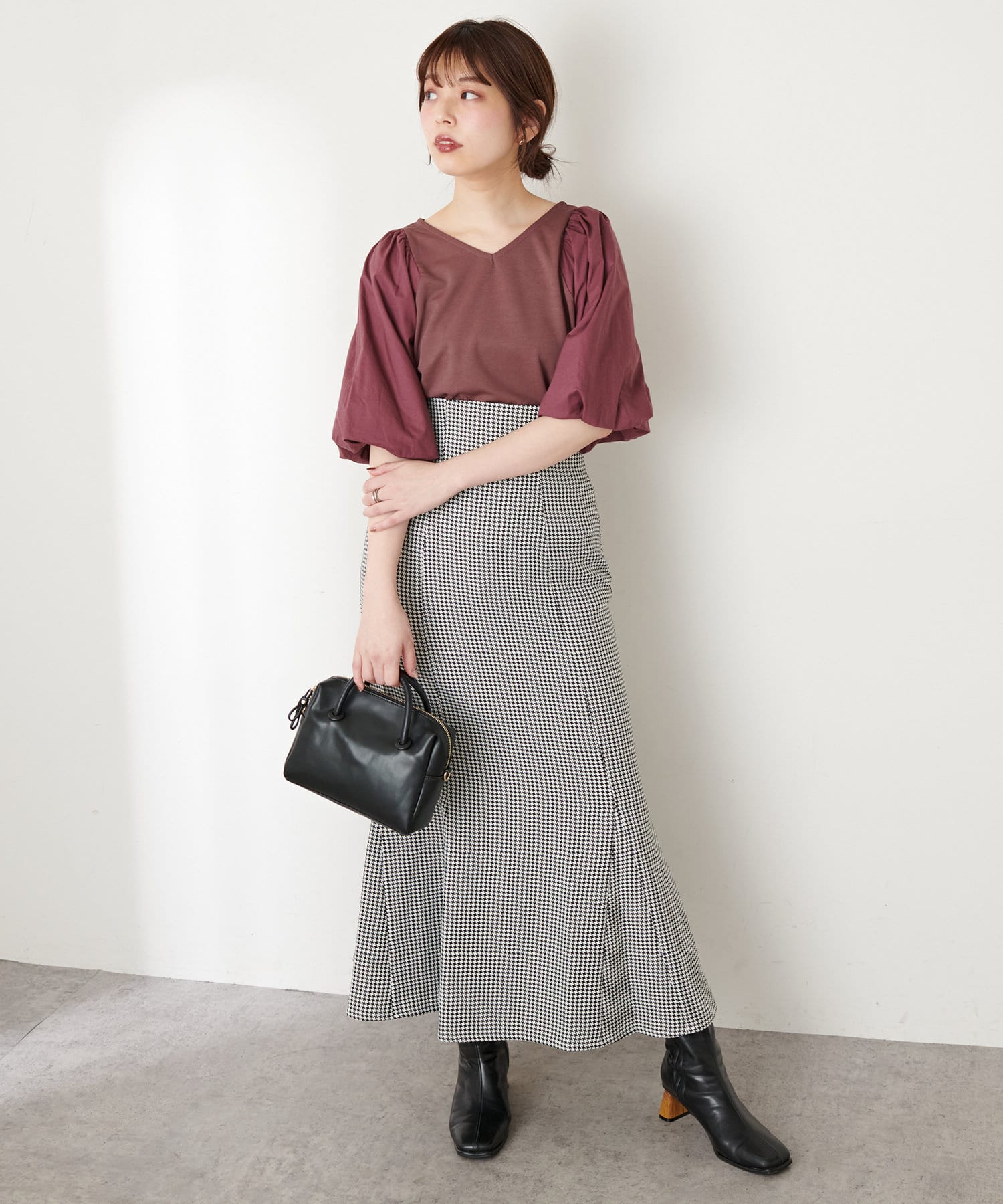 デザイン性あるブラウスを合わせれば洗練されたコーディネートが楽しめ、