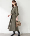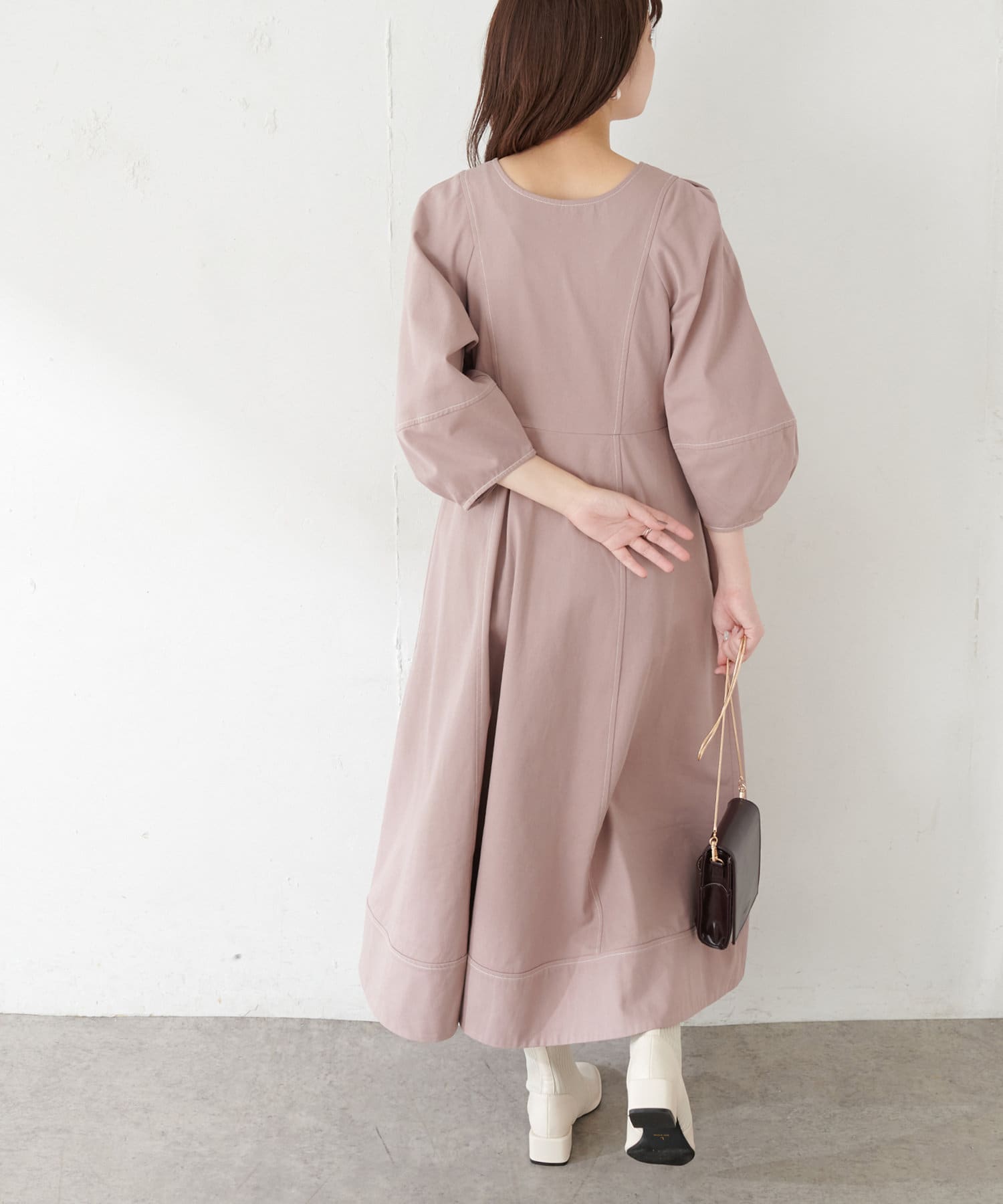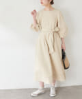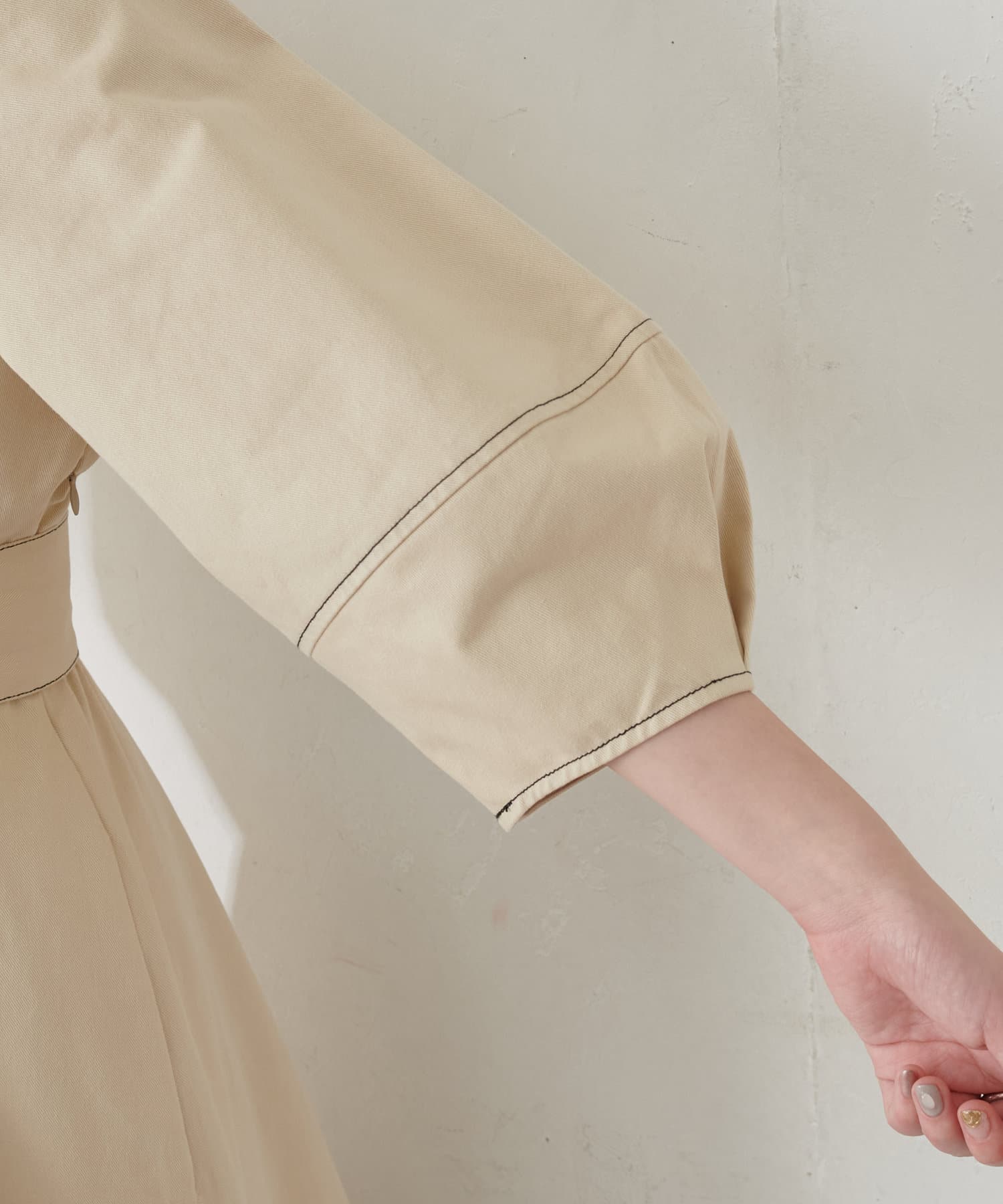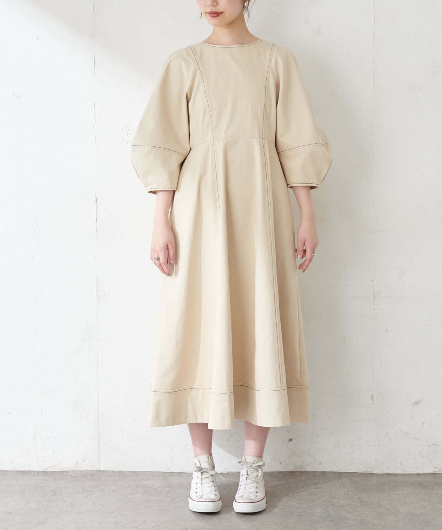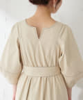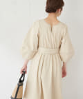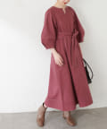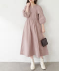 腕を華奢に見せてくれるランタンスリーブが目を引く1着。