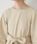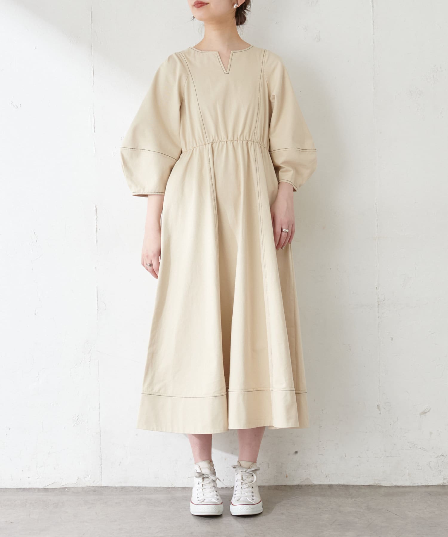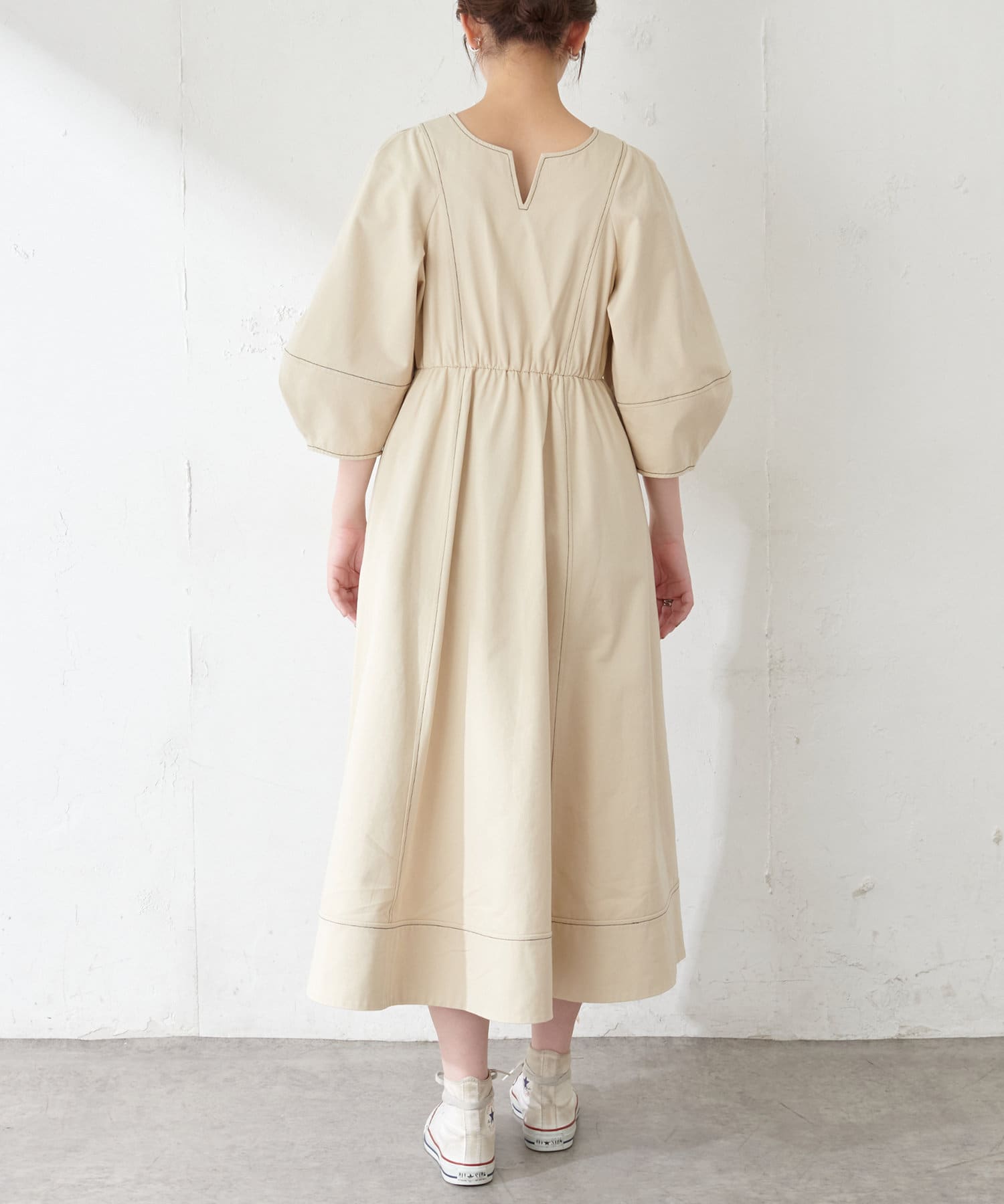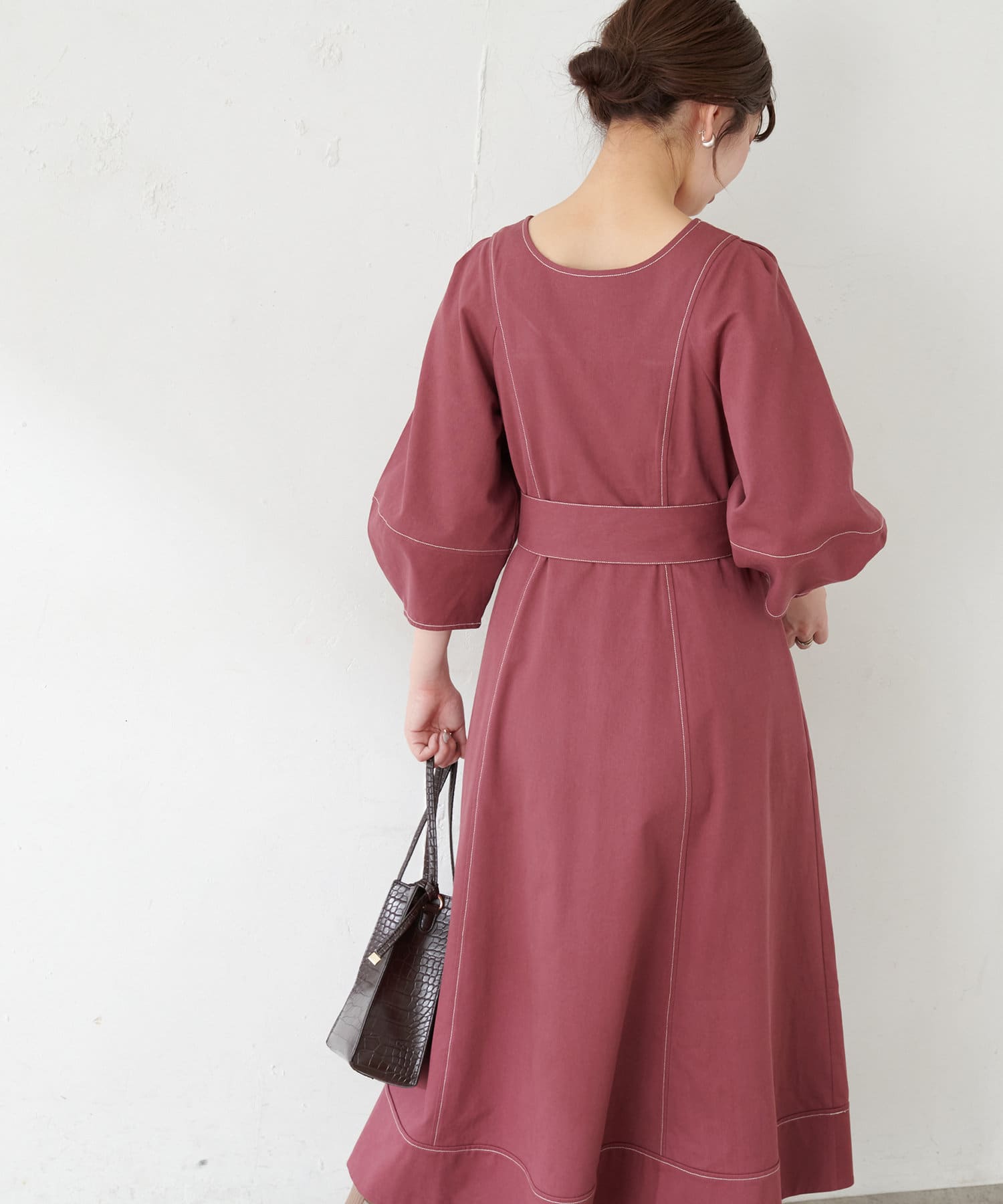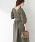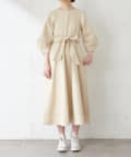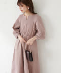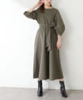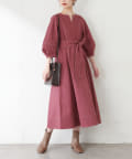 腕を華奢に見せてくれるランタンスリーブが目を引く1着。