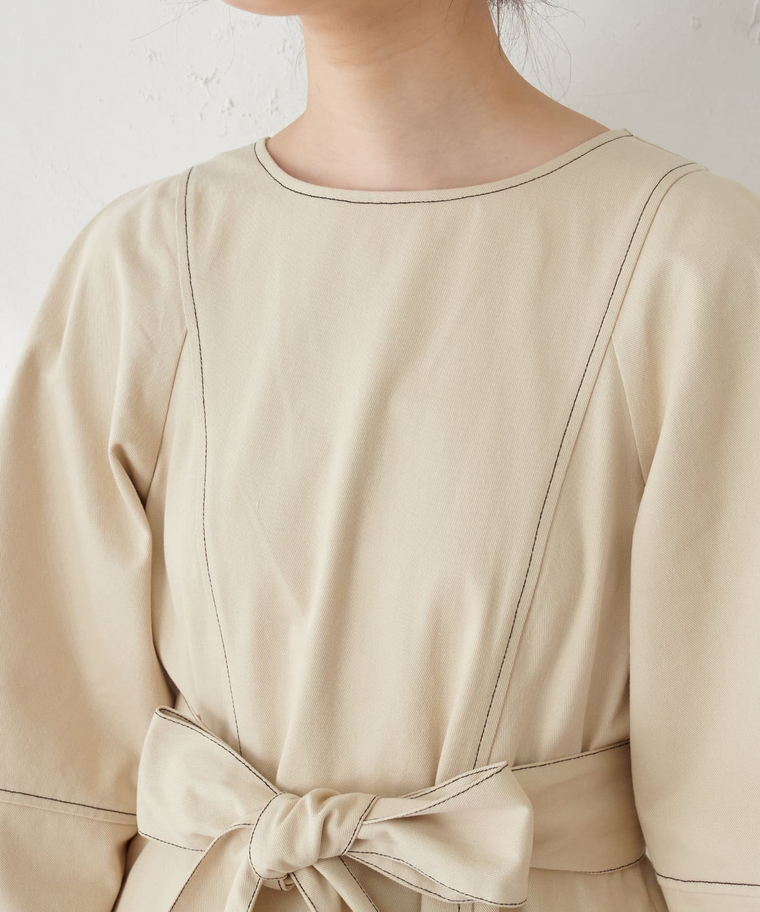 シンプルながらも、切り替え位置にさりげなくステッチを施し、