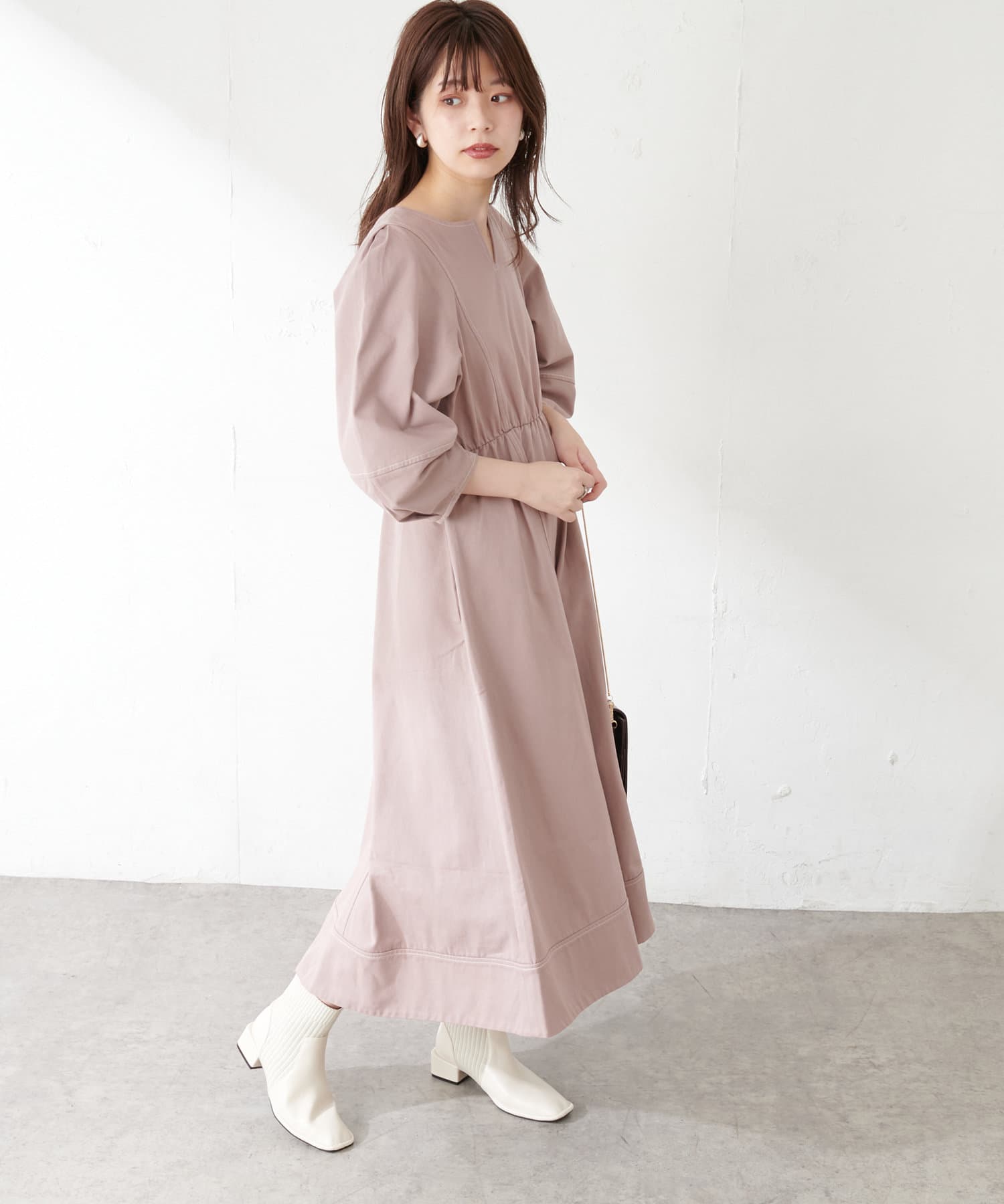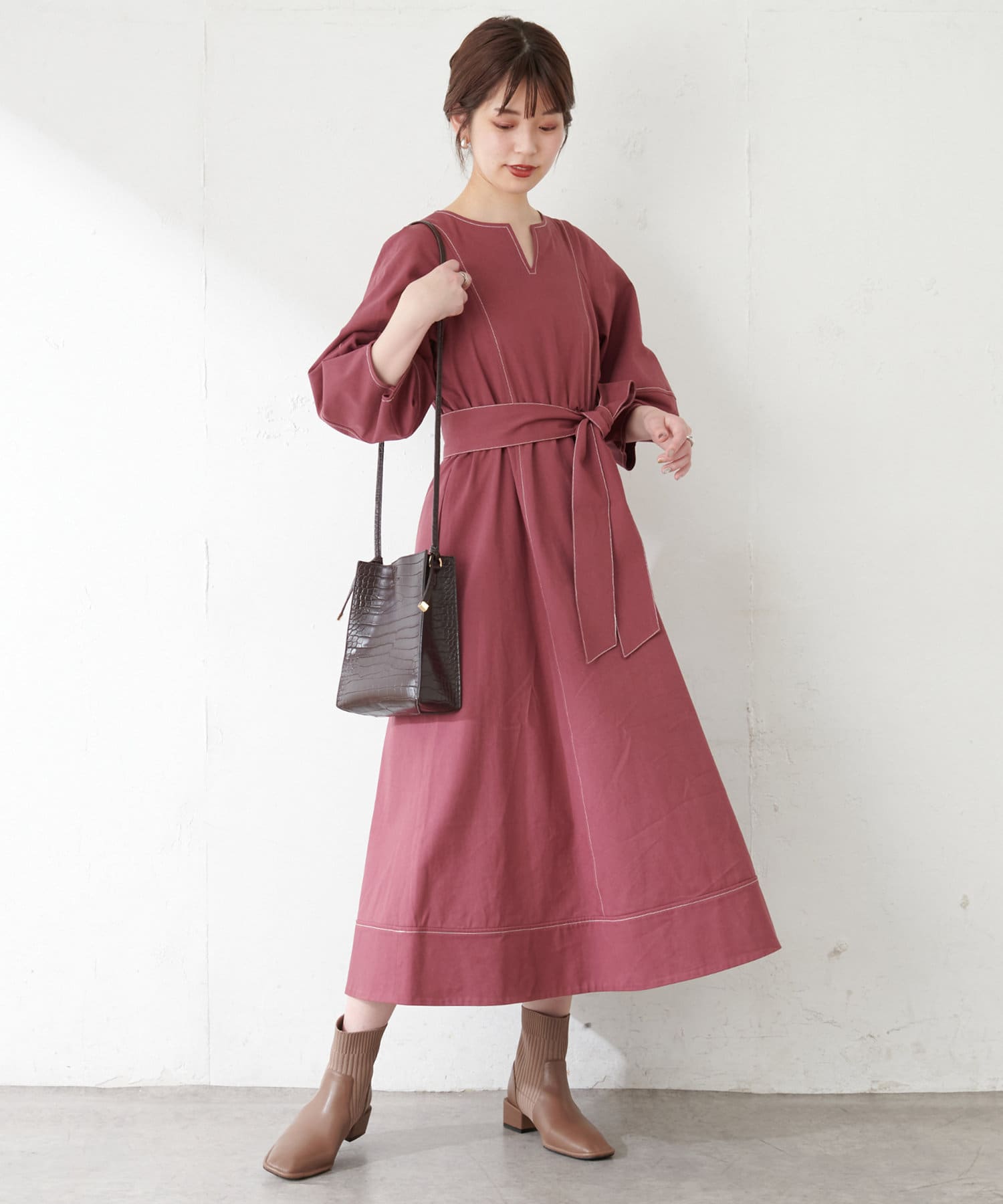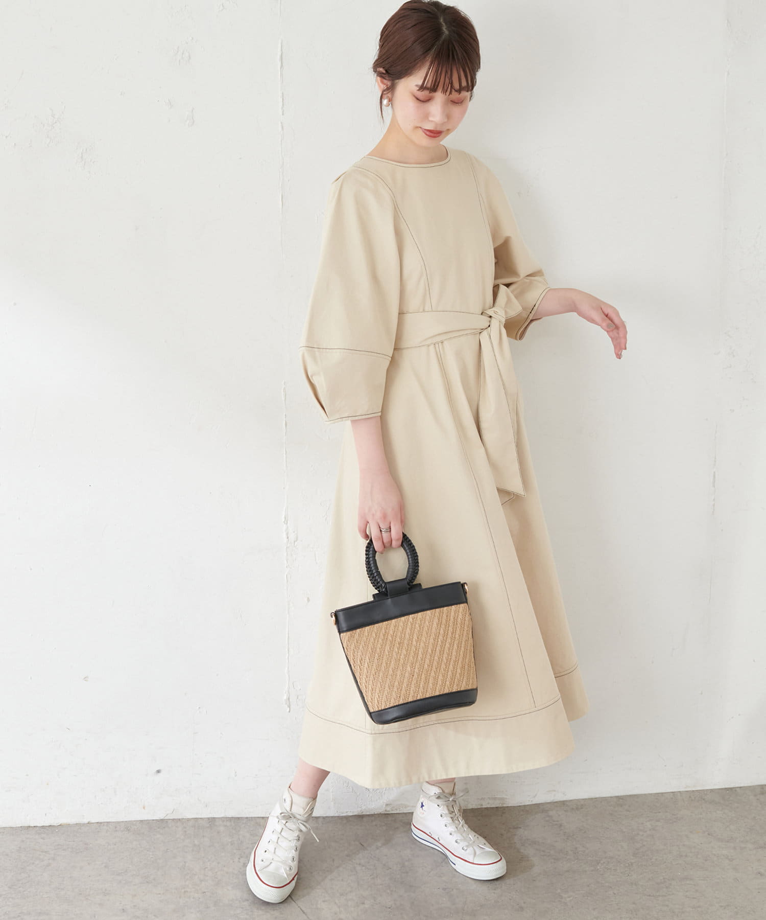 一枚で着映えるワンピースは、小物でアクセントをきかせるのがオススメ。