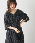 袖部分にはさりげなくスリットを加え、気になる腕周りを華奢に見せつつヘルシーな肌見せで軽やかな雰囲気に◎