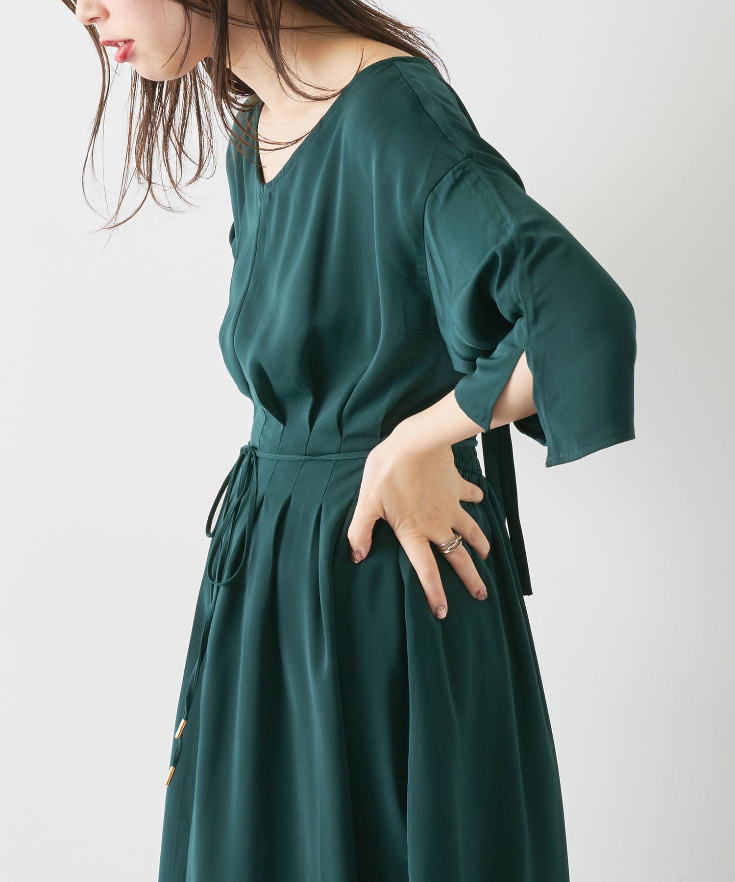 エレガントなフレアラインが魅力◎ウエストタックワンピース