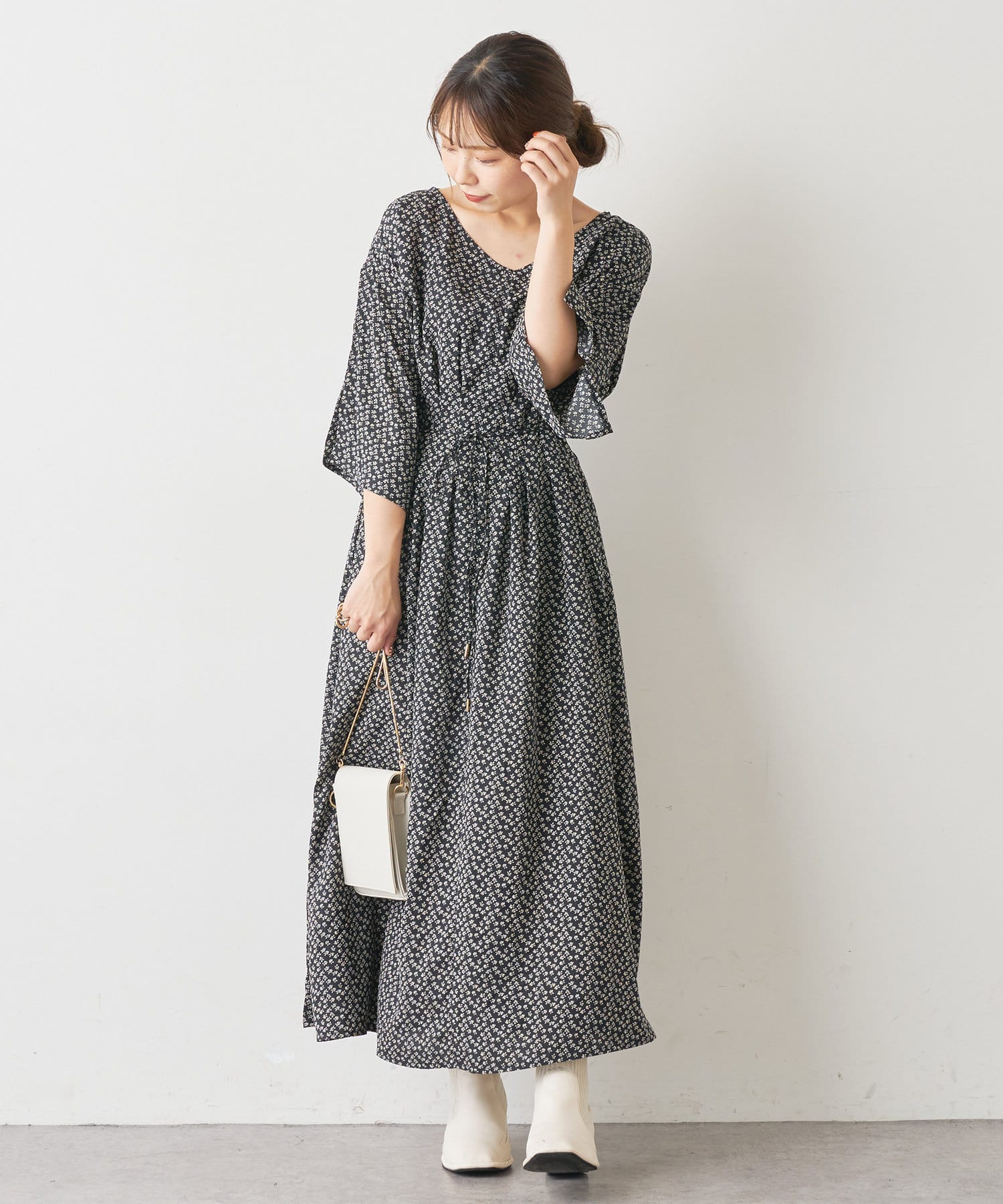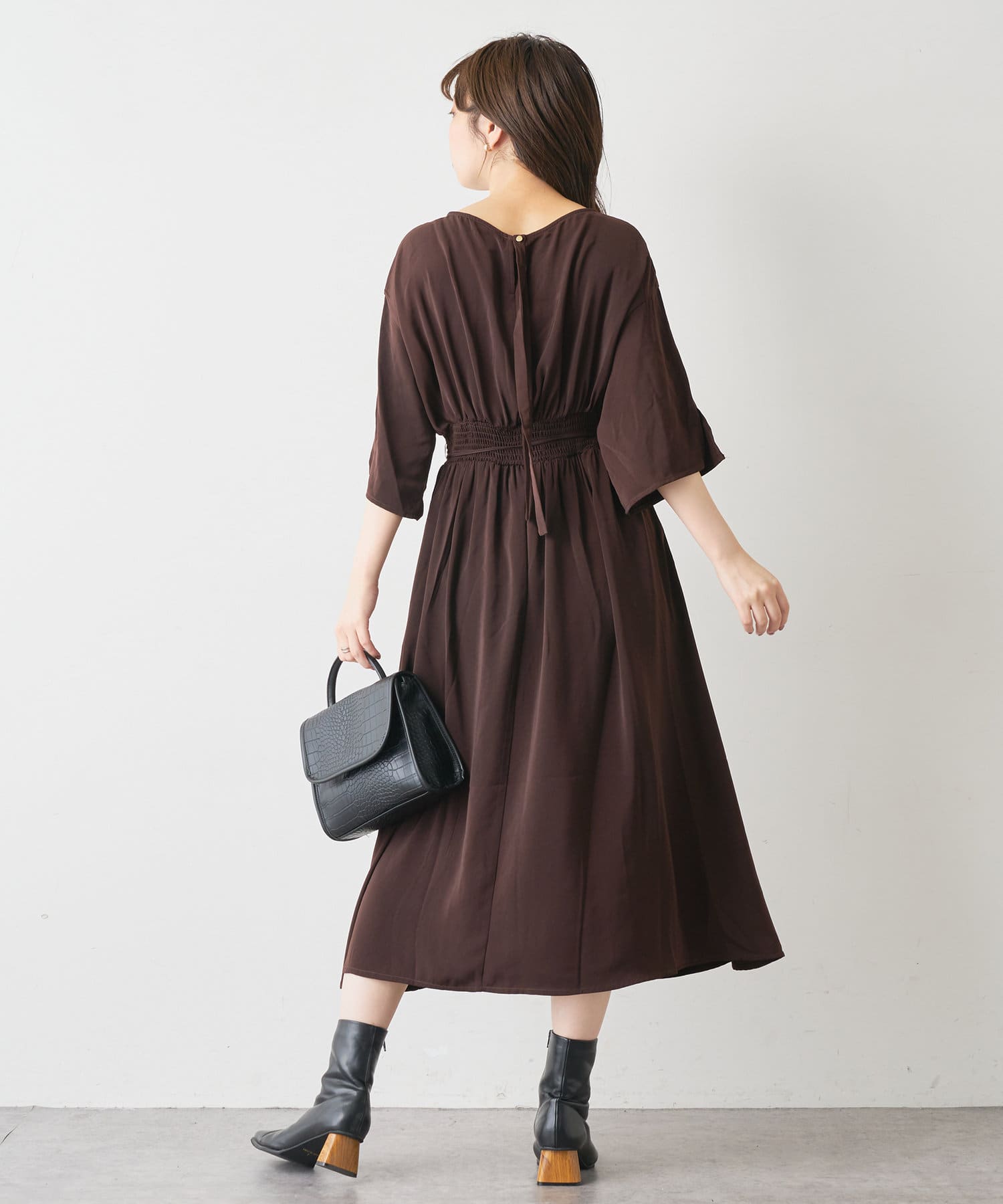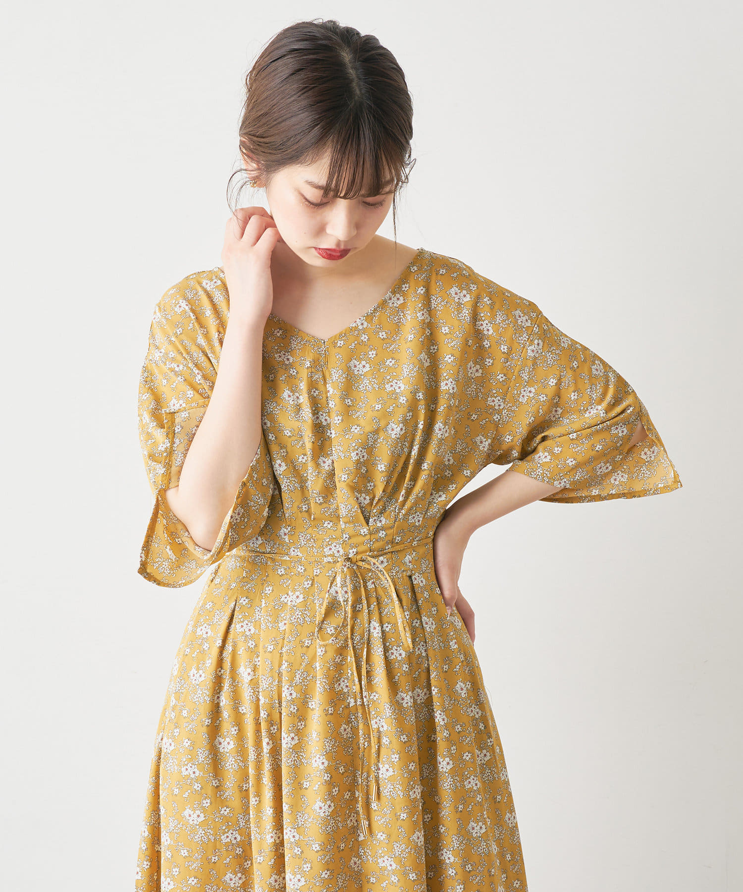 【WEB限定カラー有り】リボン取外しウエストタックワンピース