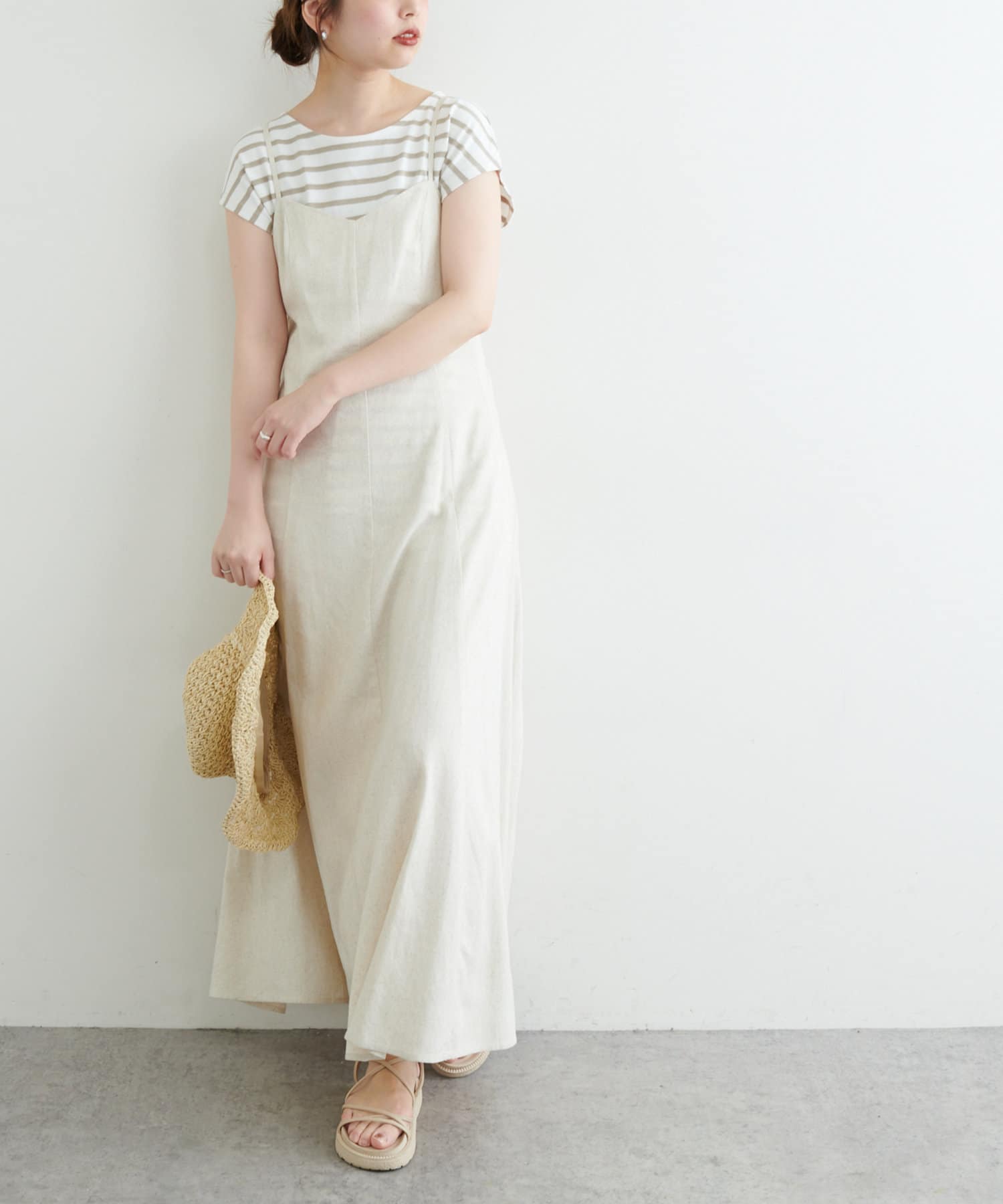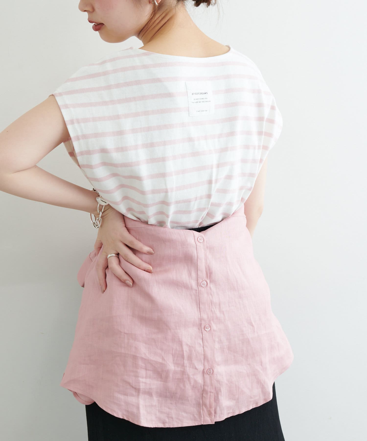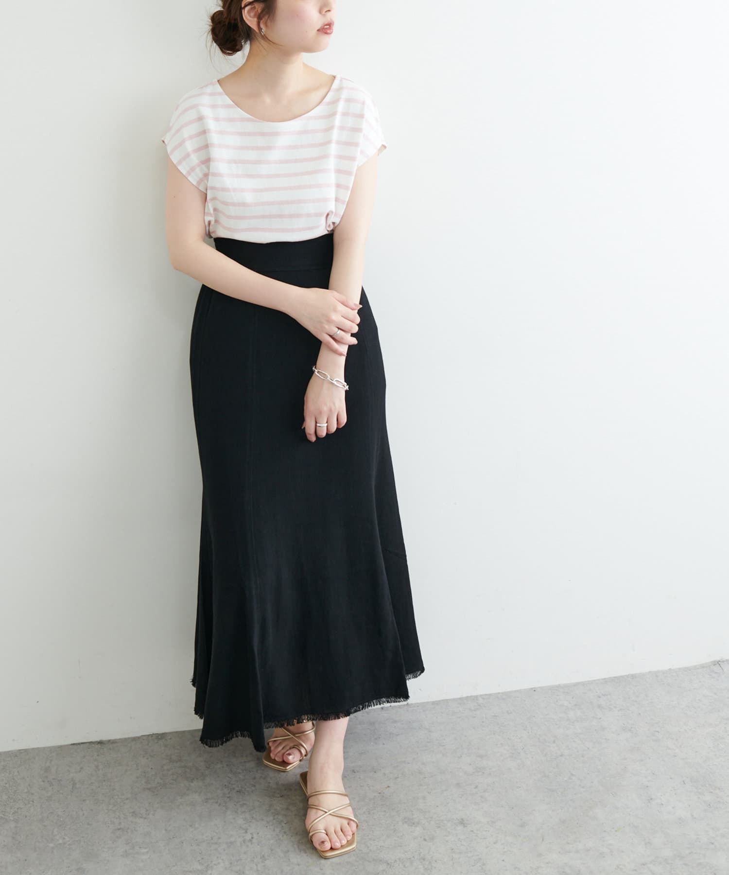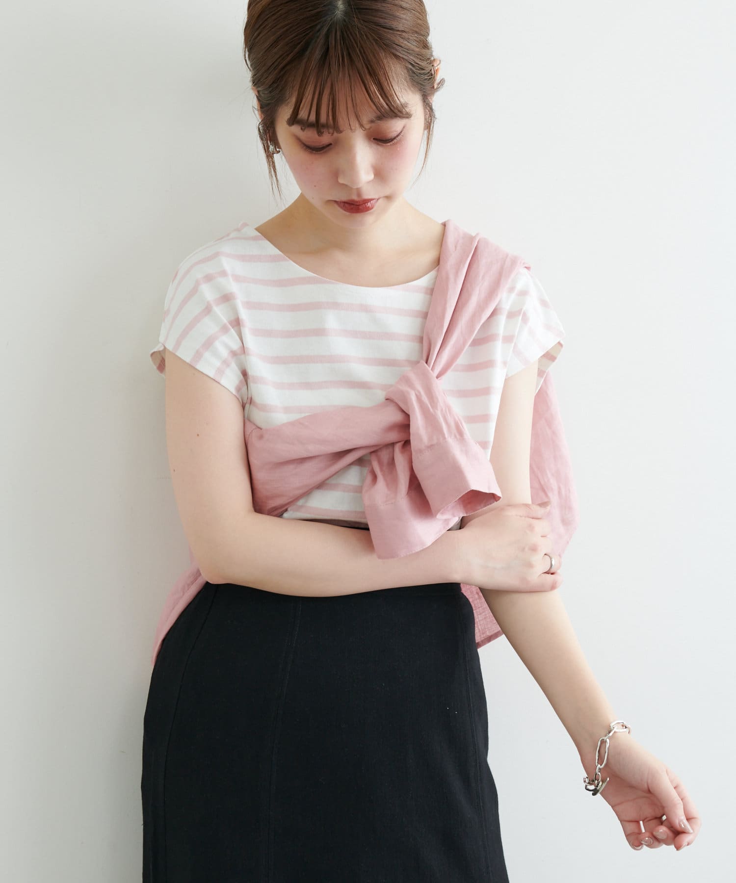 カットソーパンツと合わせたリラックス感のある着こなしはもちろん、